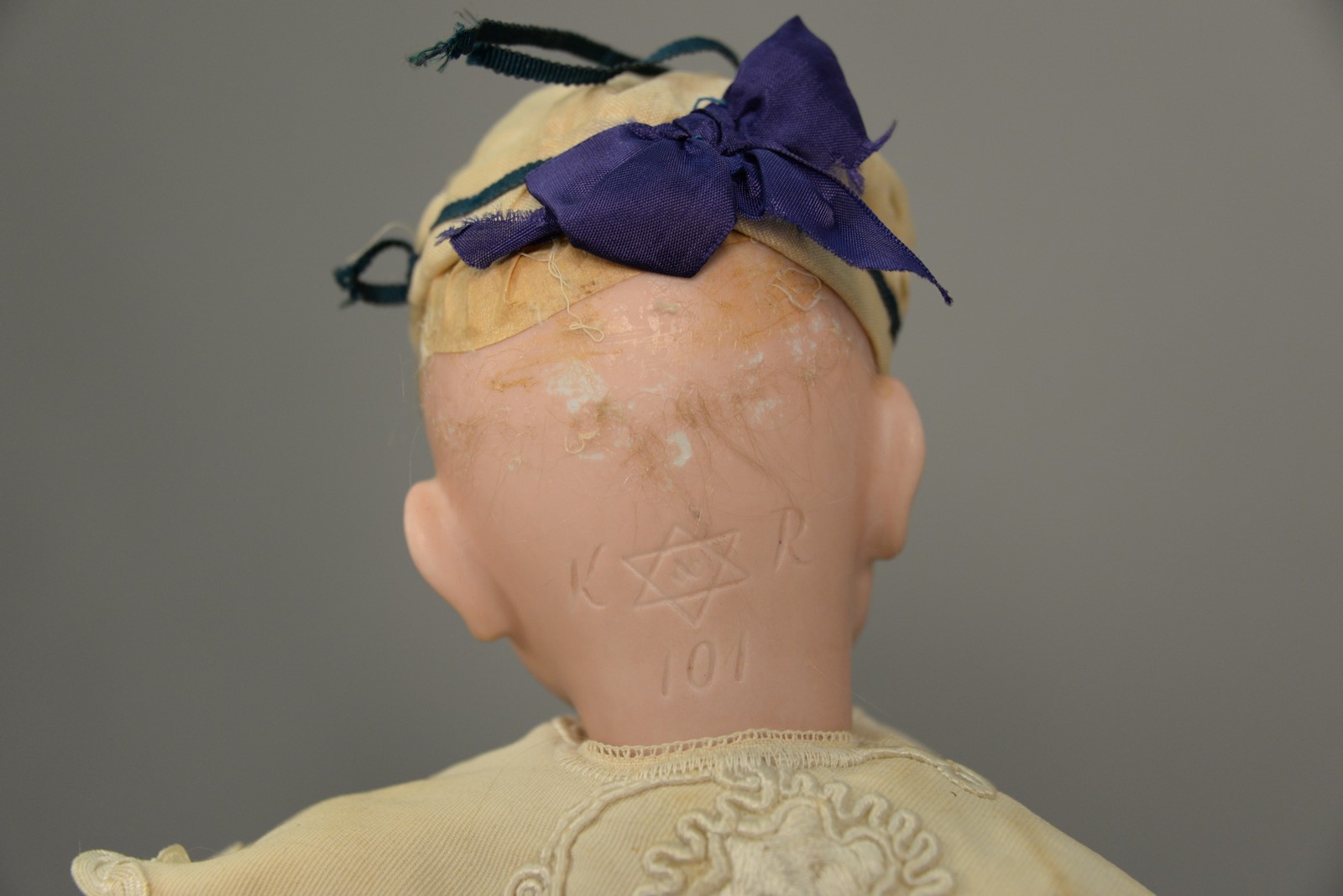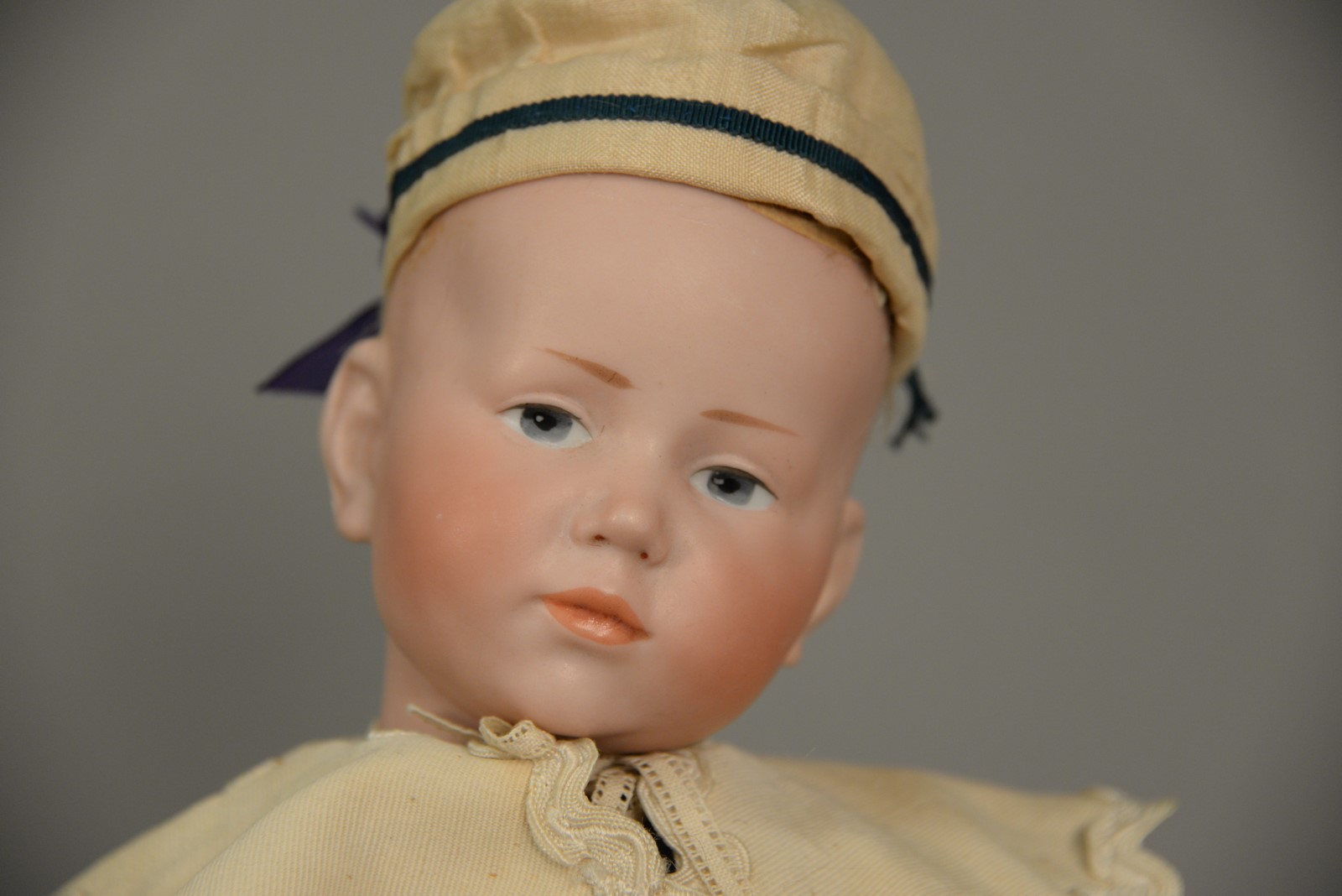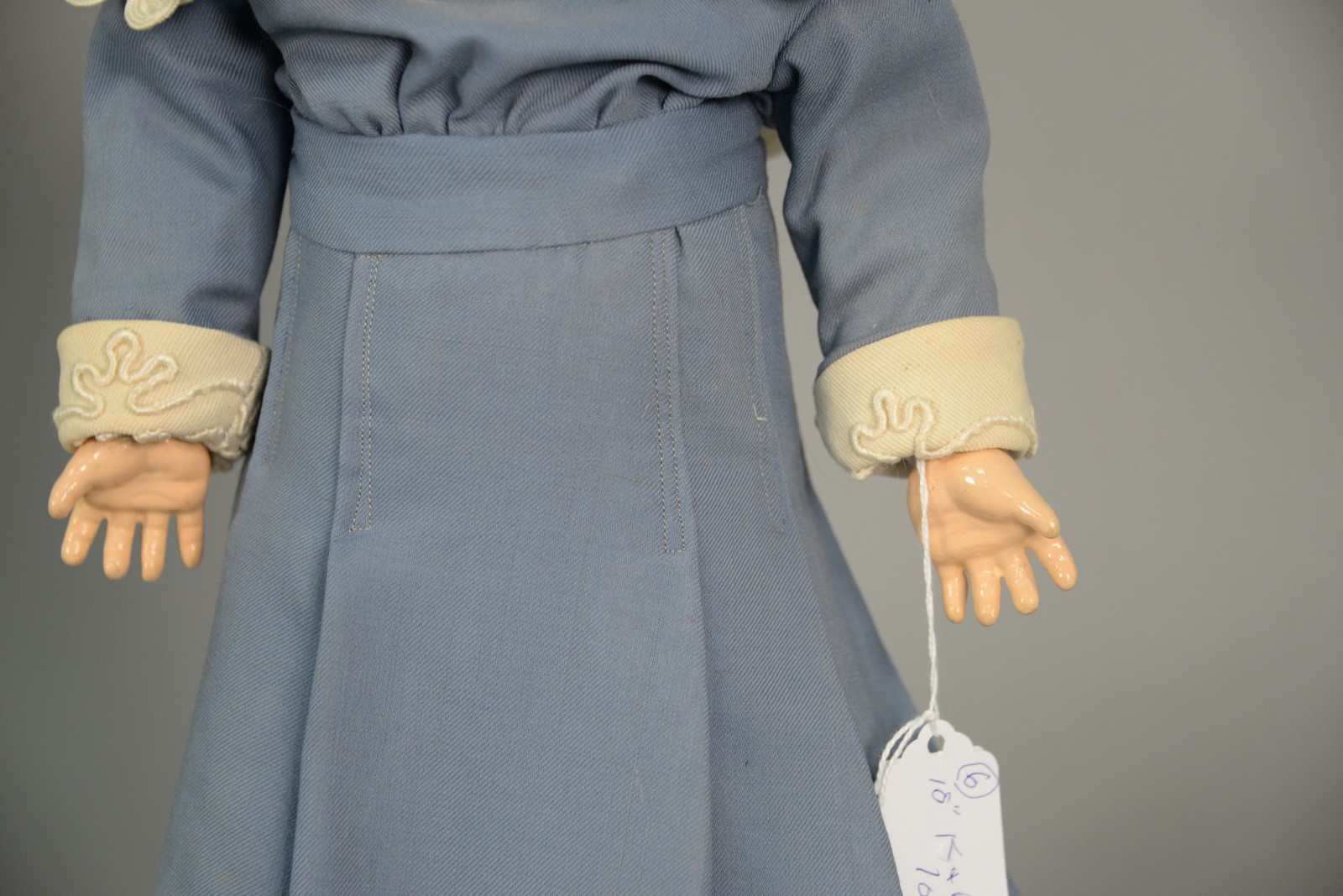 KR 101 bisque head doll, wig pulls in back. lg. 18 in.