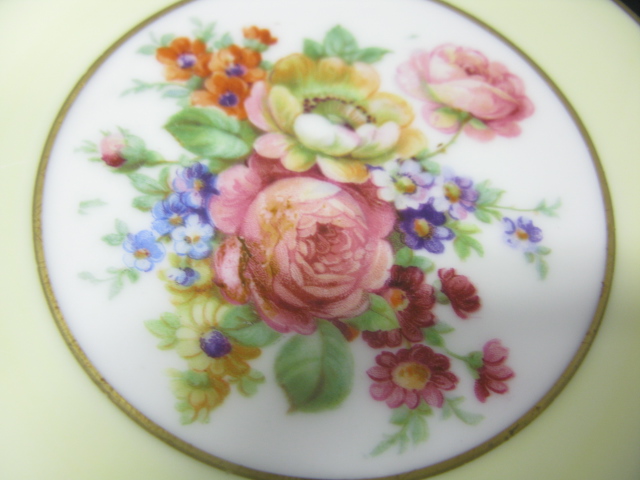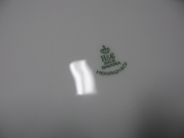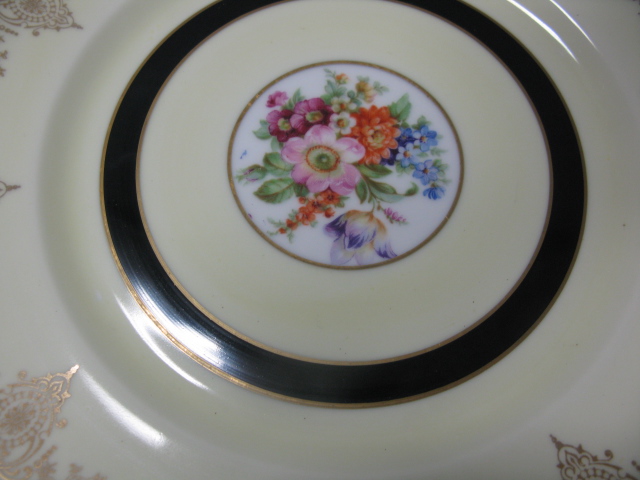 Set of twelve German porcelain dinner plates, two shades of cream backgrounds.
