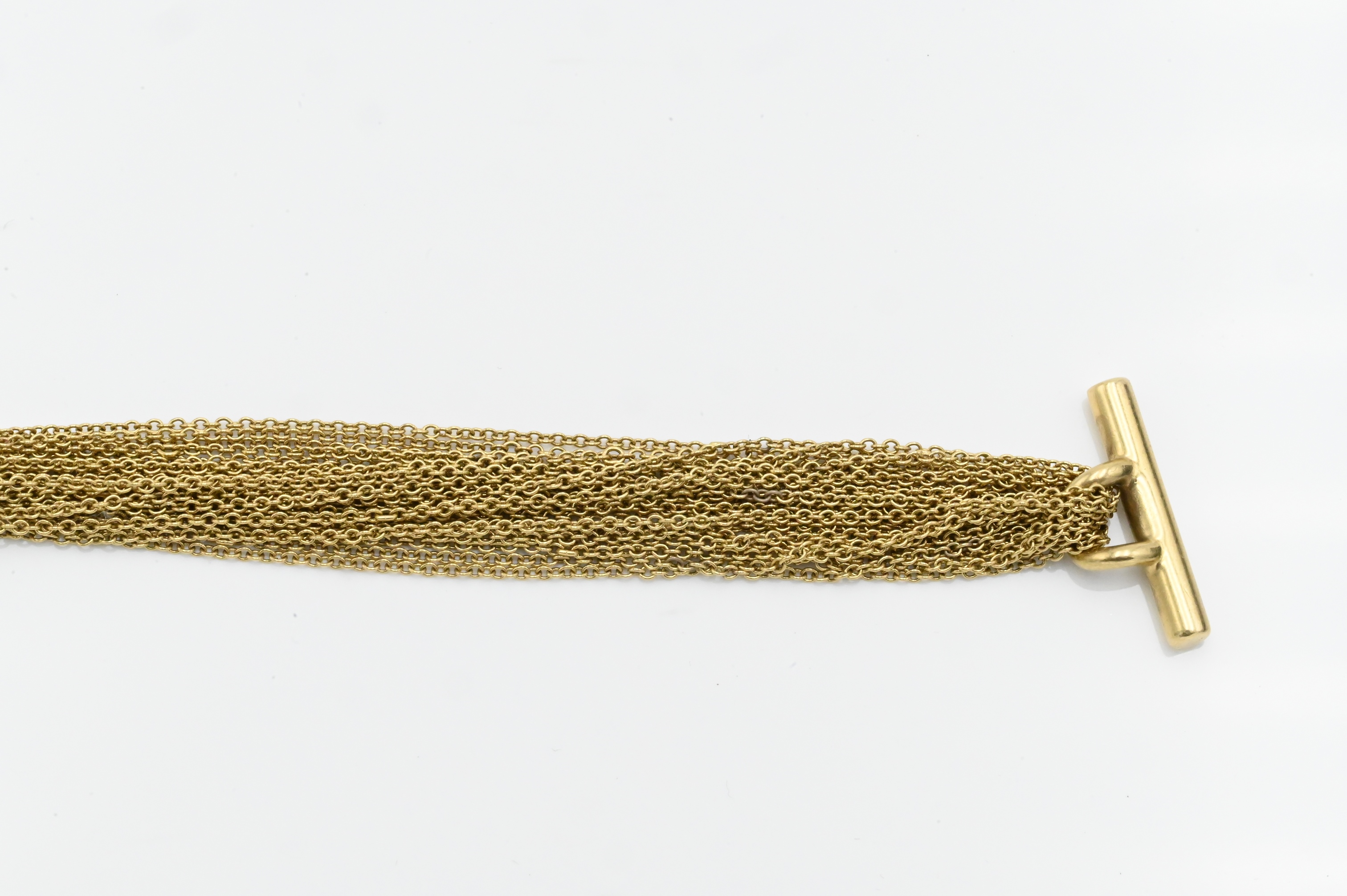 Tiffany and Company 18K Yellow Gold Multi Strand Mesh Heart Toggle Bracelet