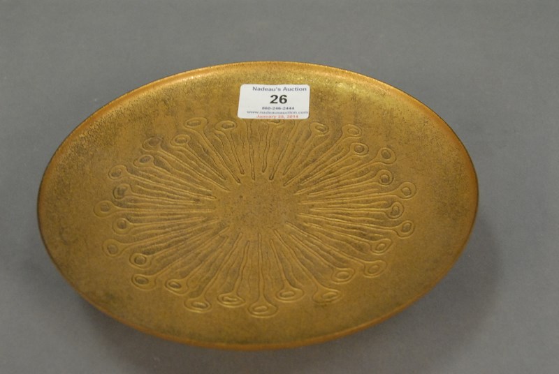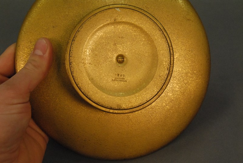 Tiffany gilt bronze short compote marked Tiffany Studios New York 173. dia. 8in.