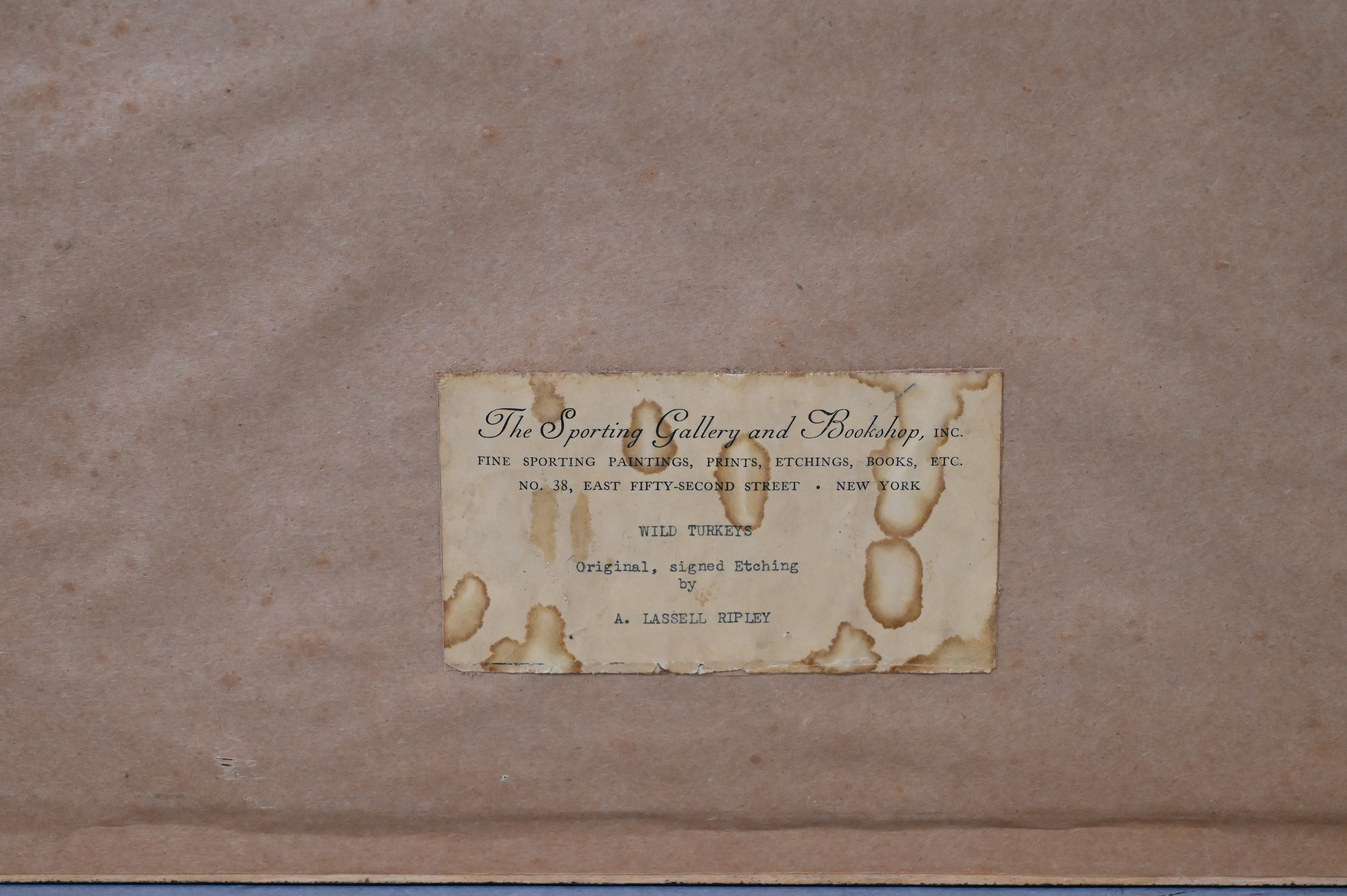 With original gallery label from The Sporting Gallery and Bookshop, New York.