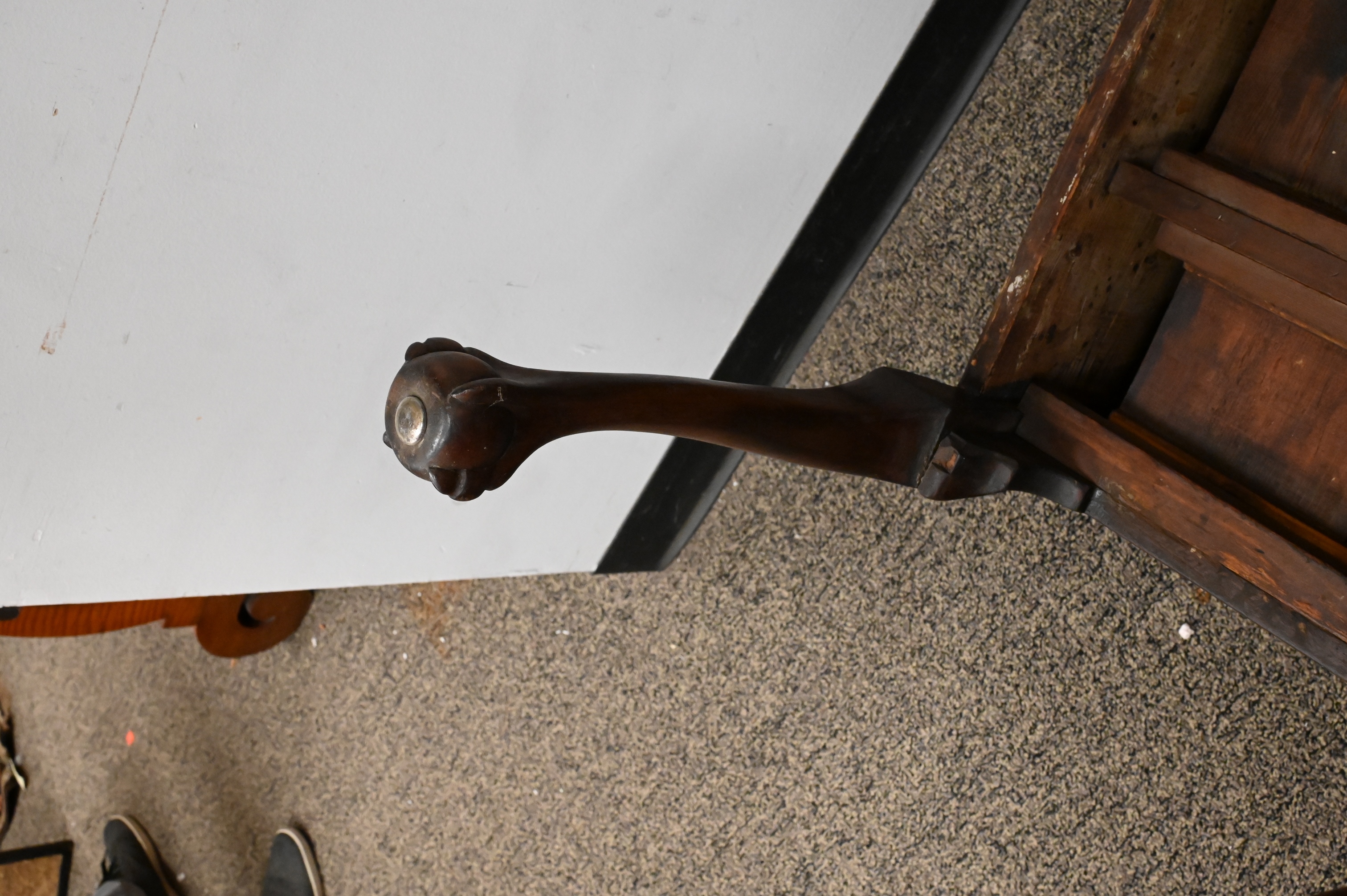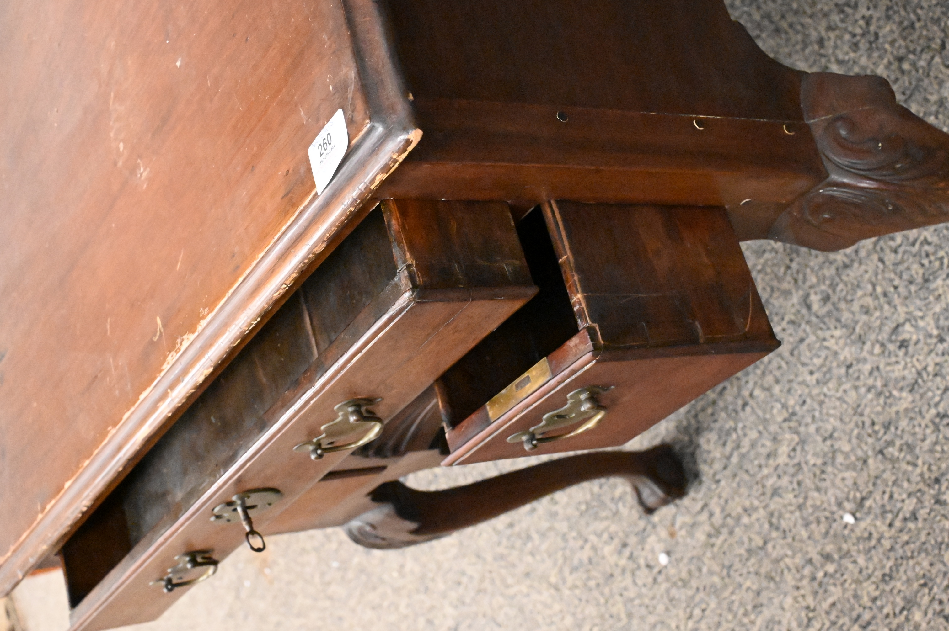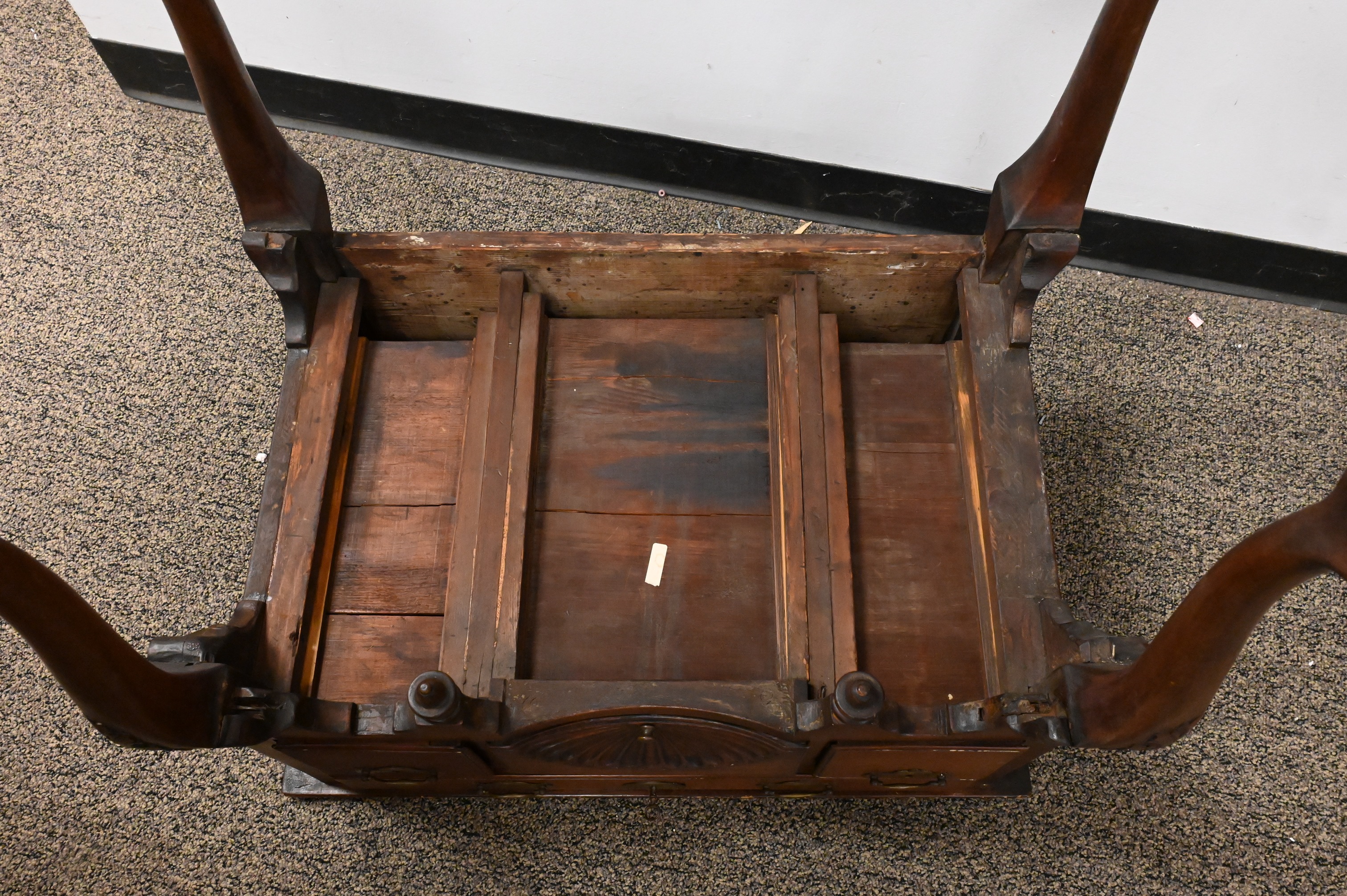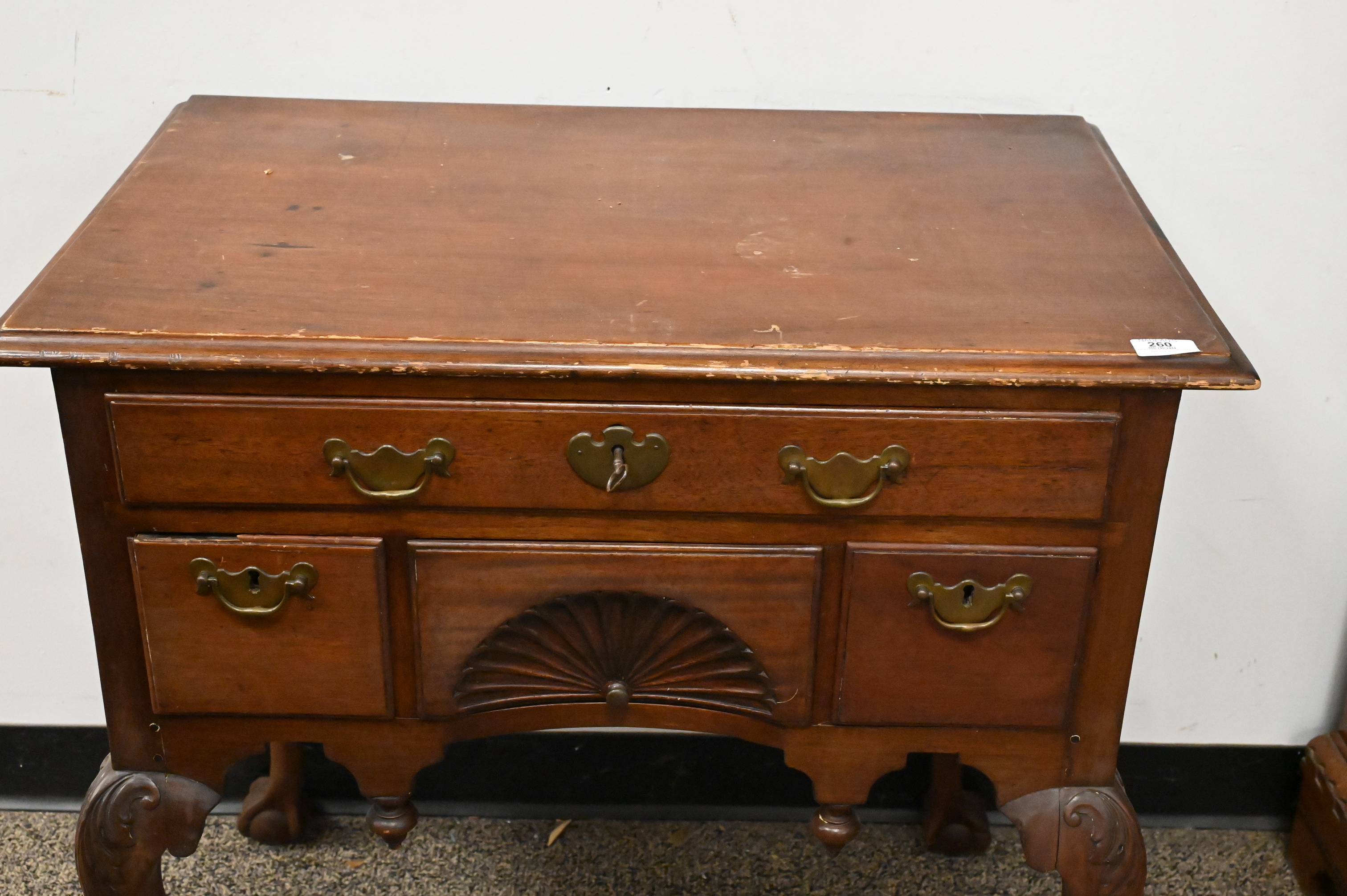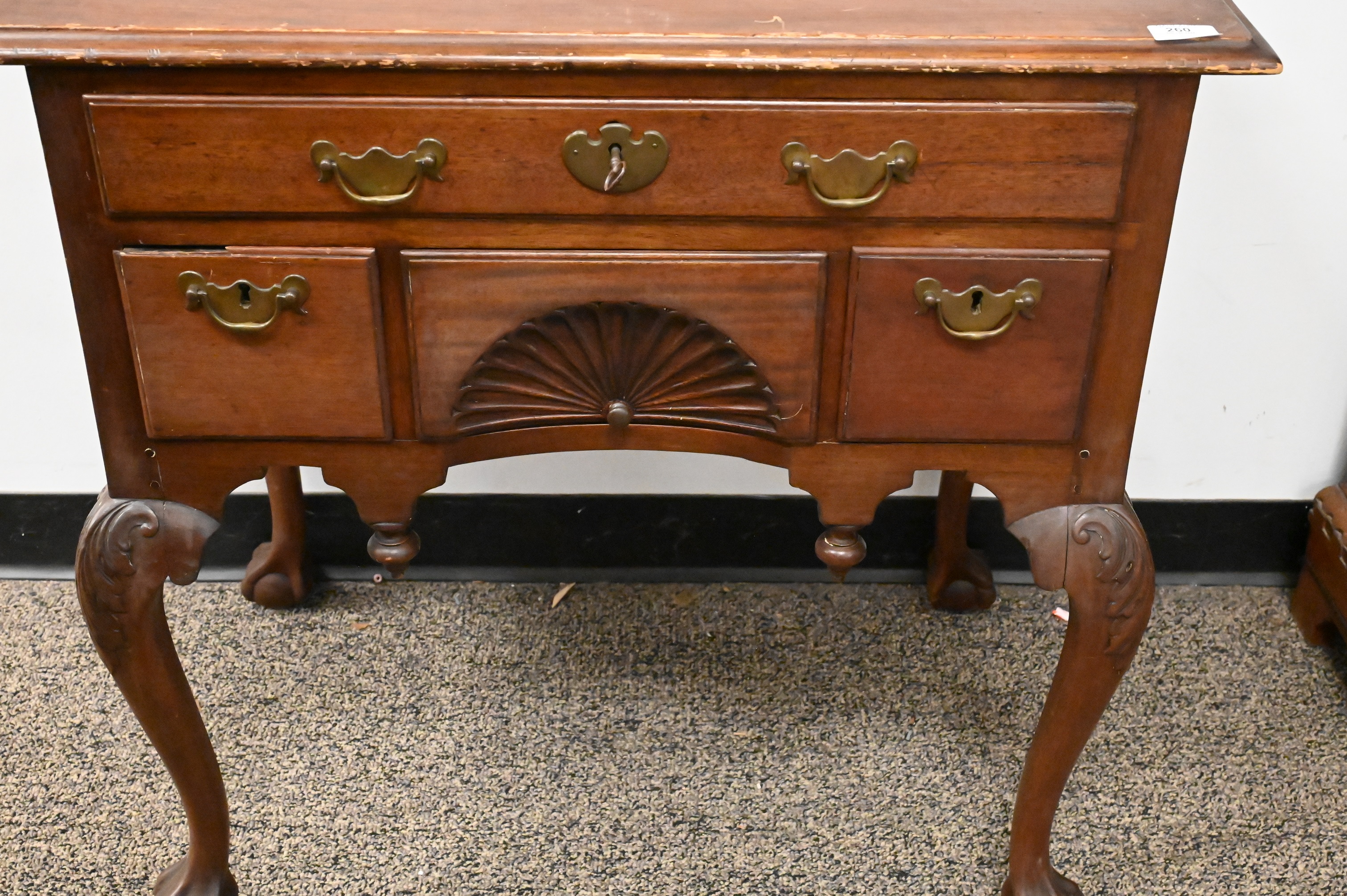 having fan carved center drawer raised on cabriole legs ending in claw and ball feet, partially made using older elements