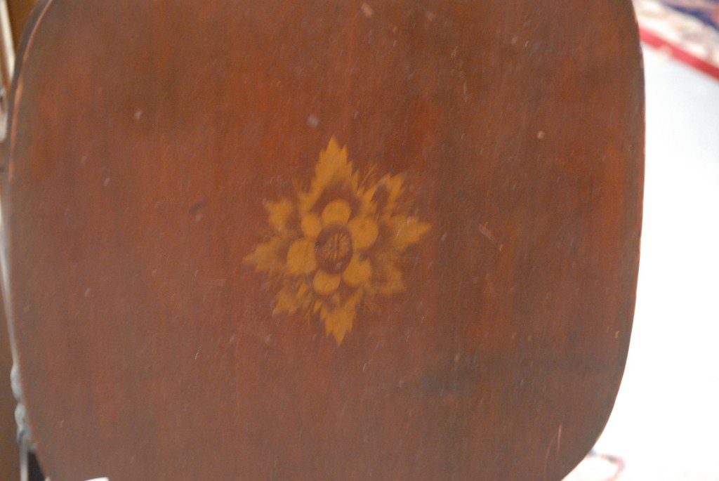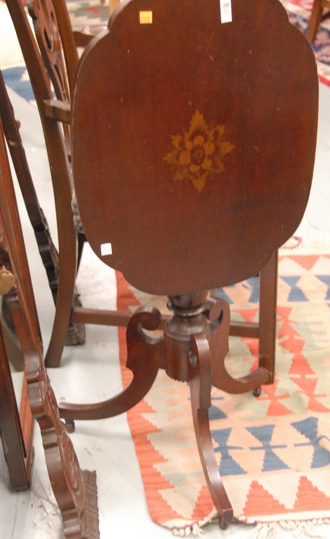 Federal cherry tip candlestand on turned shaft with gold stenciling in middle.