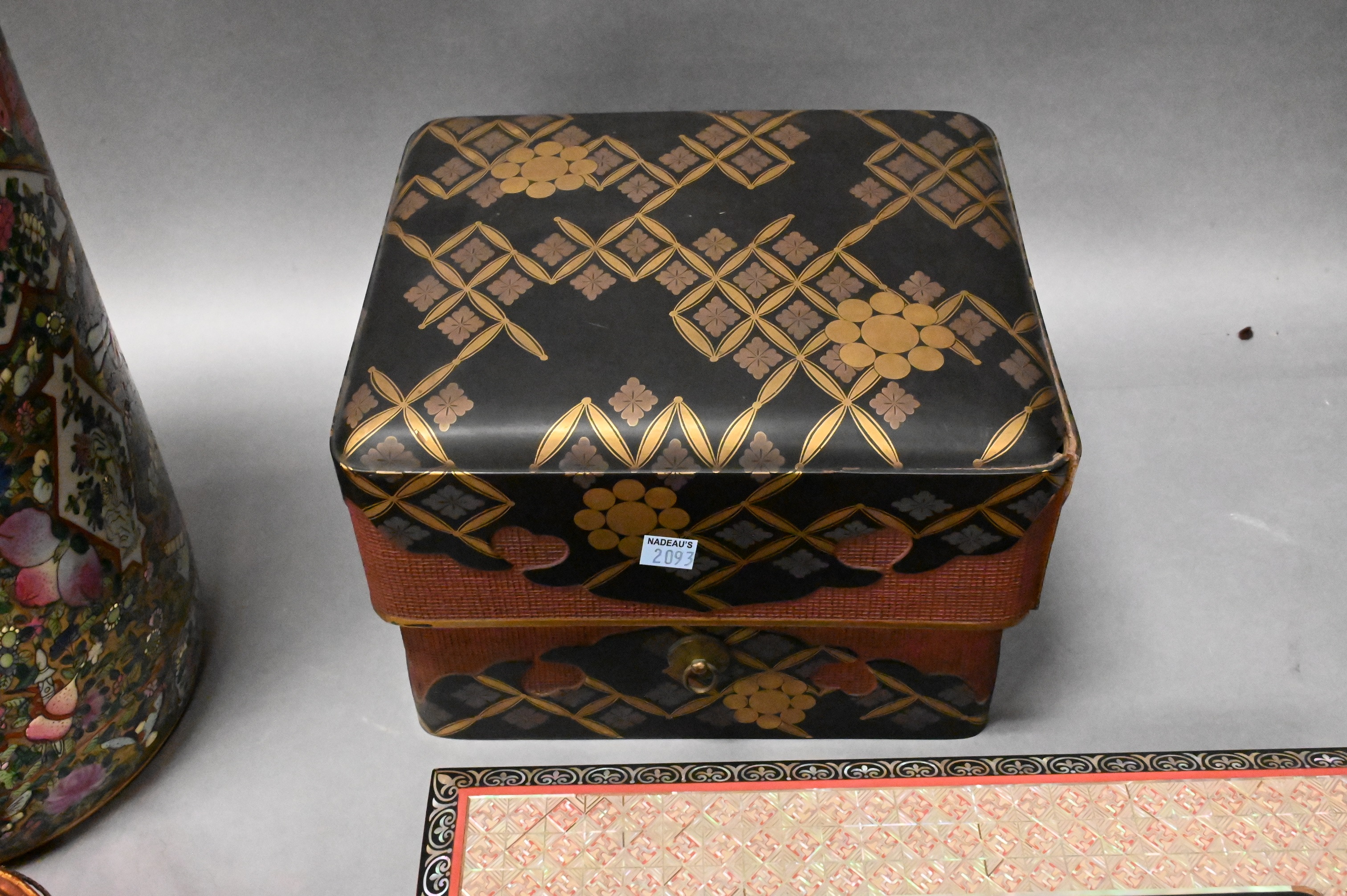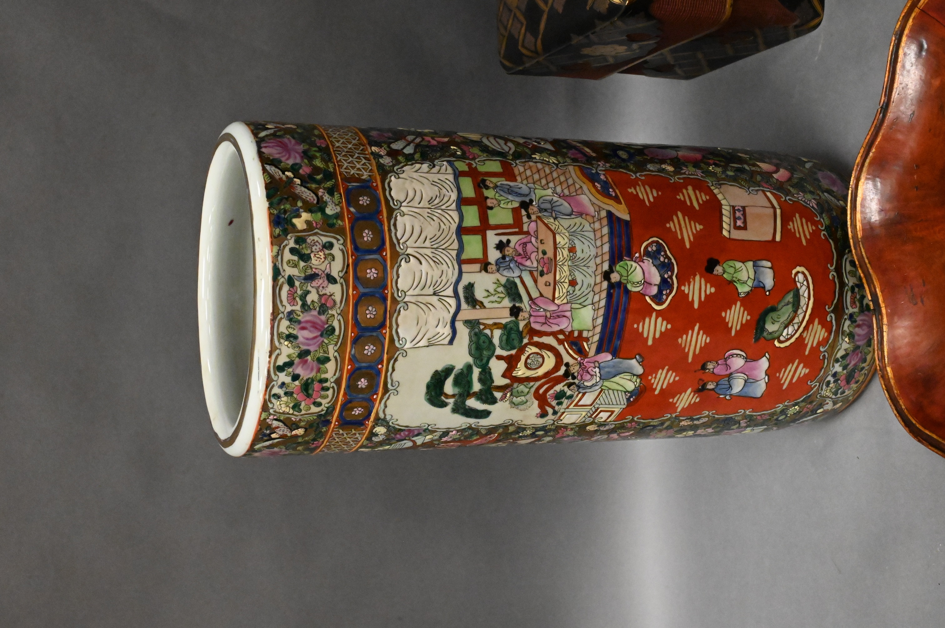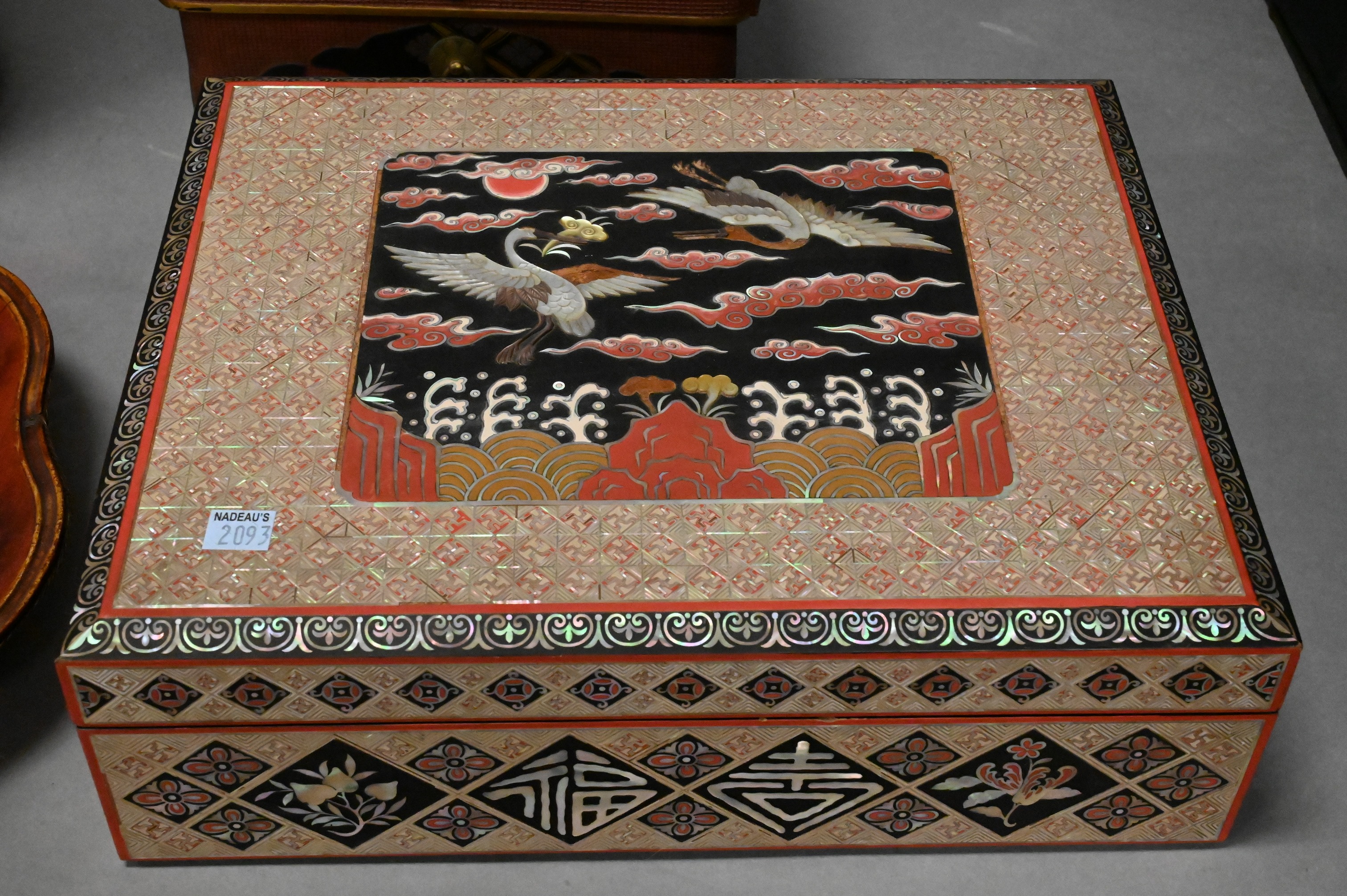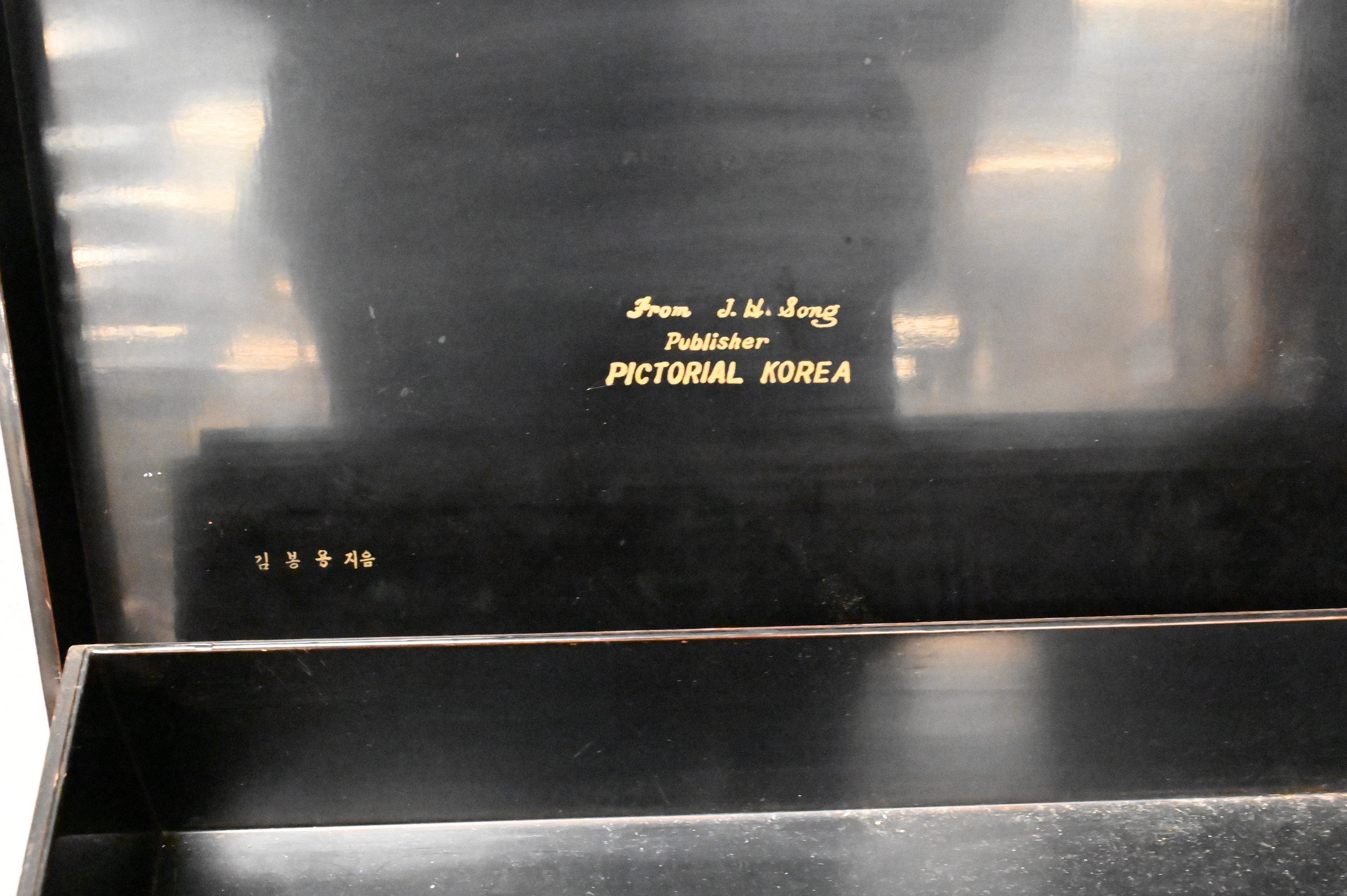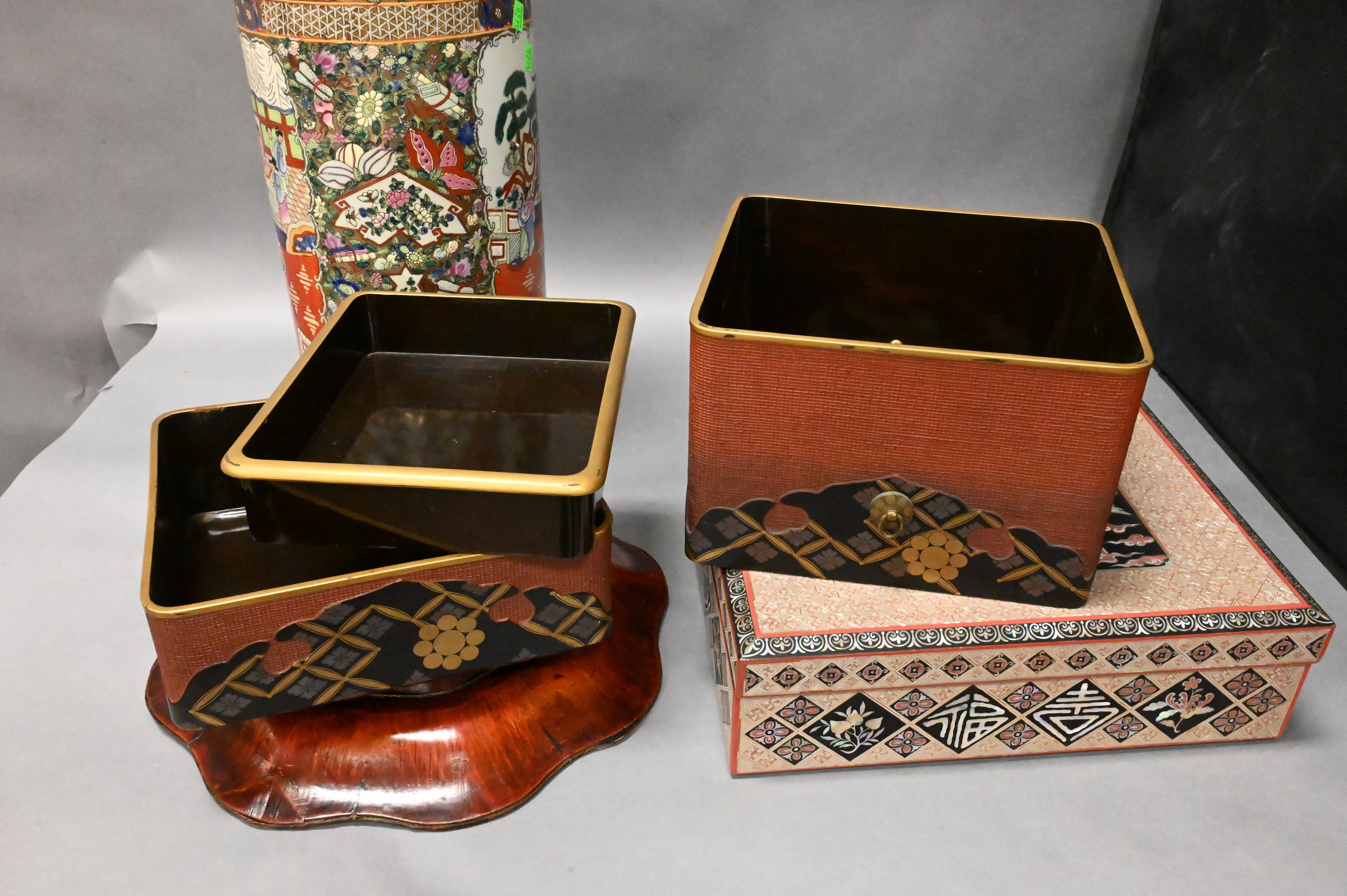 to include one Korean signed song box, one Japanese box with shaped wooden charger, along with porcelain umbrella stand