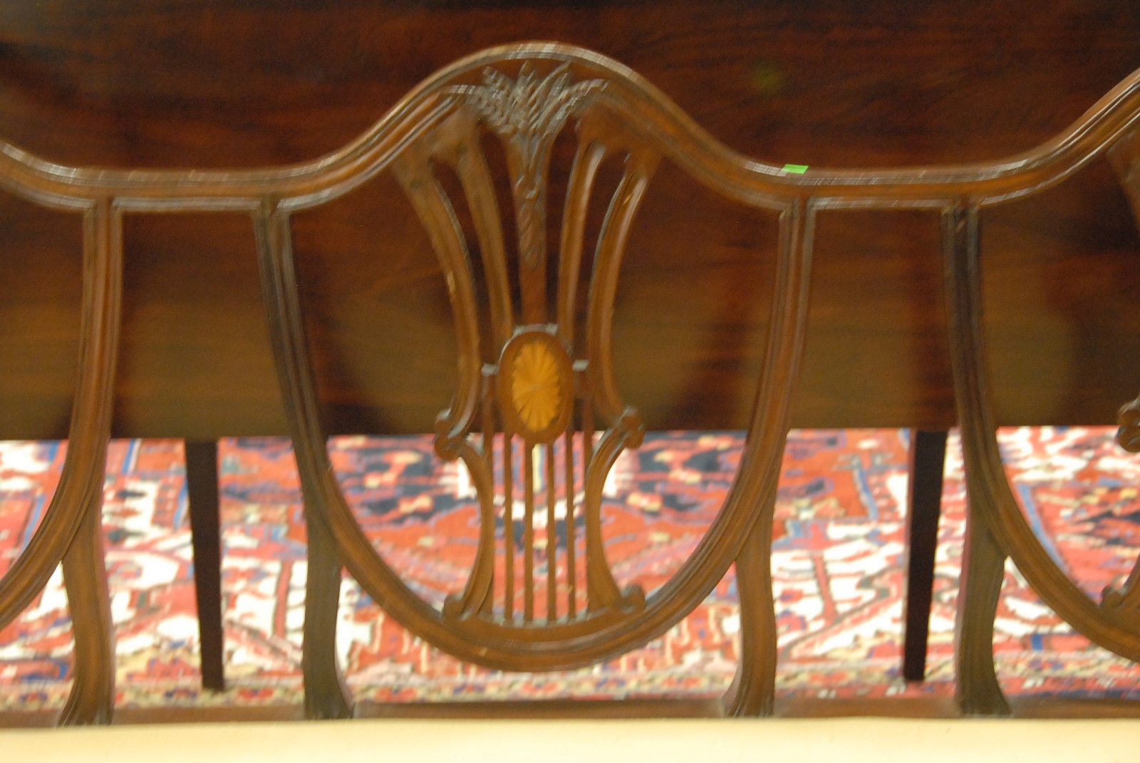 Lot 260: George IV style mahogany triple chair back sette with oval panel inlays, late 19th to early 20th century.