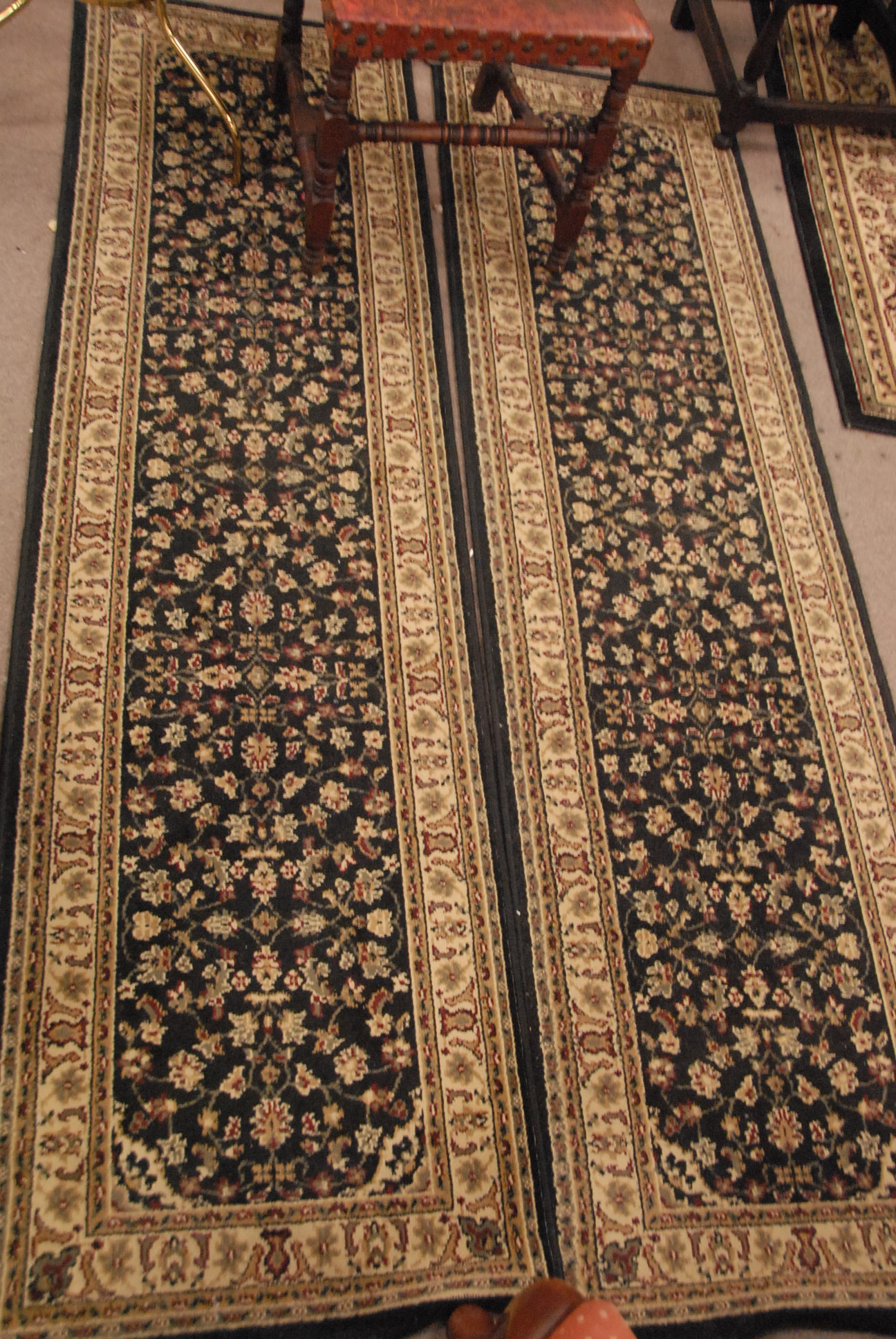 Lot 260: Group of three machine made rugs including two runners 2’1 x 7’8 and one room size 7’7 x 11’1′.