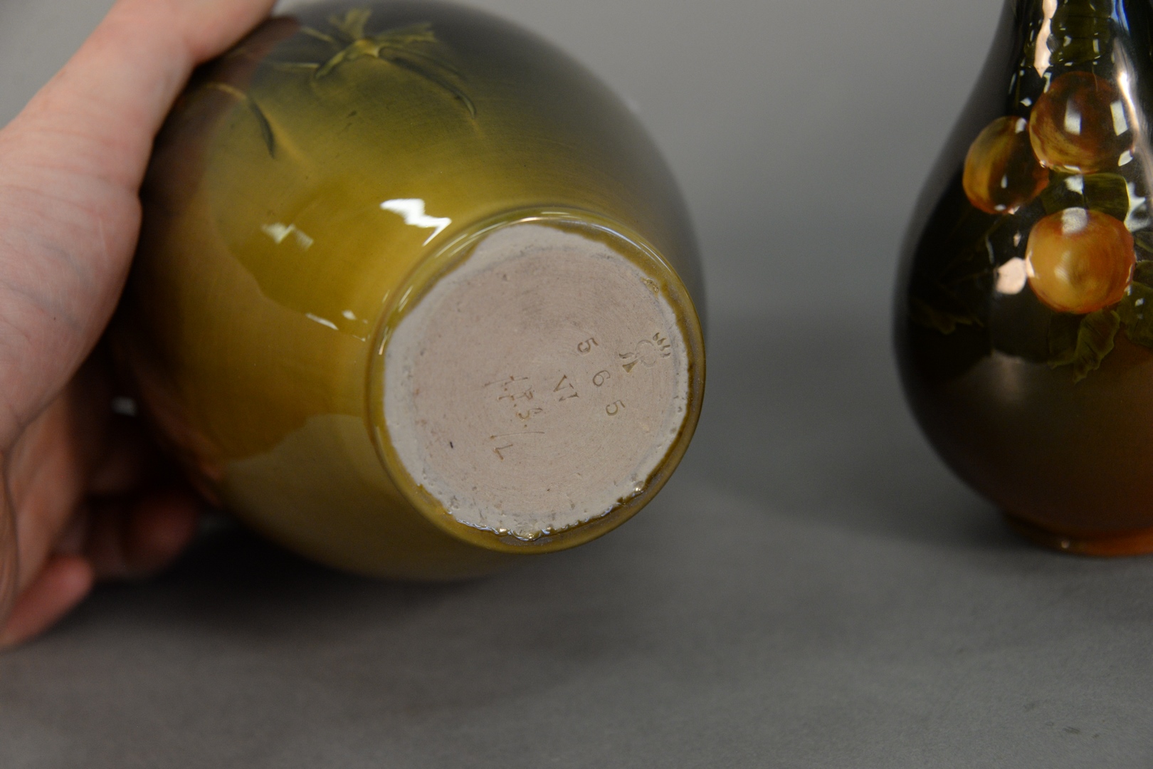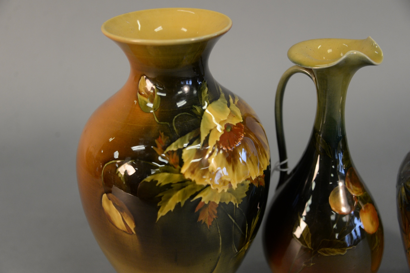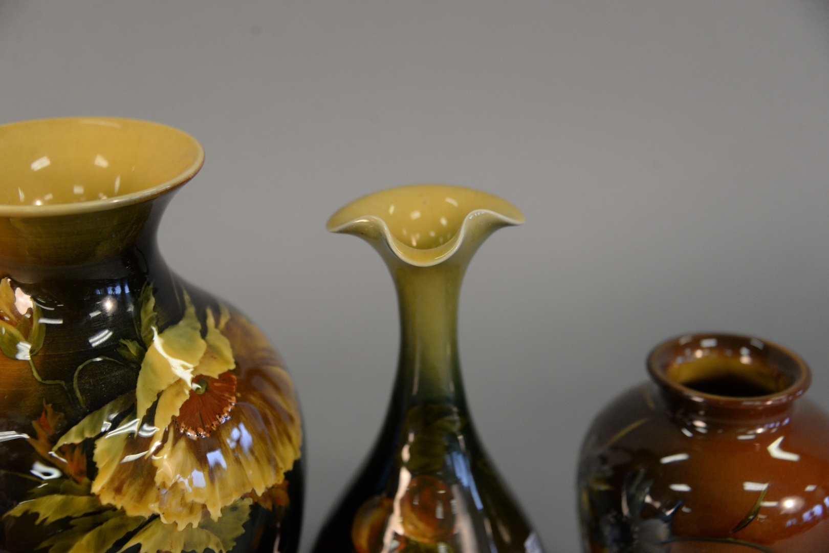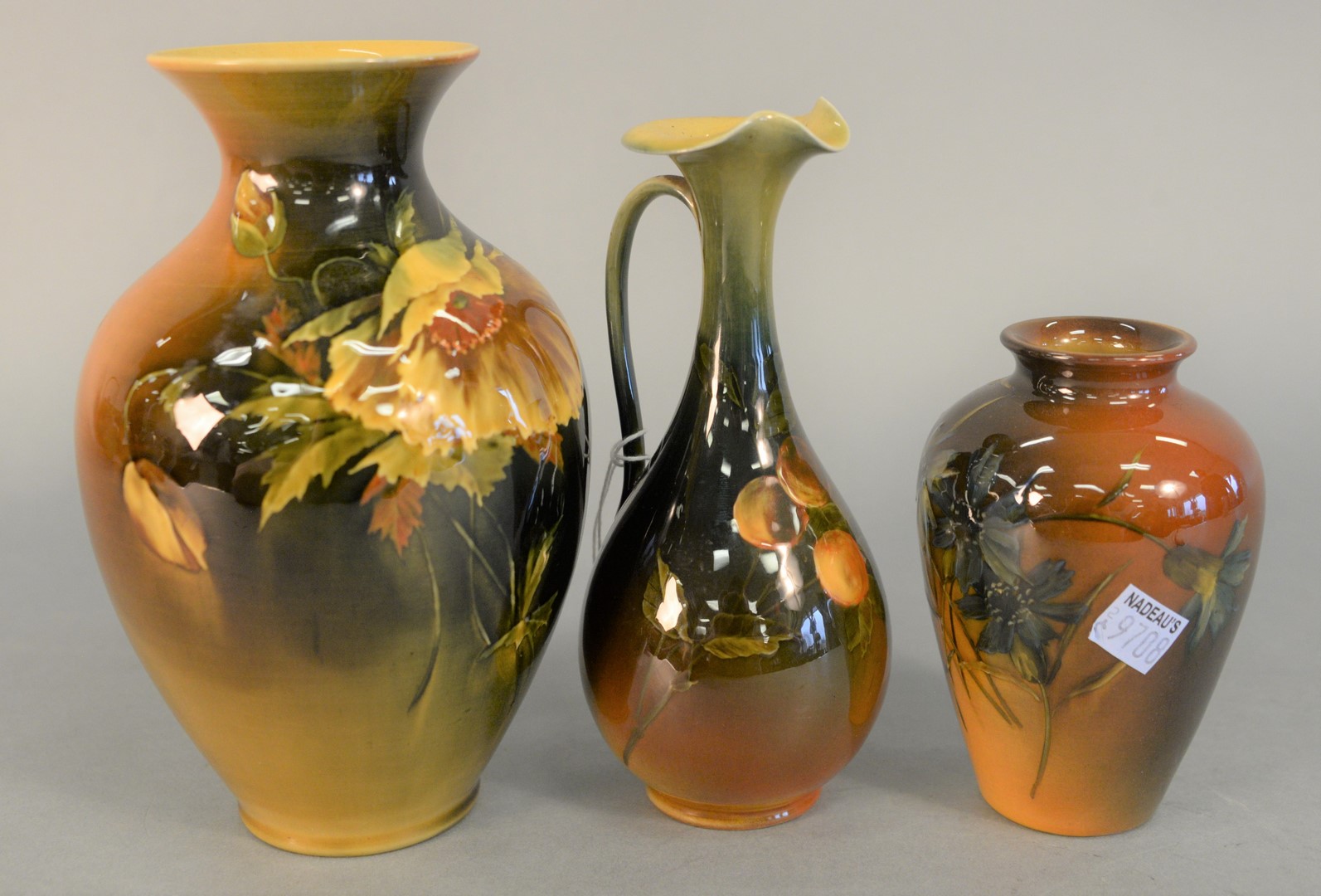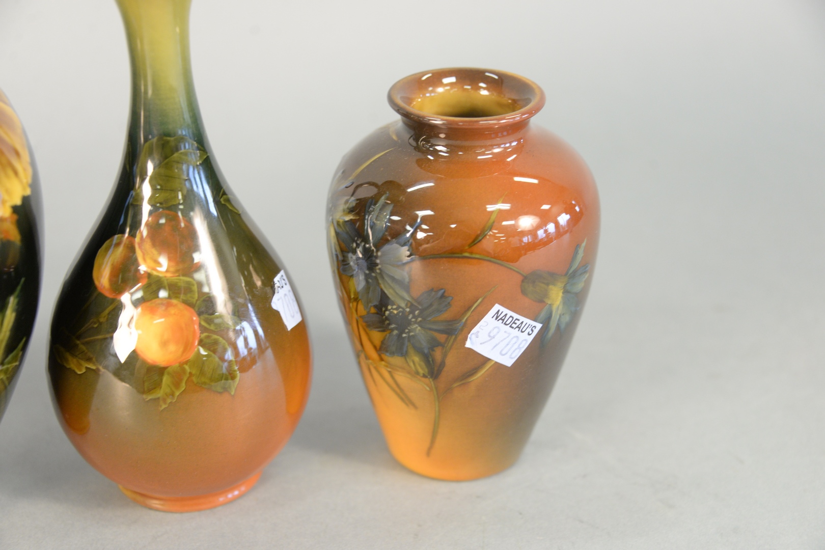 Lot 260: Group of Three Rookwood Pottery Vases with floral motifs and marked to the underside one made by the artist Amelia Brown Sprague on…