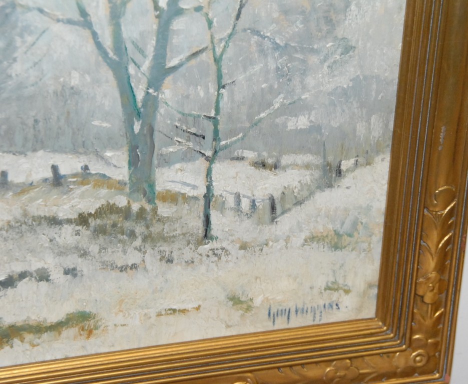 GUY CARLETON WIGGINS 1883-1962 FALLING SNOW oil on canvas signed lower right Guy Wiggins, titled, signed, and dated on reverse Falling Snow, Guy Wiggins 1924 20 X 24