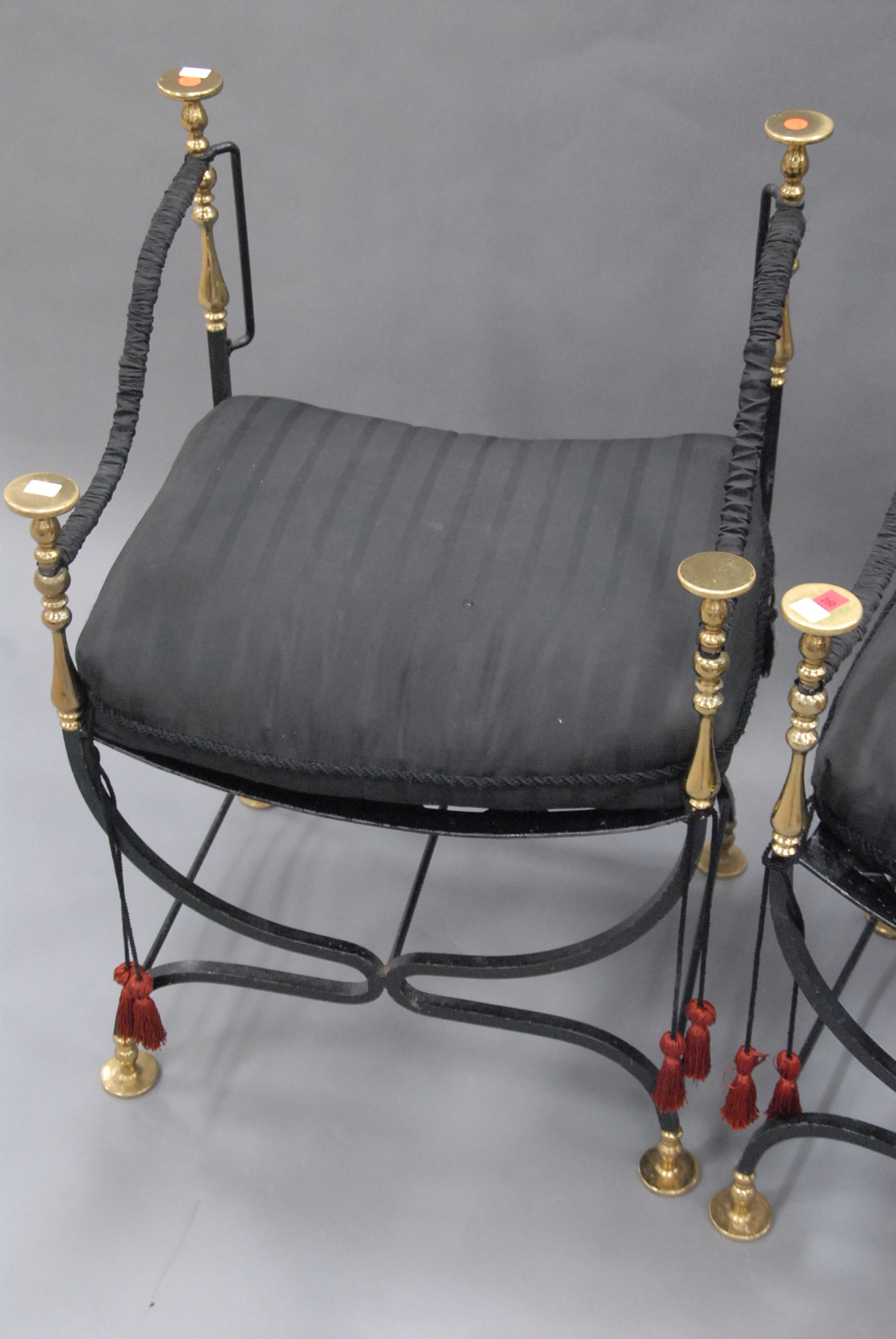 Lot 260: Two iron benches with brass trim
