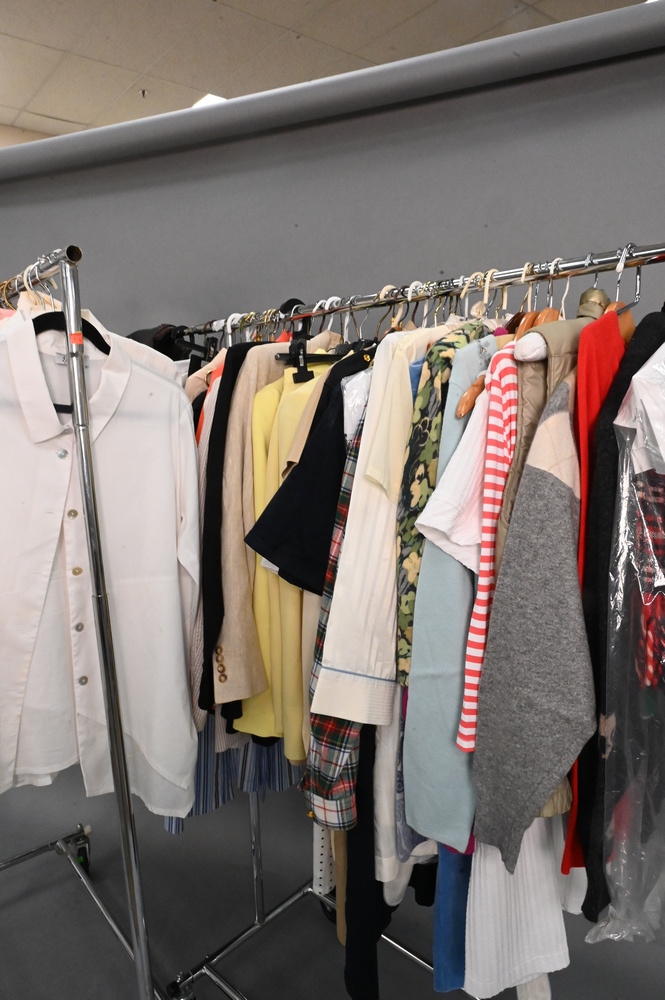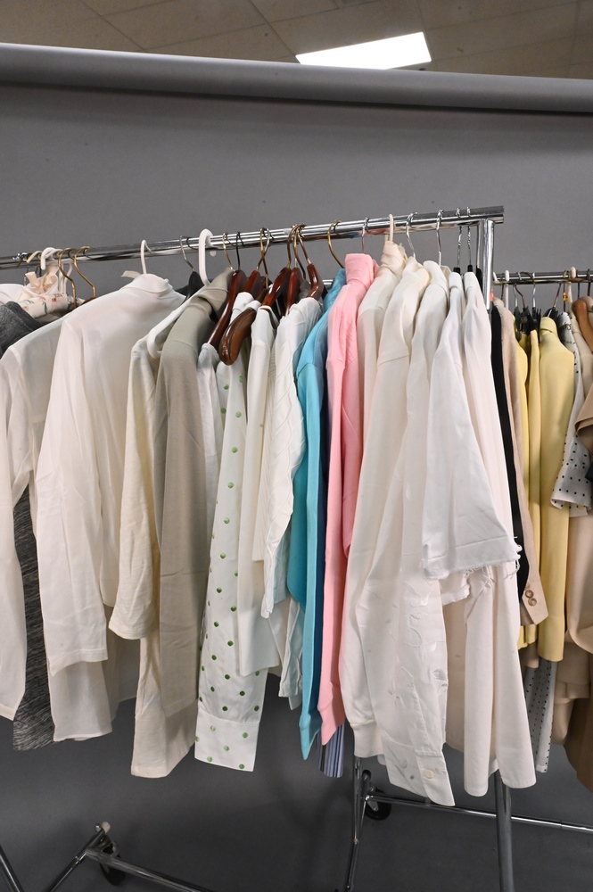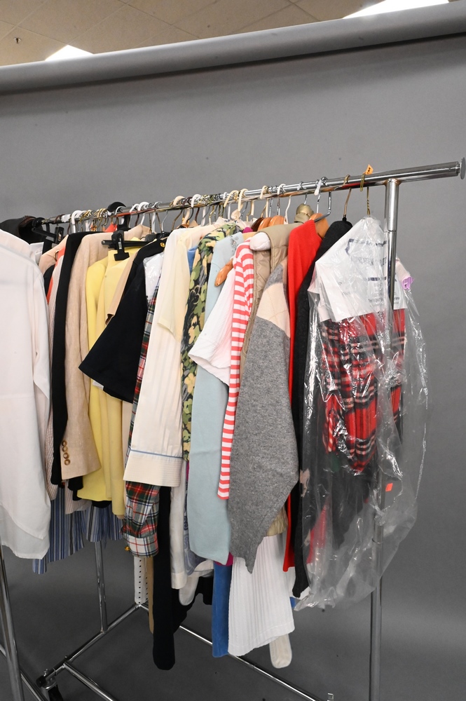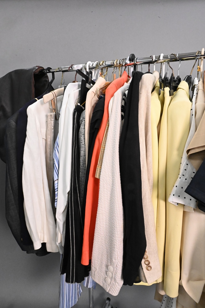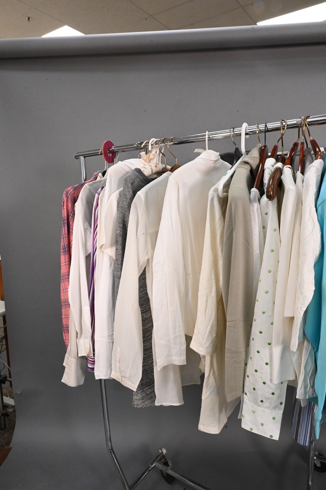 Lot 260: Two Racks of Vintage Women’s Clothing, to include blouses, blazers, skirts; along with sweaters from Laurel, Banana Republic, J. Cre…