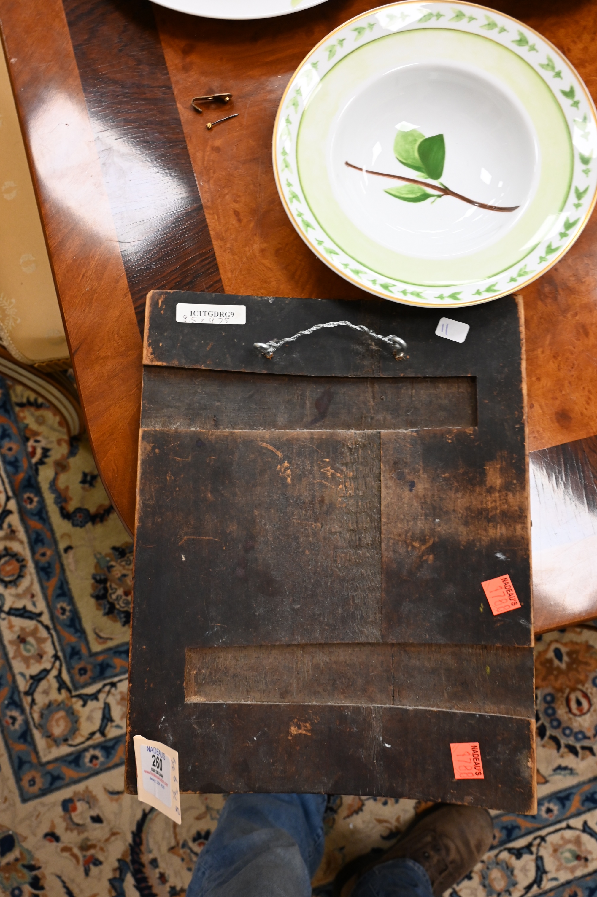 Condition: cracking to wood and paint, worm holes throughout, paint loss, bowed wood, repairs to wood