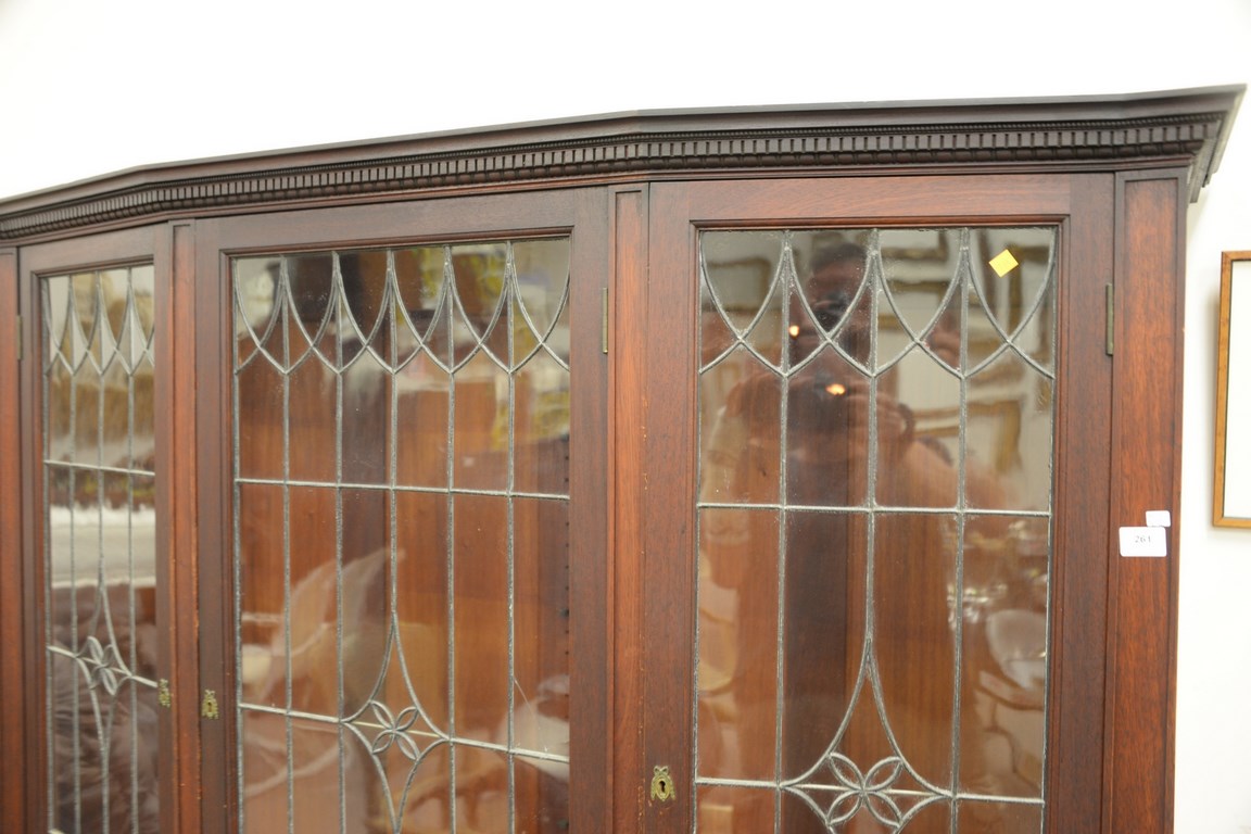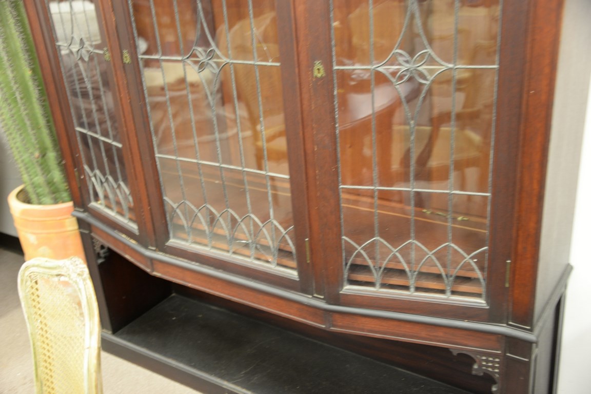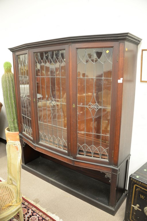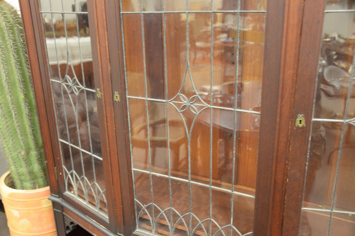 Breakfront with three leaded glass doors few cracks in glass. ht. 73 in. wd. 66 in. dp. 16 in.