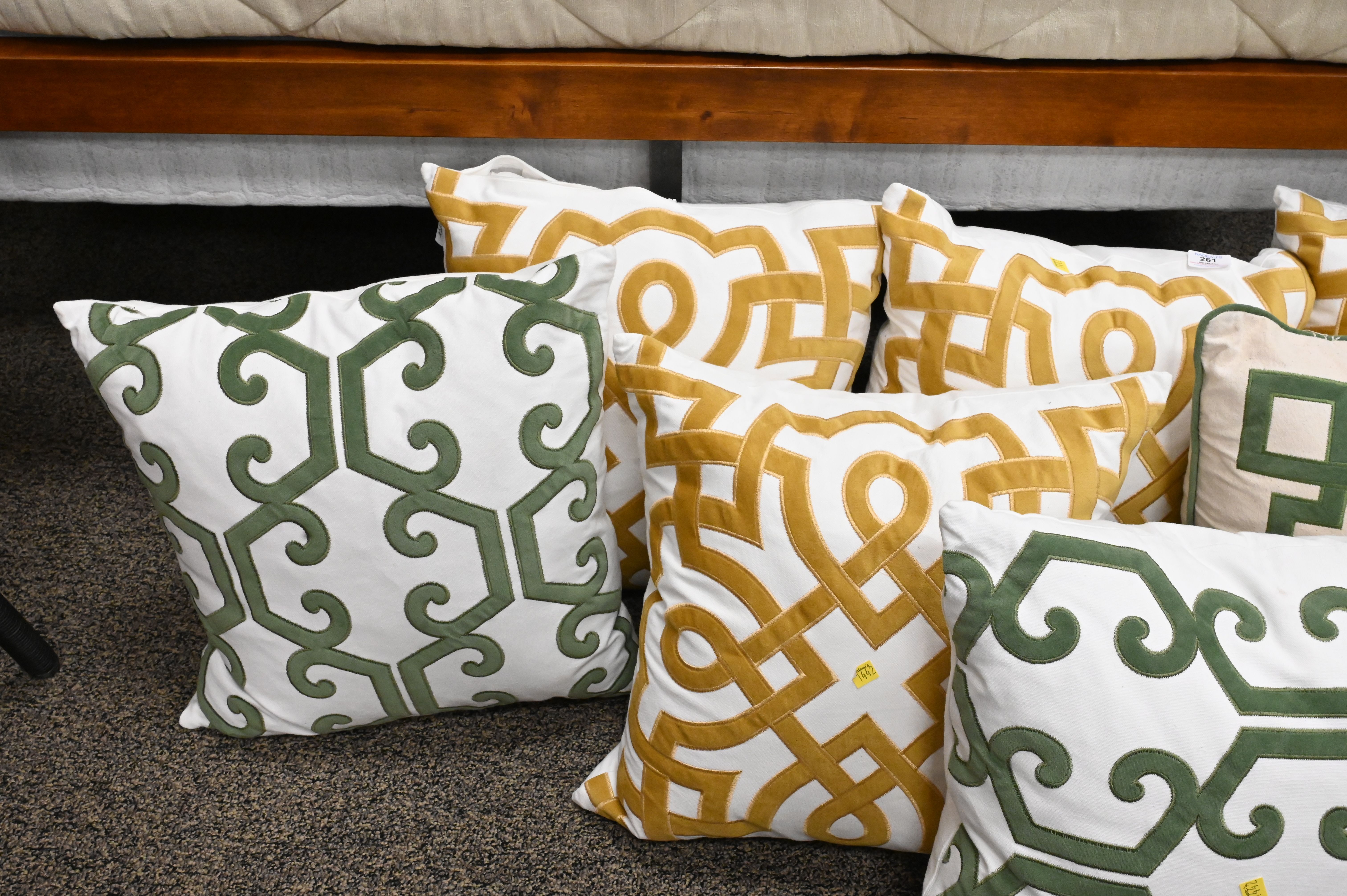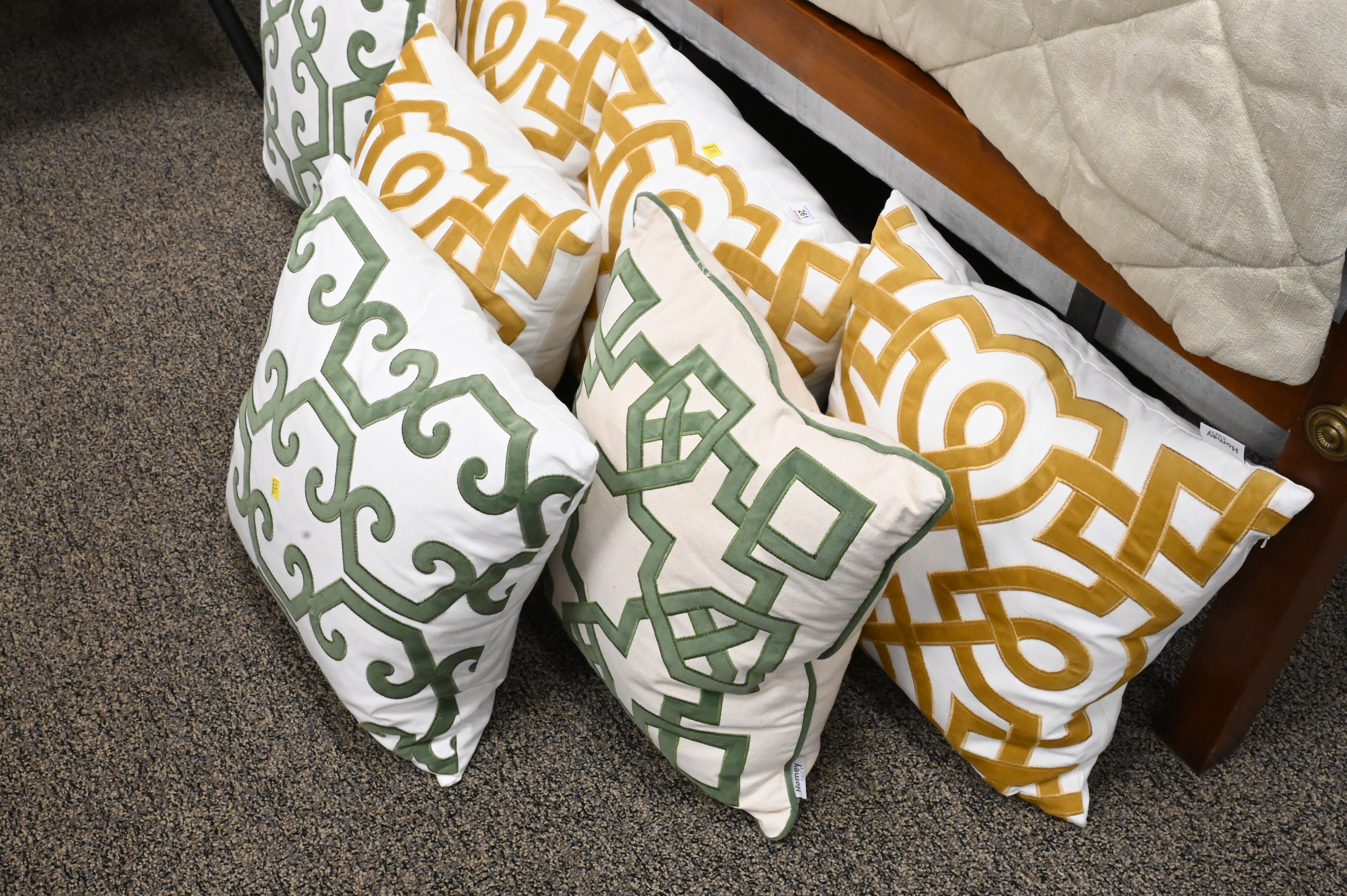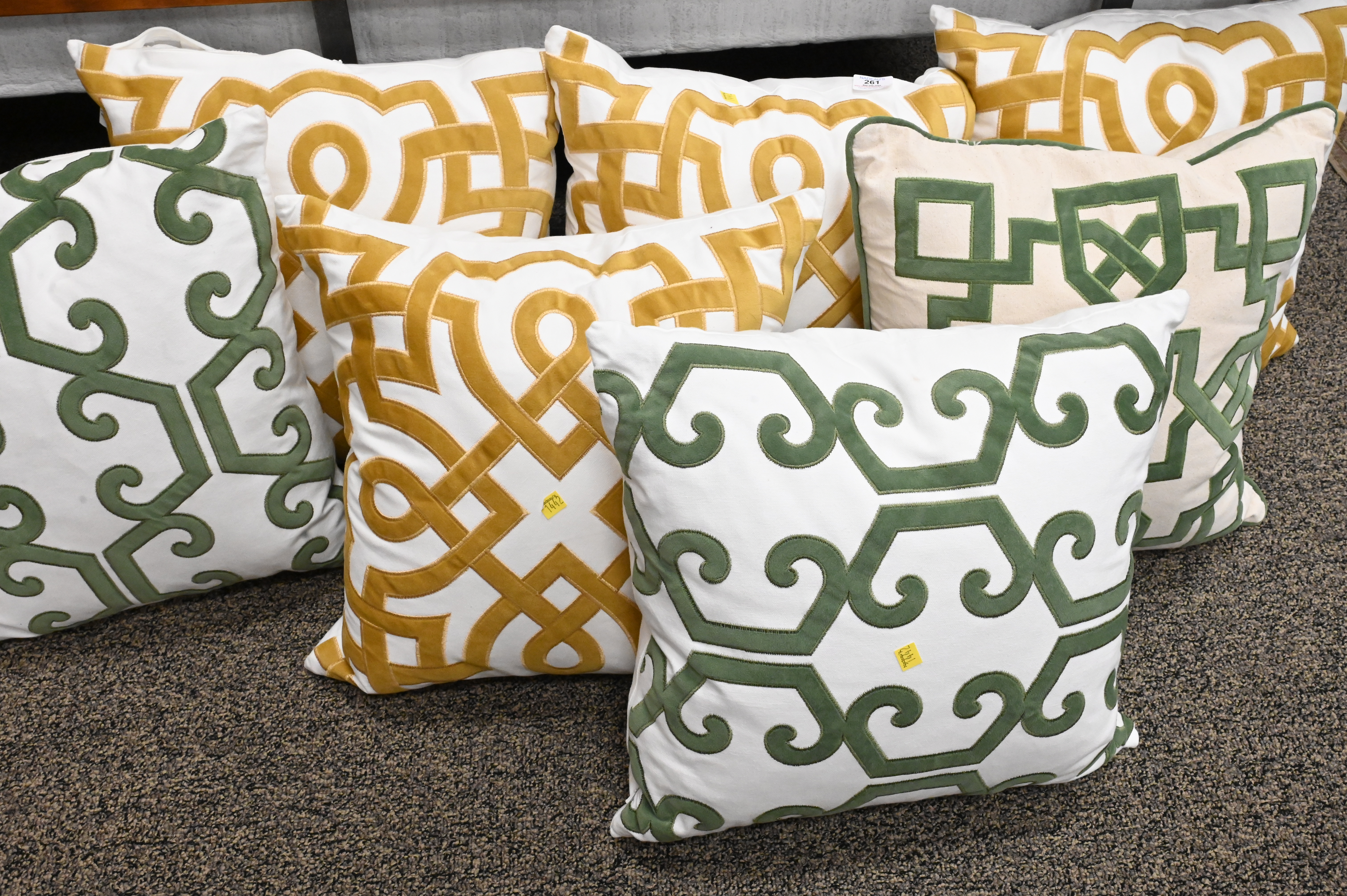 Group of Seven Custom Throw Pillows, by Homey Cozy, down filled.