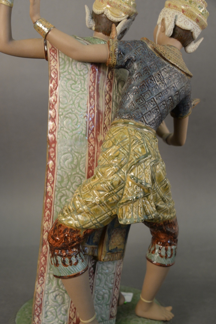 Lladro Porcelain Figural Group, “Thai Couple”, model 2058, marked to the underside, height 20 1/2 inches. Provenance: Estate of James Wadhams