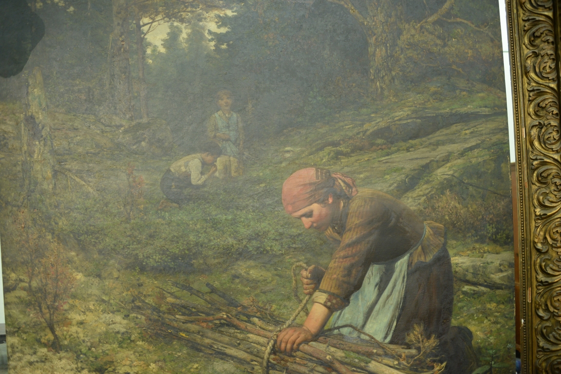 Lot 261: Oscar Wergeland 1844-1910 oil on canvas Gathering Wood, signed lower right OSC Wergeland, 67 x 55