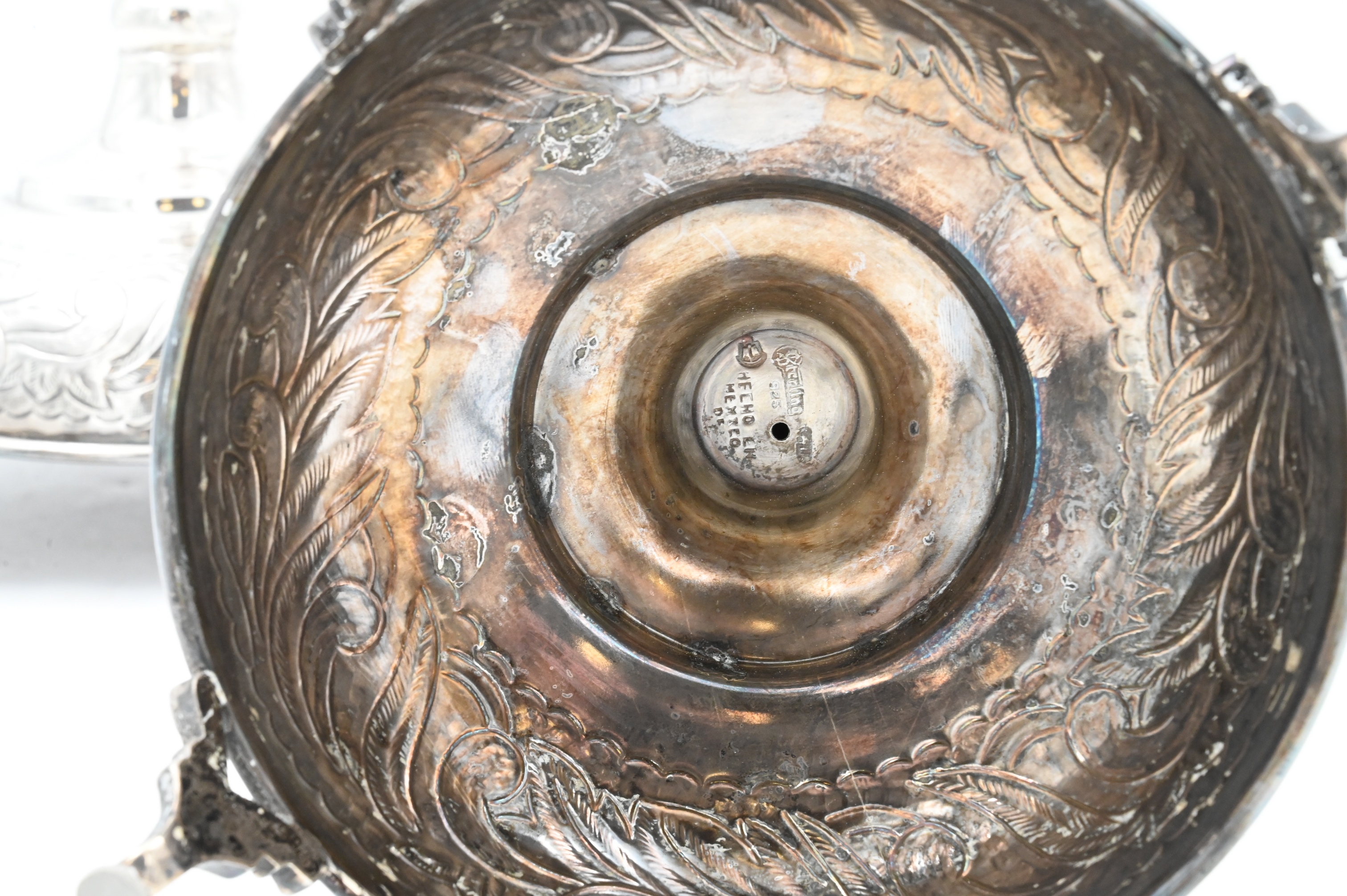 having repousse columns and chased bell base set on four legs