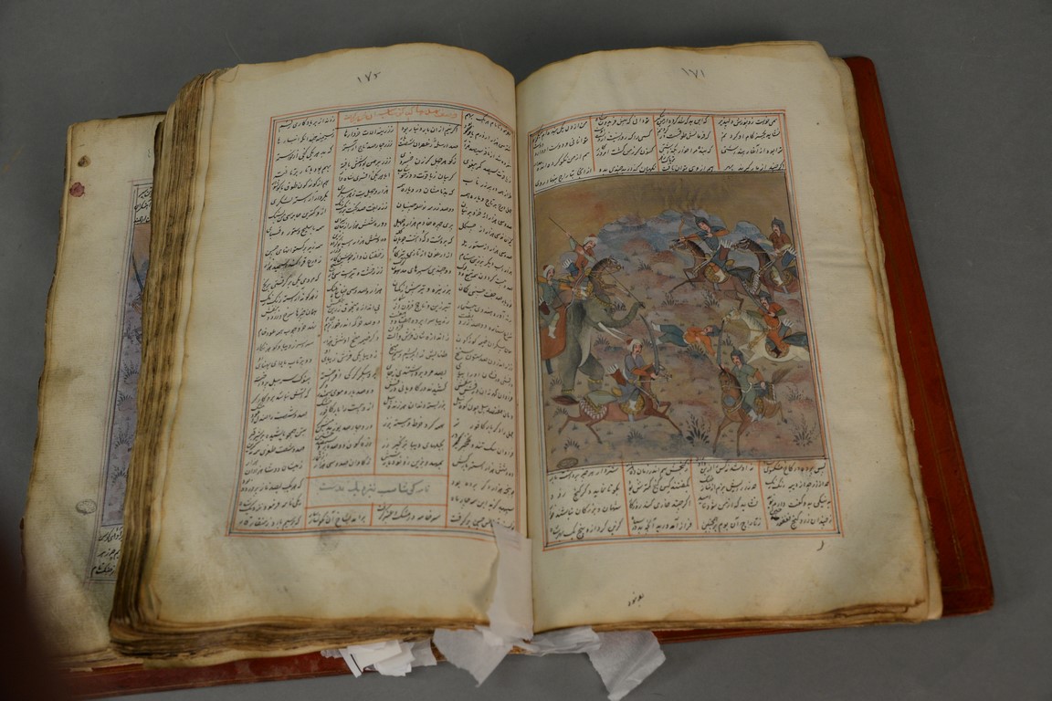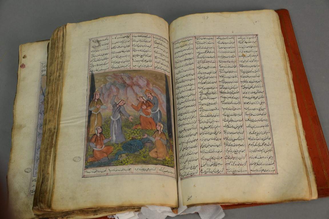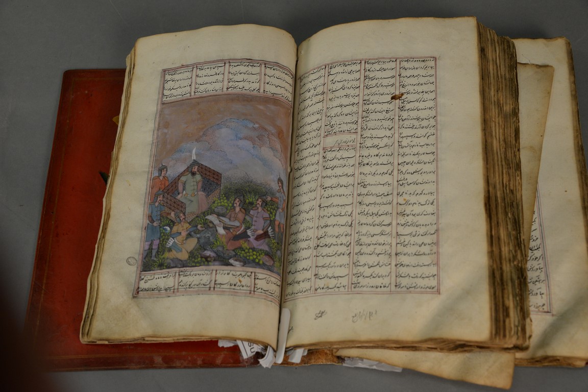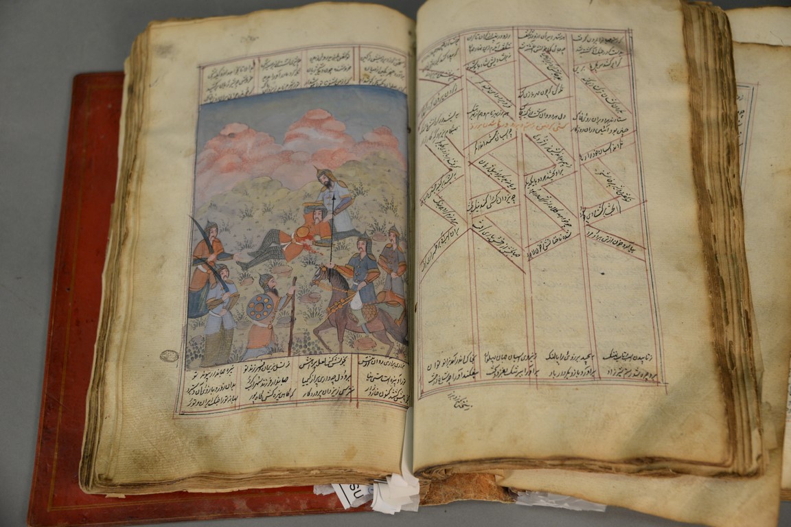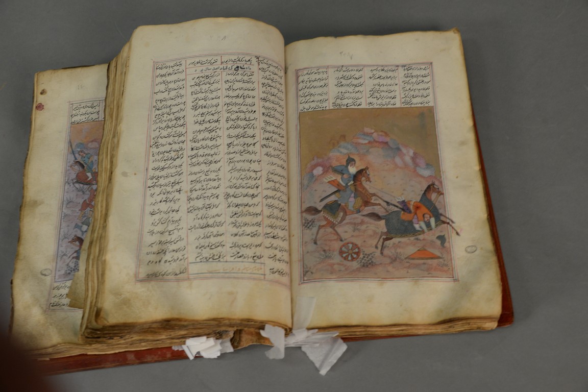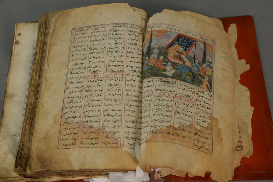 Lot 261: Persian poem book with twenty-four hand painted pages 2 7/8 inch thick, probably 17th century. height 11 1/2 inches, width 8 inches