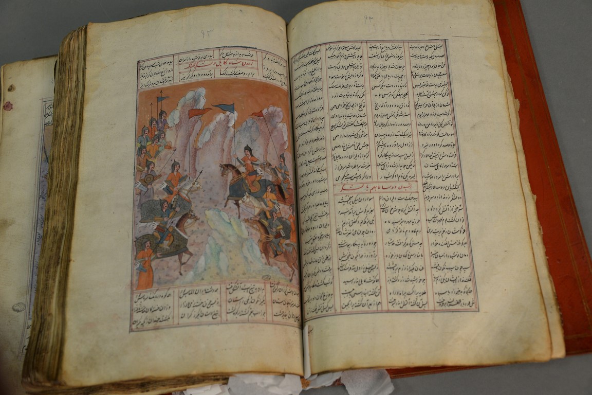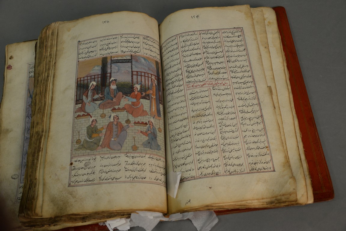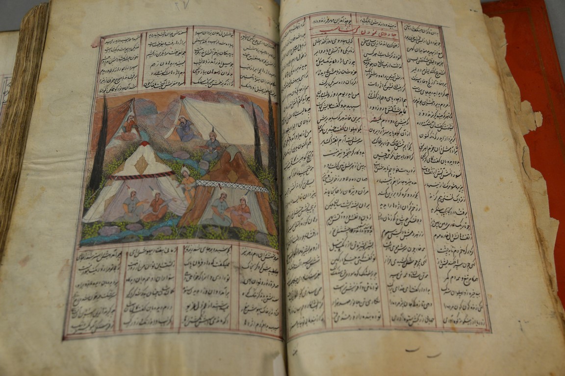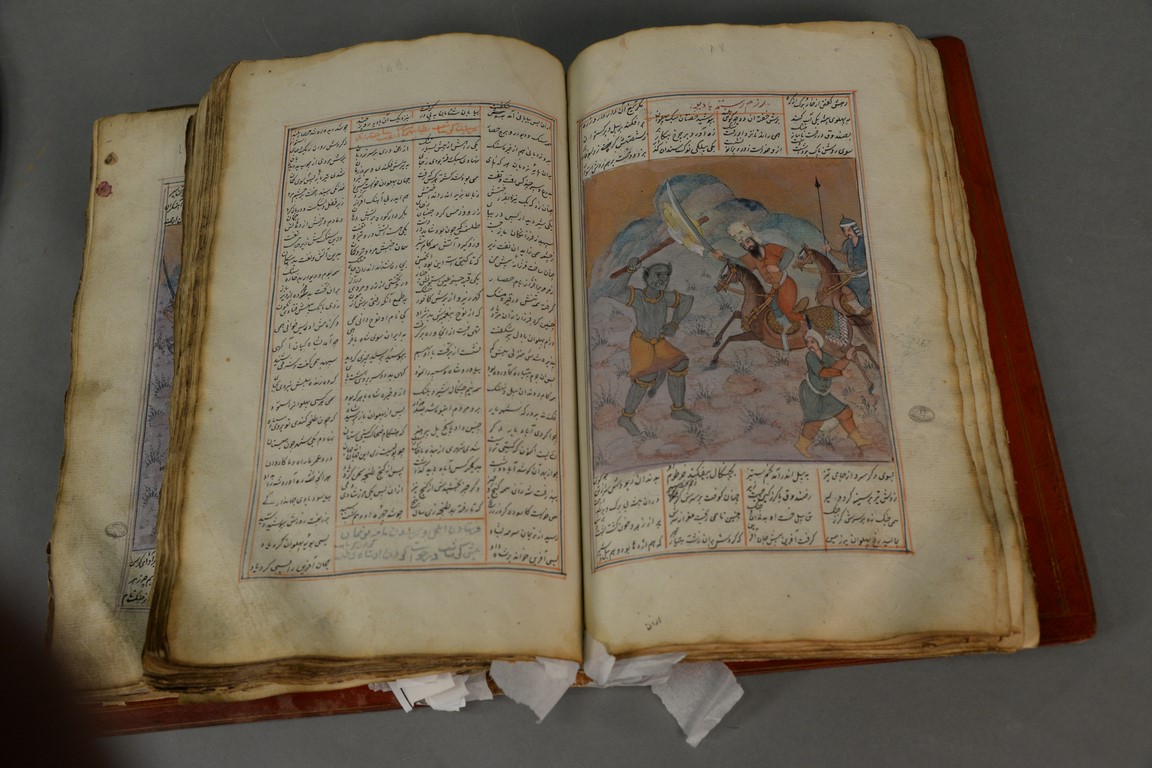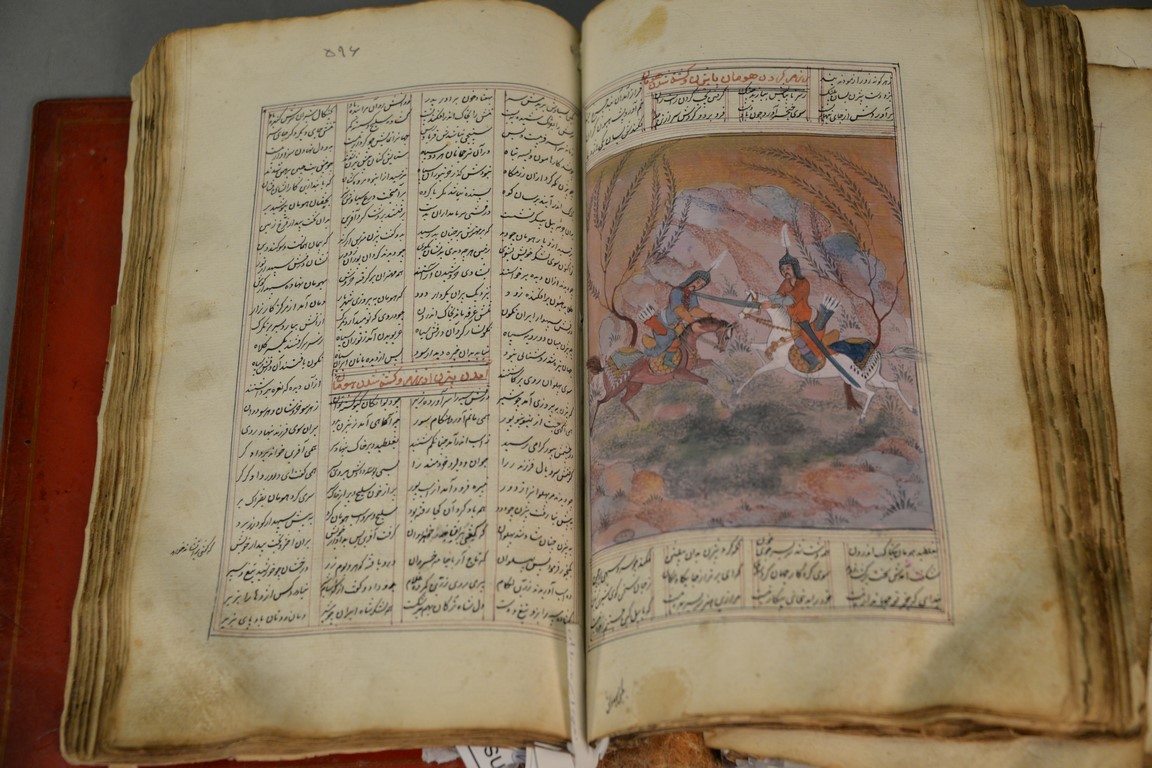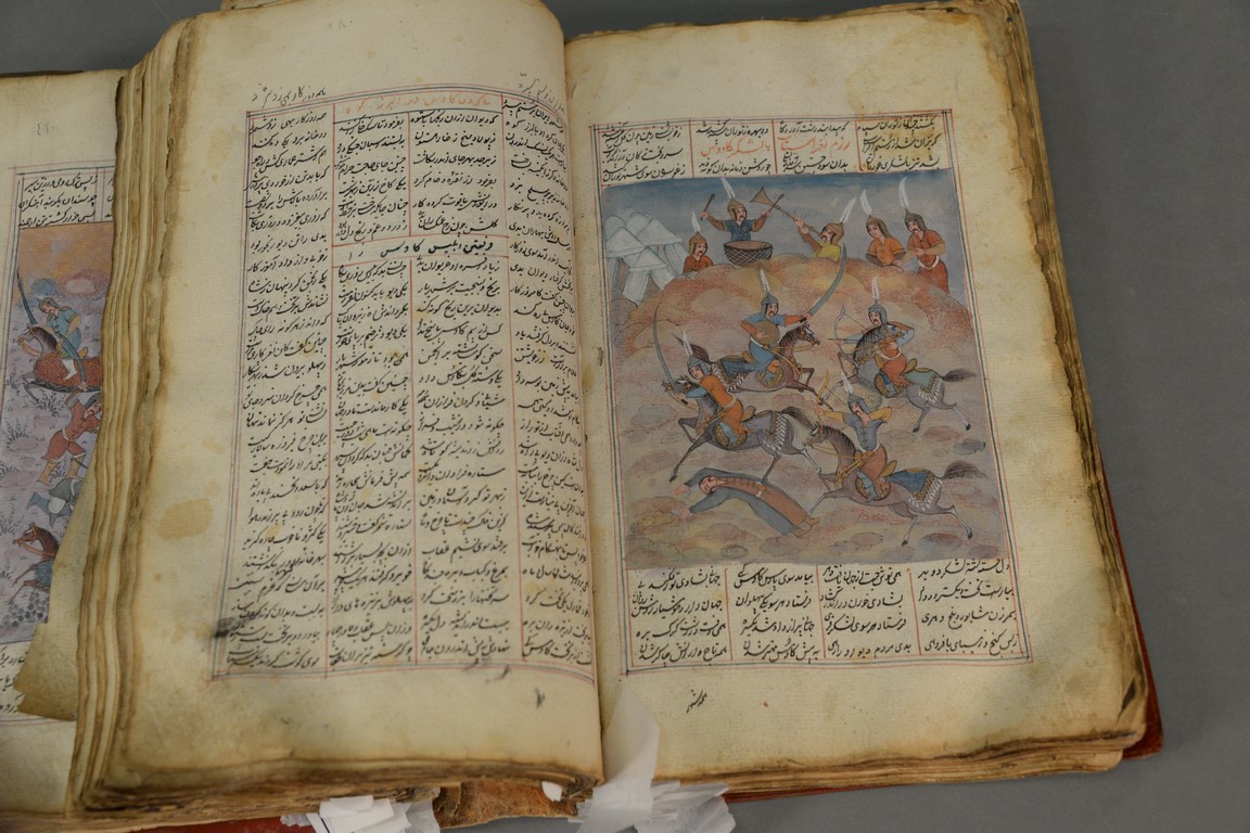 Lot 261: Persian poem book with twenty-four hand painted pages 2 7/8 inch thick, probably 17th century. height 11 1/2 inches, width 8 inches