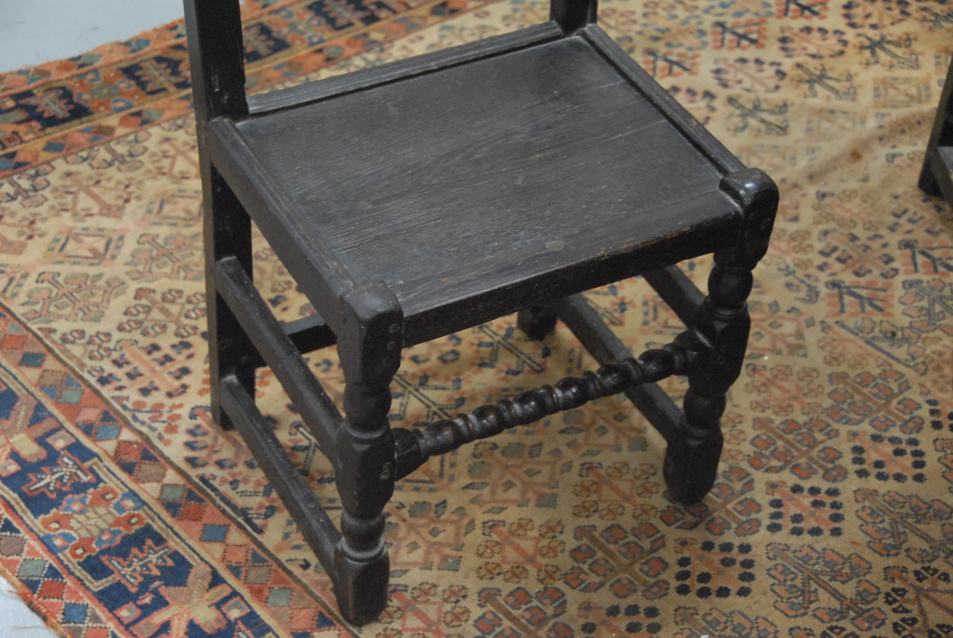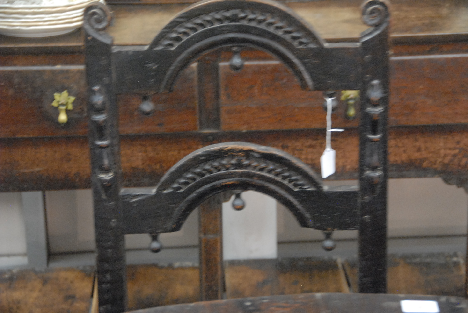 Set of six English Yorkshire side chairs, carved oak on block and turned legs, 17th century. Provenance: Property from The Estate of Margaret Oliphant of Old Lyme, Connecticut