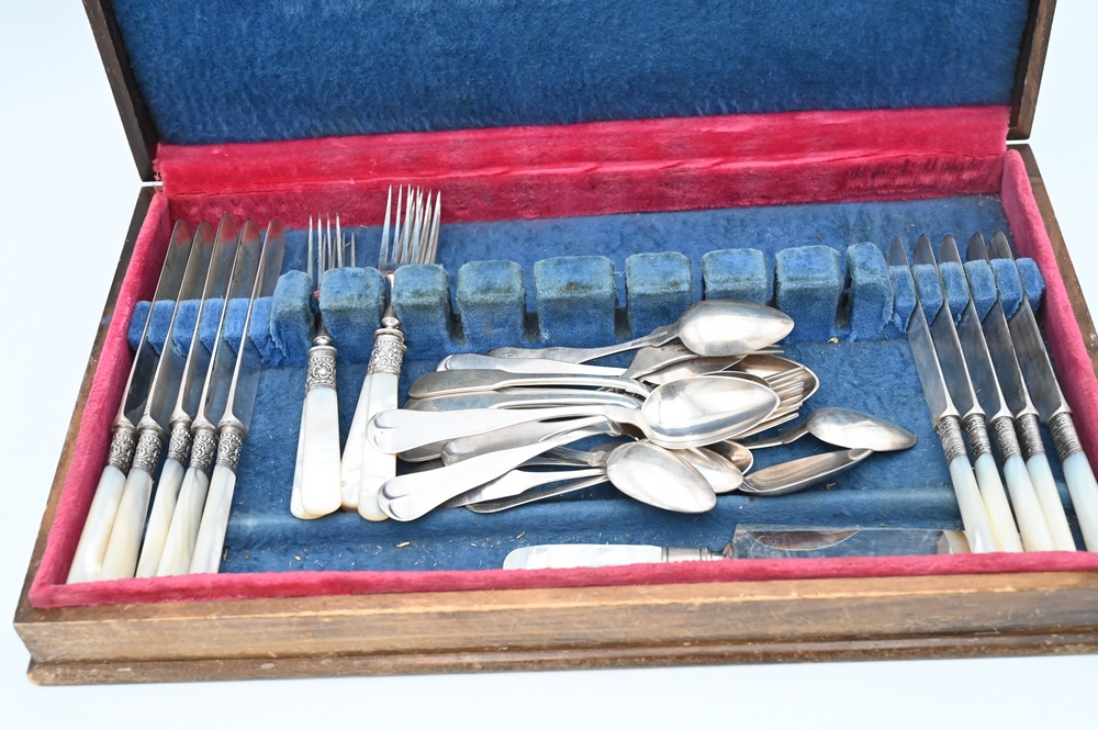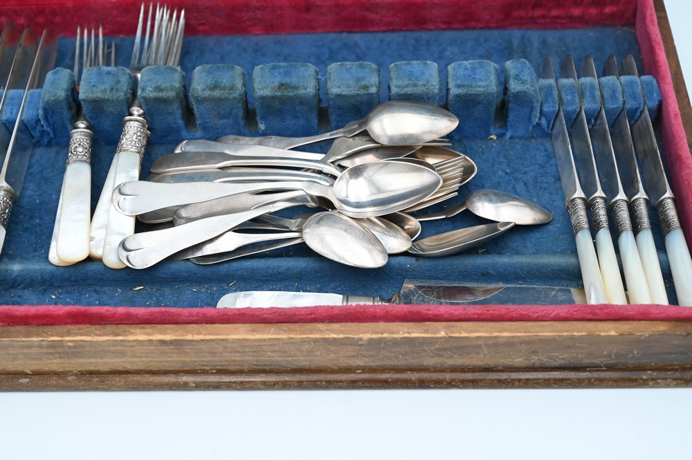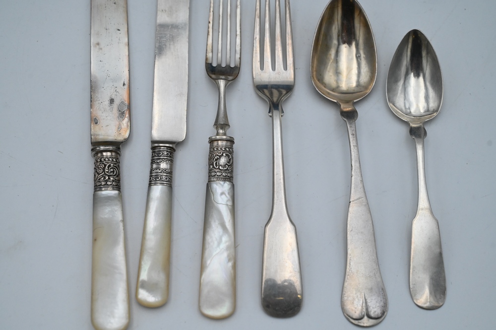 Sterling Silver and Coin Silver Lot, to include spoons and forks, along with 18 piece pearl handled forks and knives, 19.5 t.oz. weighable.