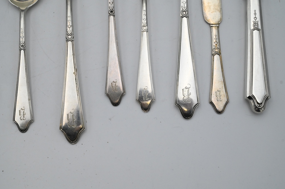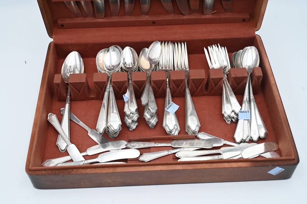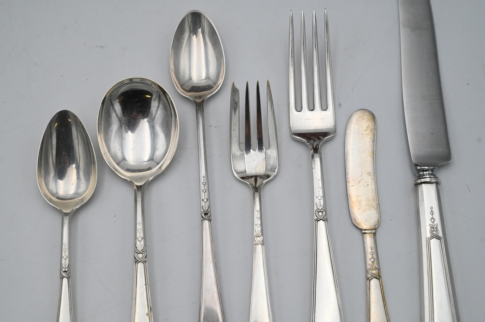 97 Piece Sterling Silver Flatware Setting For 12, “Treasure”, 94 t.oz. plus 12 handles.