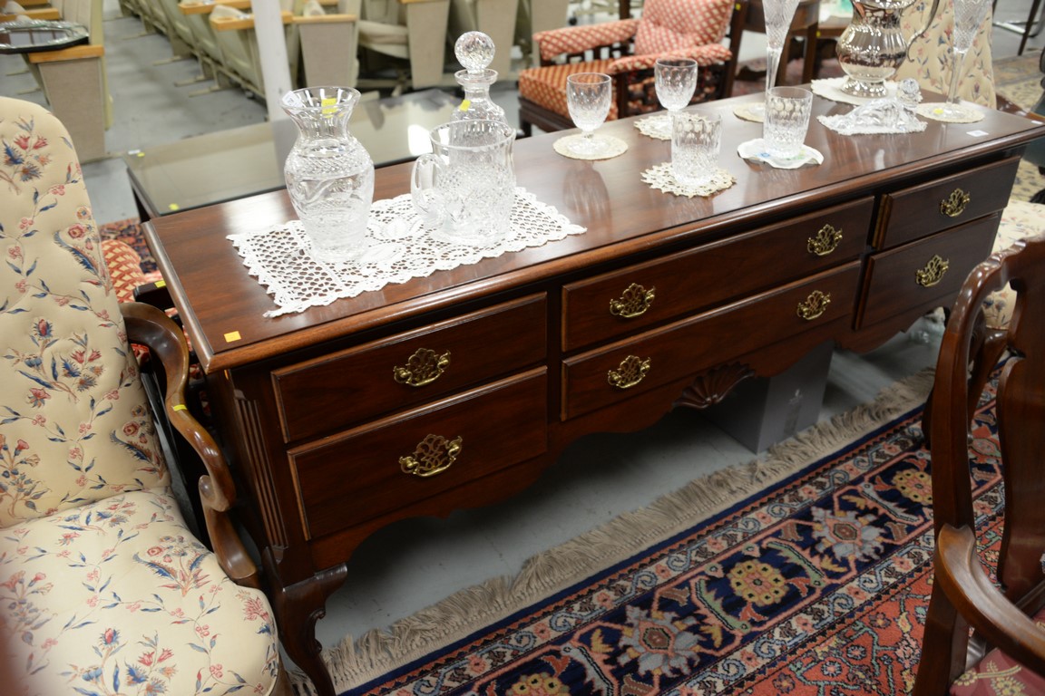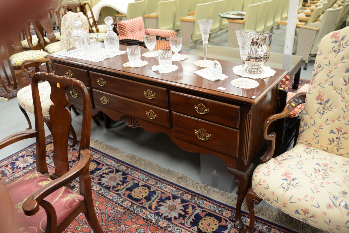 Hickory mahogany Queen Anne style huntboard. ht. 34 in. wd. 68 in. dp. 20 in.