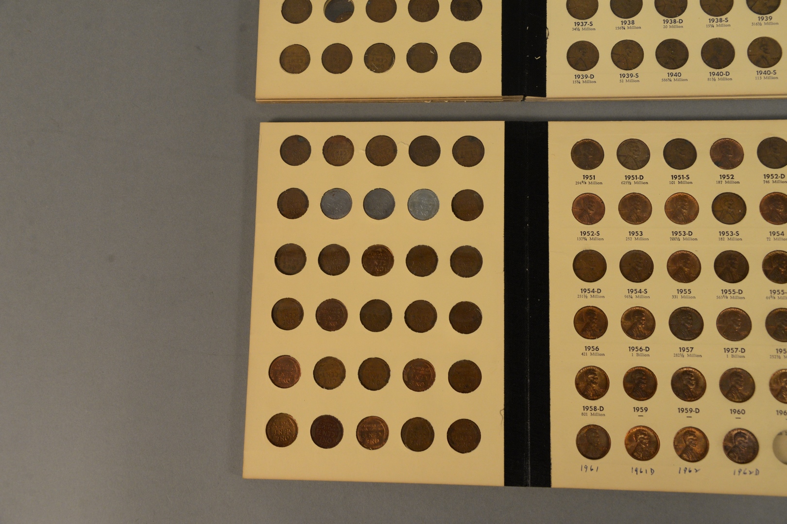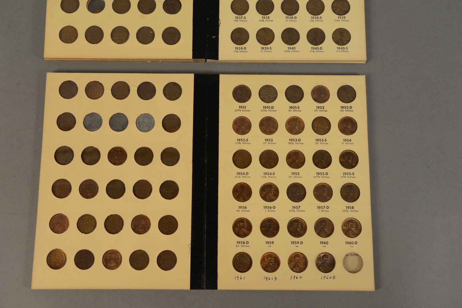 Large box lot of Lincoln cents both circulated and uncirculated, 79 rolls, plus 2 partial albums.
