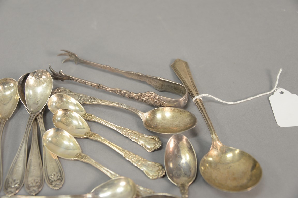 Silver lot including tongs and spoons. 10.1 troy ounces
