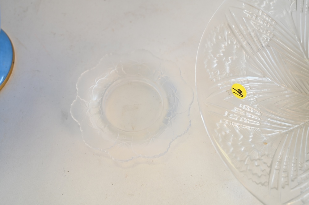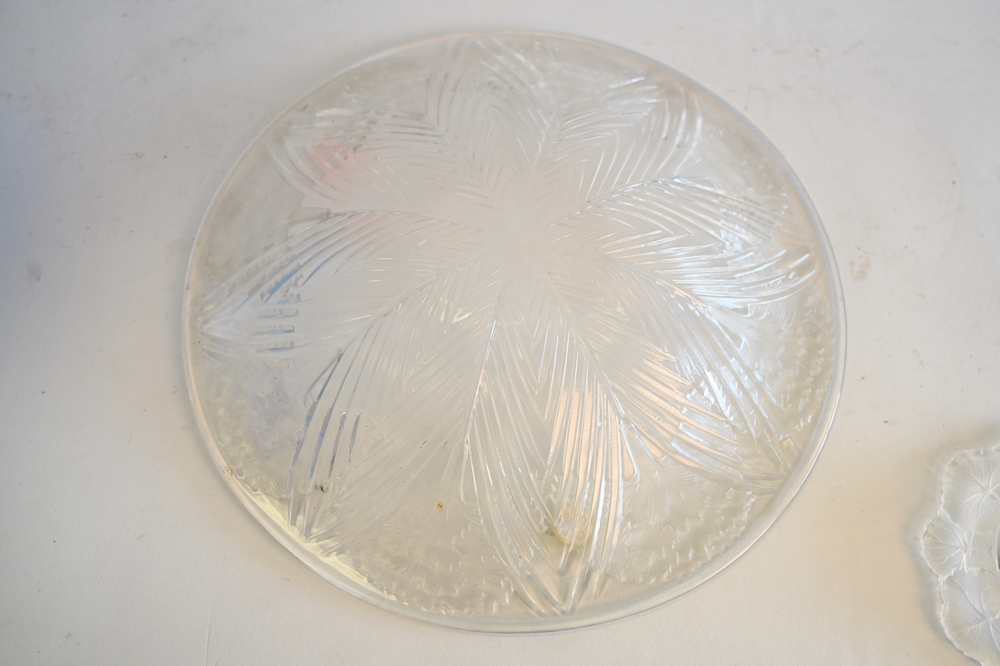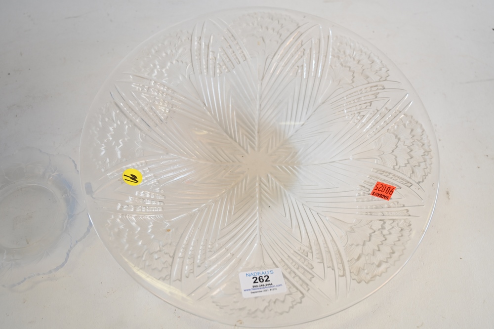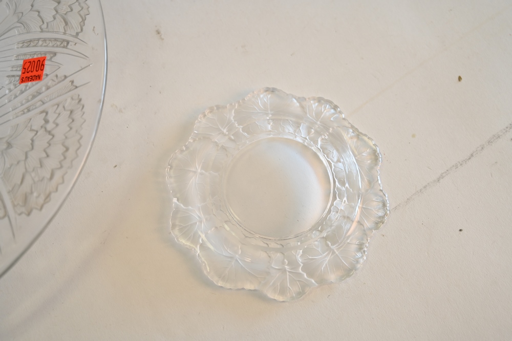 Two Piece Lalique Lot, to include a large Oeillets charger, having carnation pattern and molded and frosted glass, along with Laliqu…