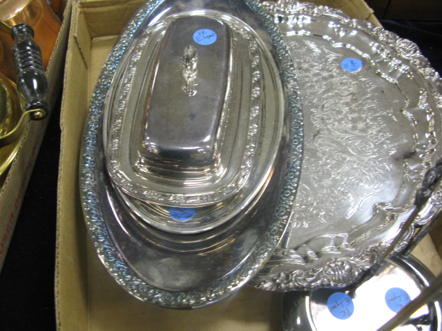 4 box lots of copper and silver plate along with fitted box