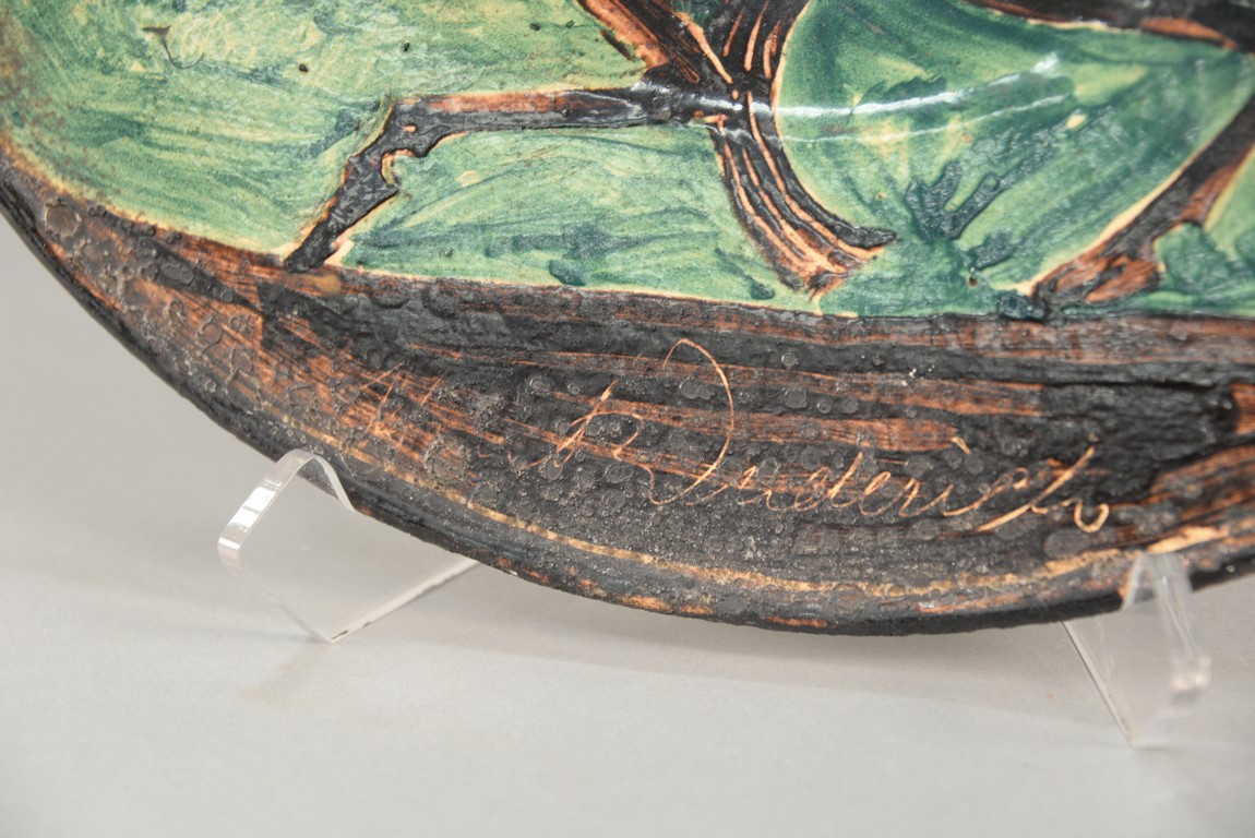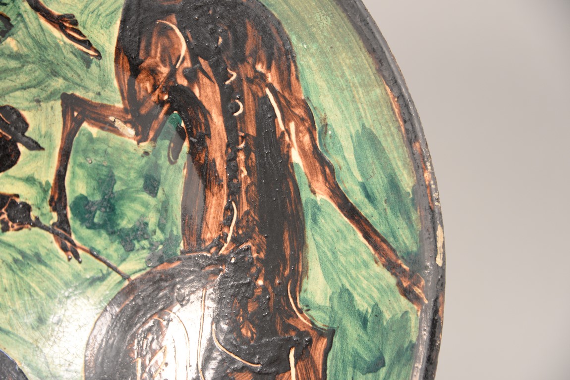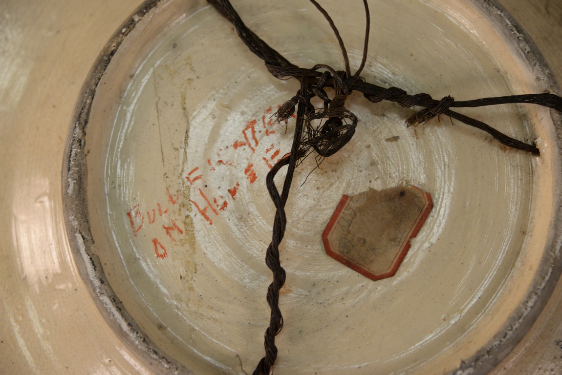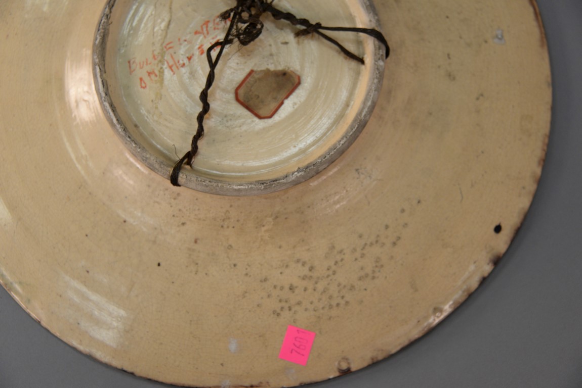 Lot 262A: WILLIAM HUNT DIEDERICH 1884-1953 glazed Faience charger with bull fighter on horseback, signed H. Diederich. dia. 15 in.