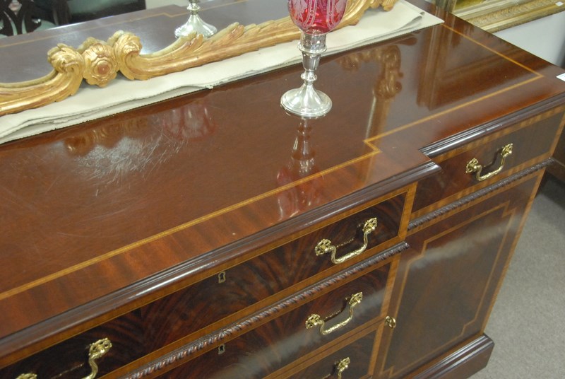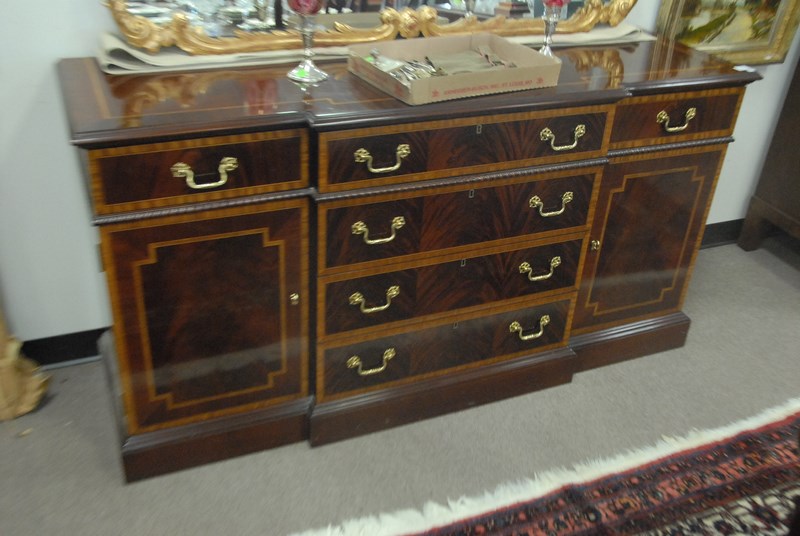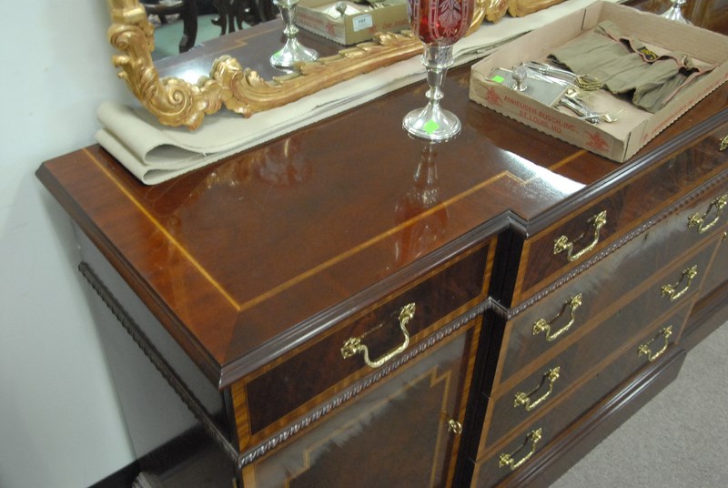 Lot 263: Councill Craftsman mahogany sideboard with banded inlaid drawers and doors, ht. 34in. wd. 66in.