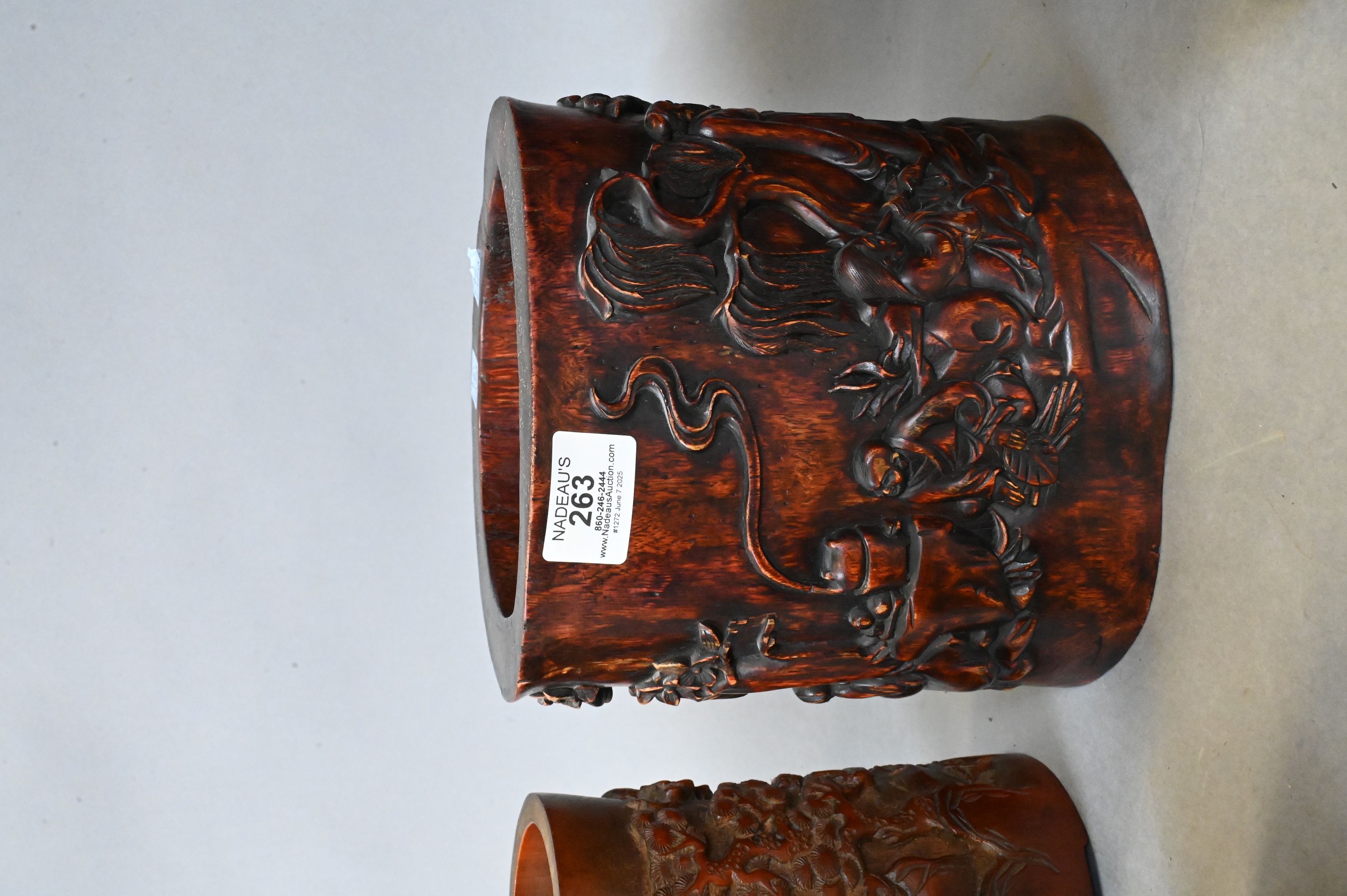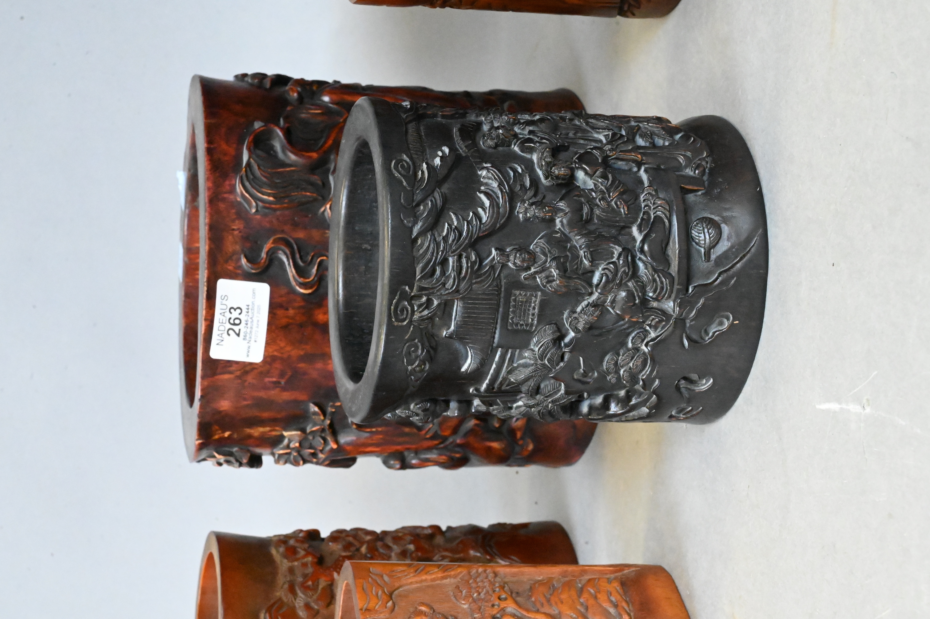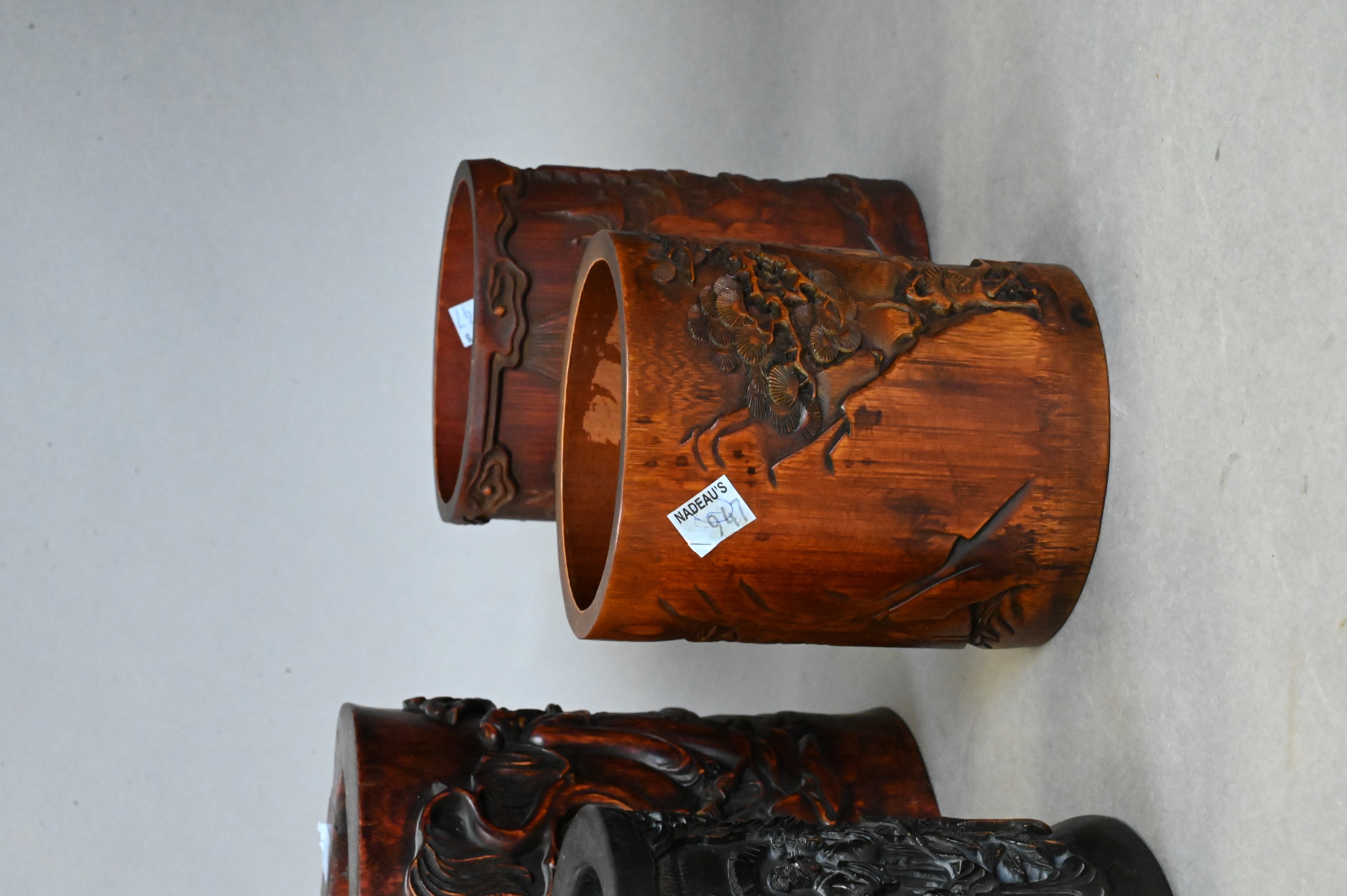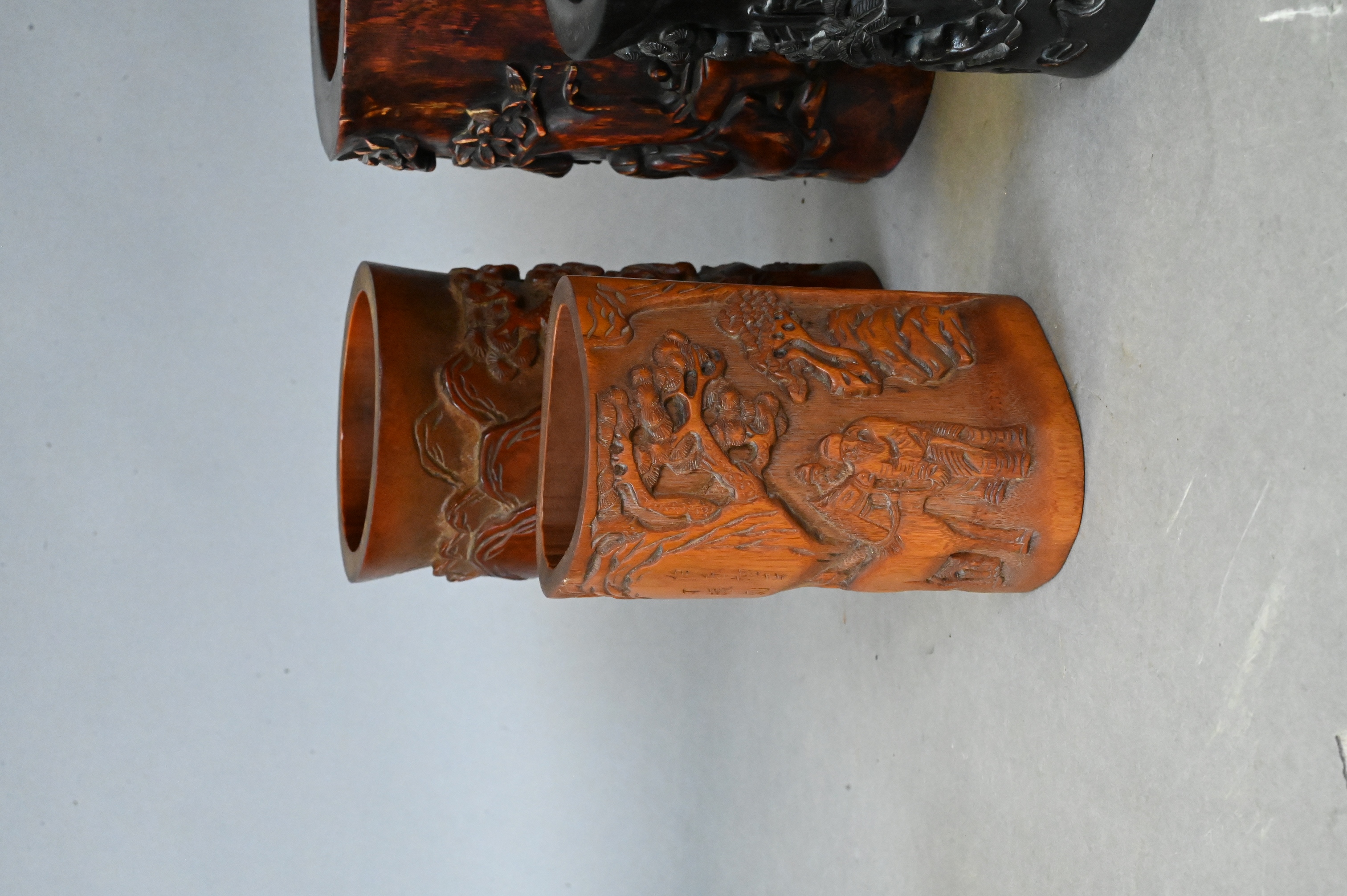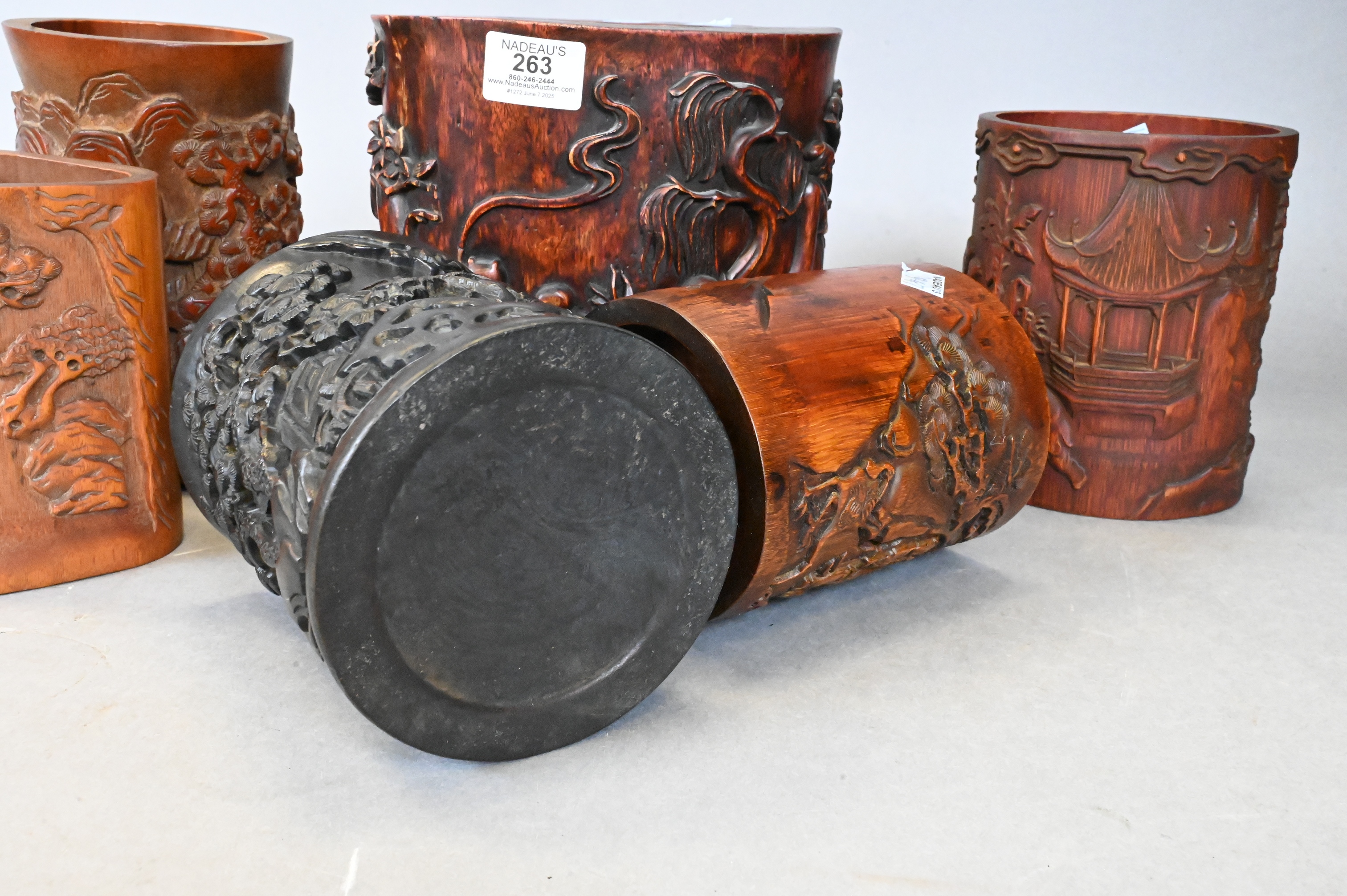 Lot 263: Group of Six Chinese Carved Wood Brush Pots