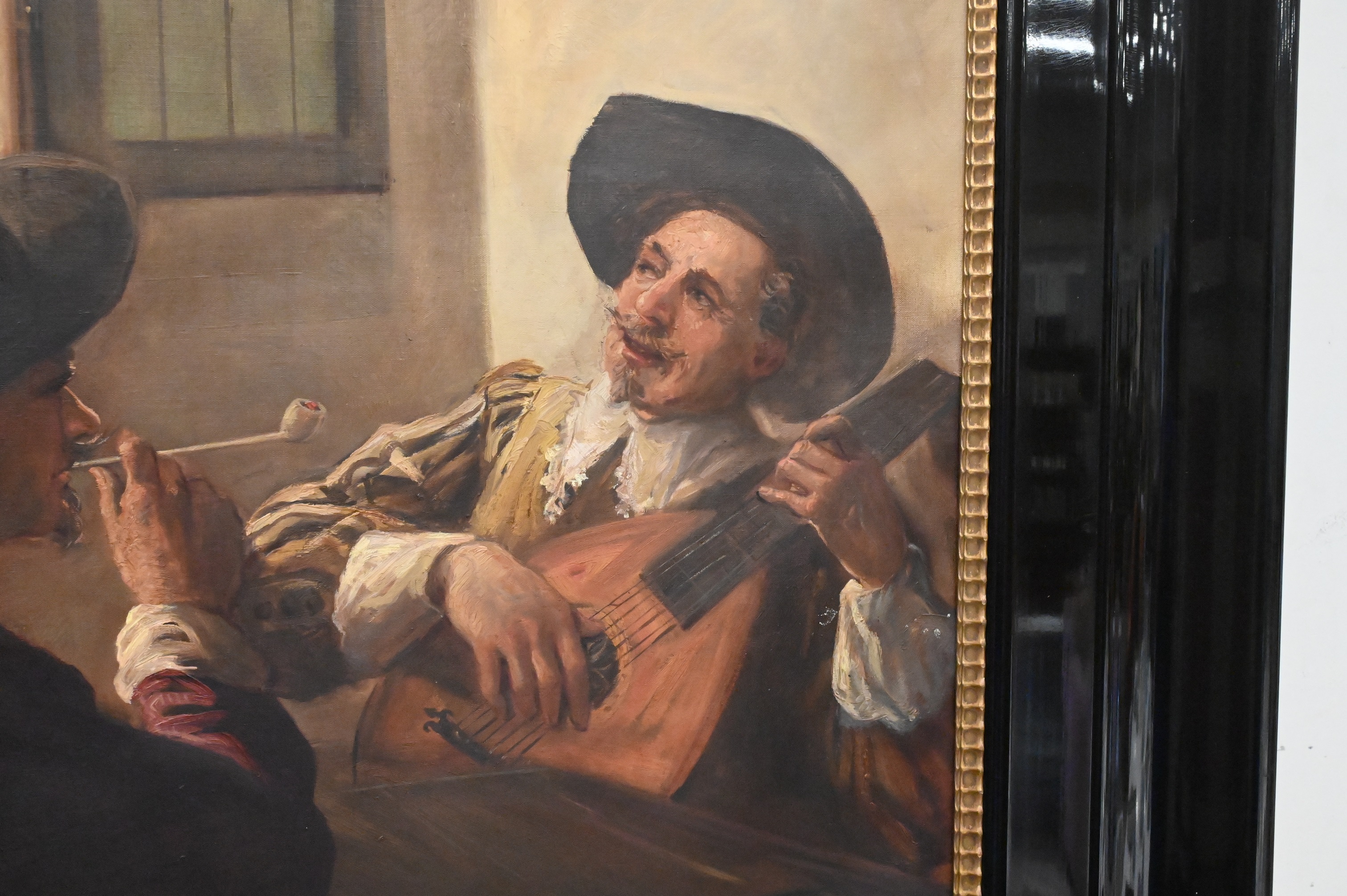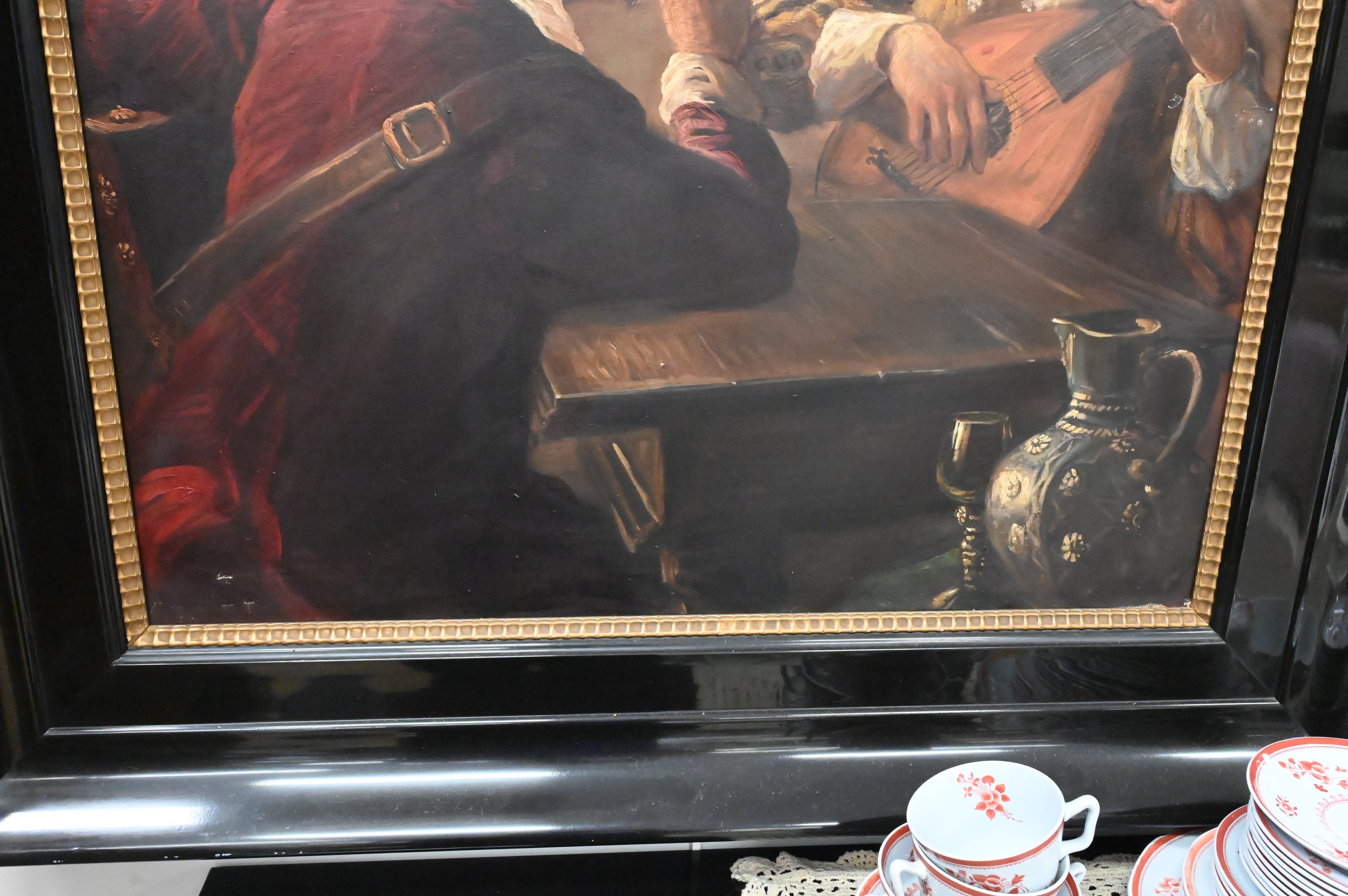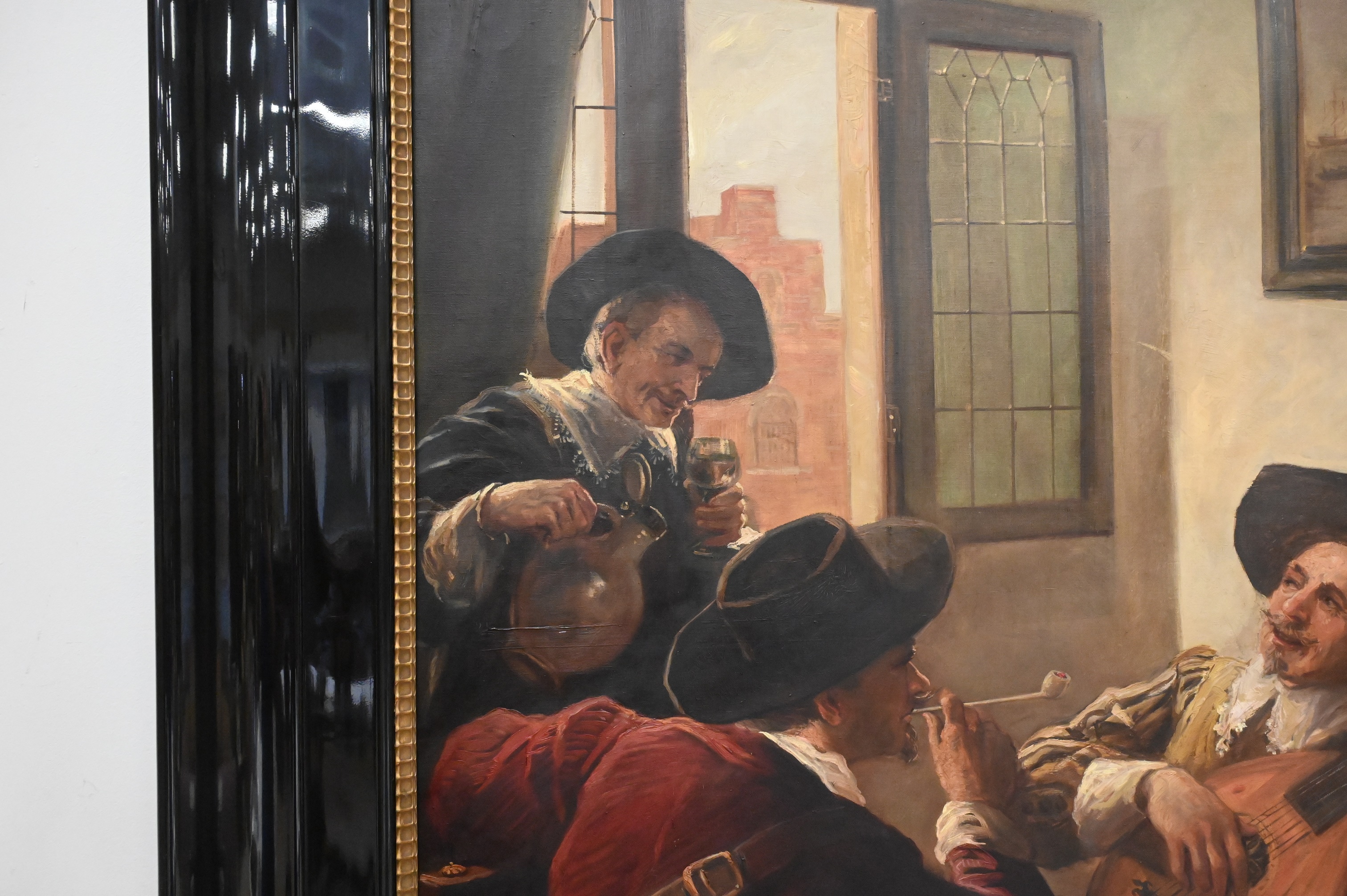Max Schneider German 1903 – 1980 “3 Men Sitting at Tavern Sable” Oil on Canvas signature upper right lacquer frame 40″ x 29″