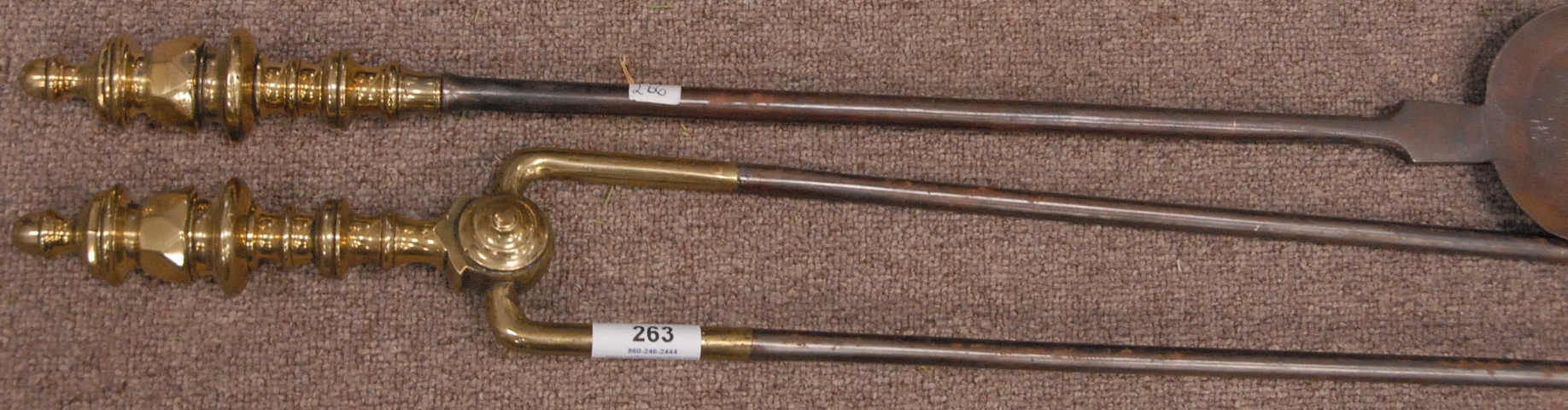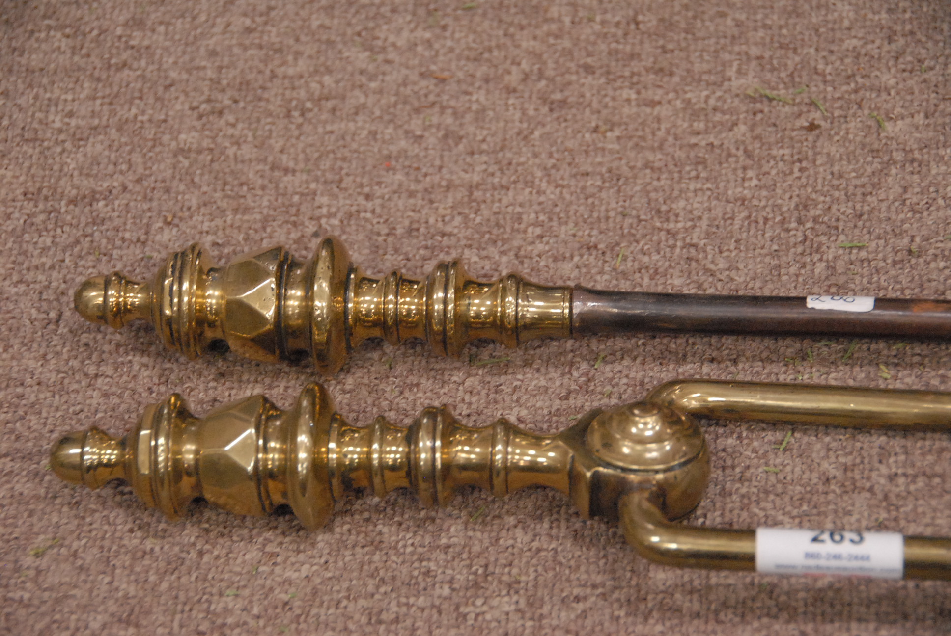 Pair of federal brass top fire tools to include shovel and tongs. C. 1820.