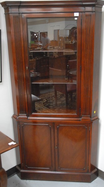 Pair of mahogany corner china cabinets, ht. 72in. wd. 36in. dp. 23in.