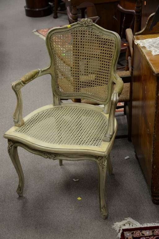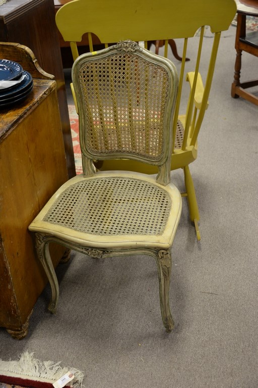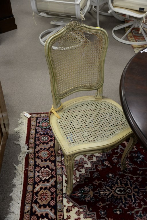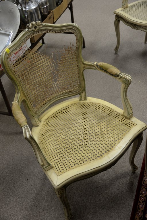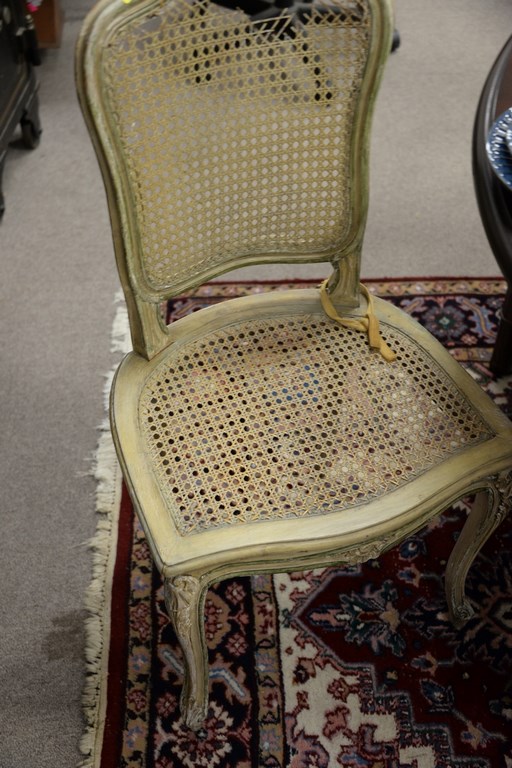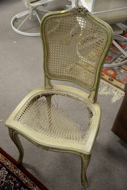 Lot 263: Set of six Louis XV style dining chairs with caned seats and backs caning on several chairs as is.