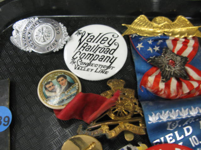 Tray lot of pins, metals, army metals, Historical pins and metals, etc