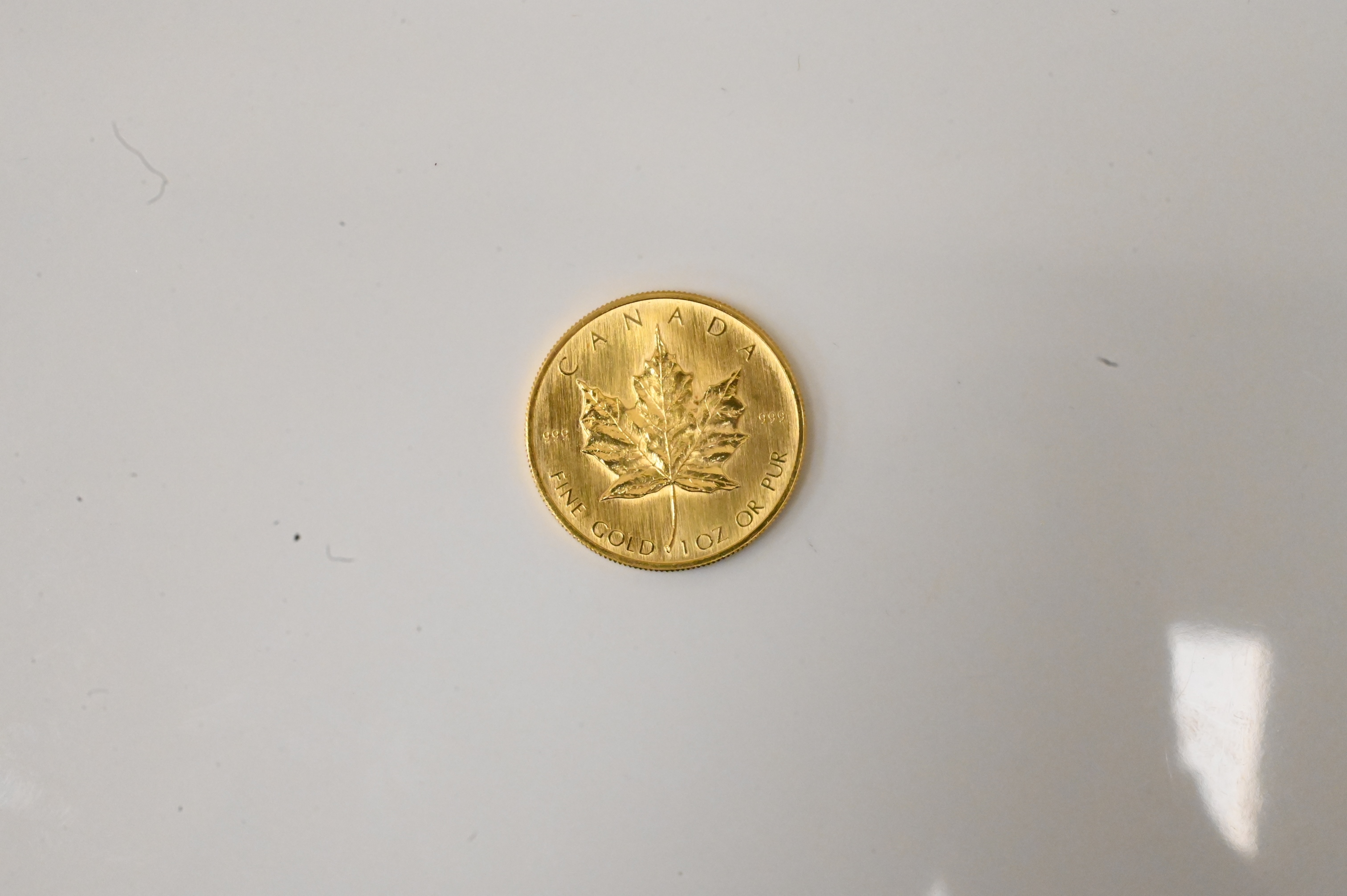 Two Canadian One Ounce Find Gold $50 Maple Leafs, to include a 1980 Canadian One Ounce Fine Gold $50 Maple Leaf; along with a 1979 Canadian one ounce fine gold $50 Maple Leaf
