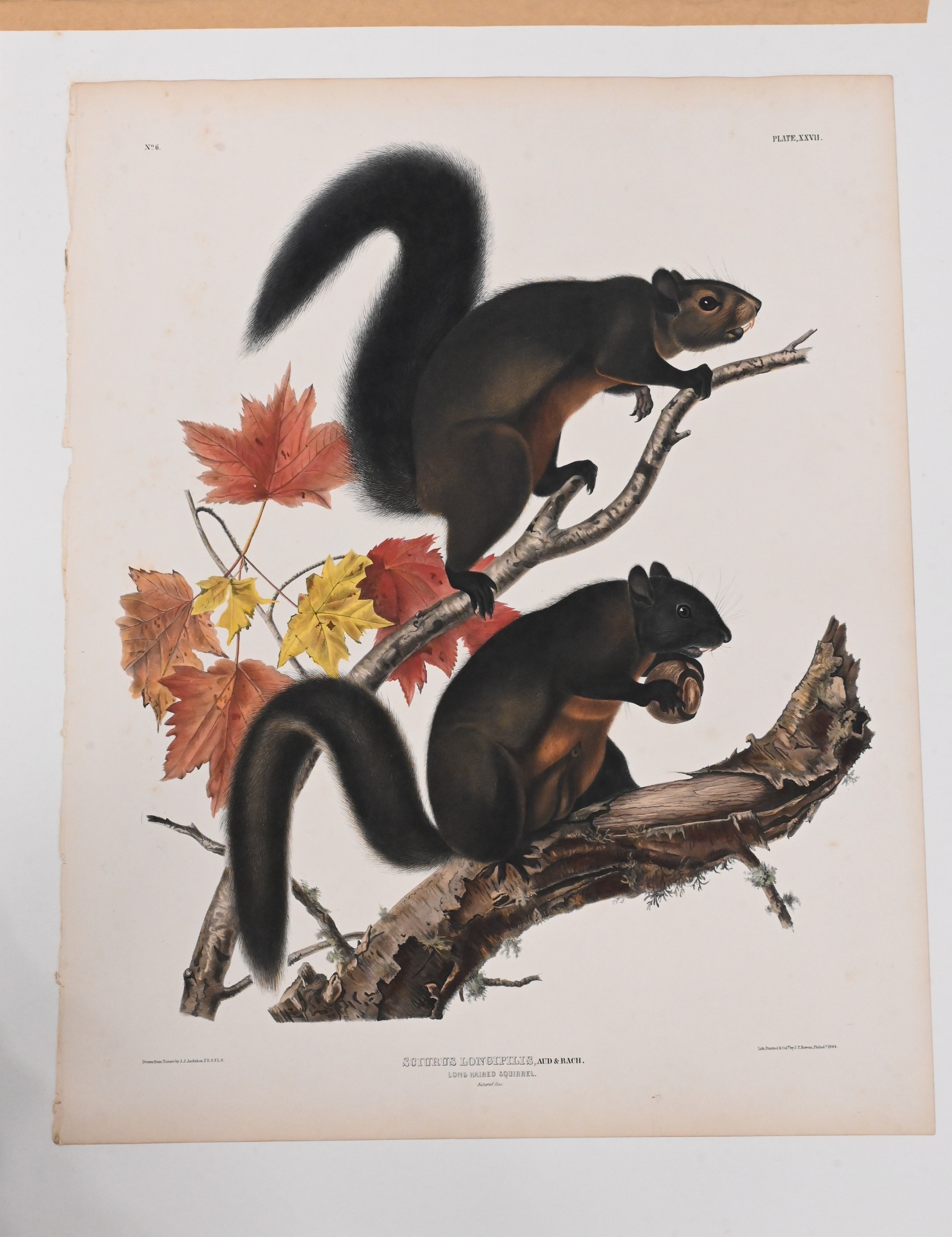 Hand-colored lithograph by John T. Bowen (American 1801-1865) plate XXVII from The Viviparous Quadrupeds of North America, Imperial Bowen Edition.