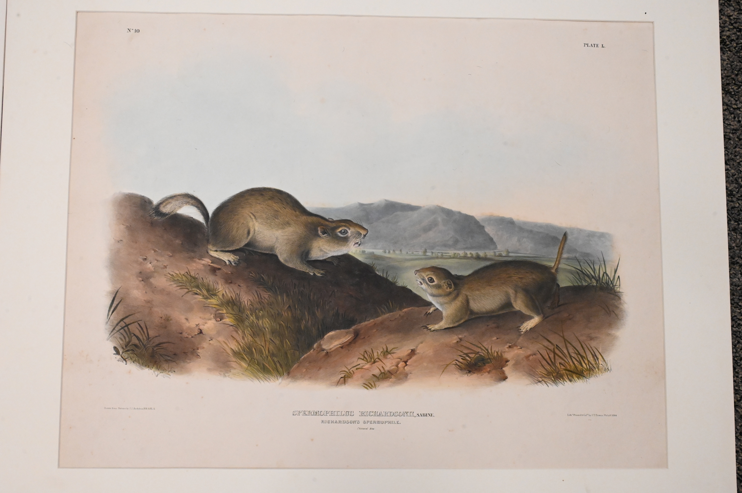 Hand-colored lithograph by John T. Bowen (American 1801-1865) plate L from The Viviparous Quadrupeds of North America, Imperial Bowen Edition.