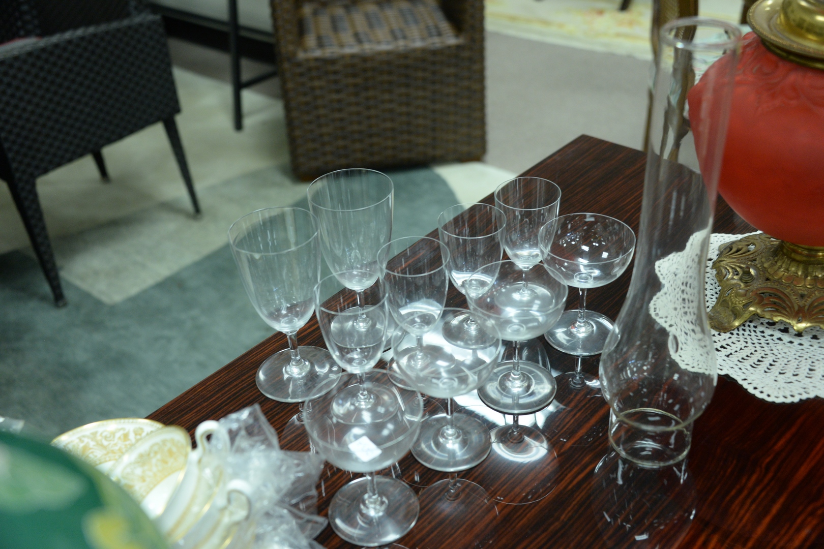 Lot 263A: Set of 42 Baccarat Stems, to include 12 champagnes, 12 white wines, 10 red wines, and 8 cordials, heights 3 1/4″, 4 1/2″, 5″, 6 1/2″.