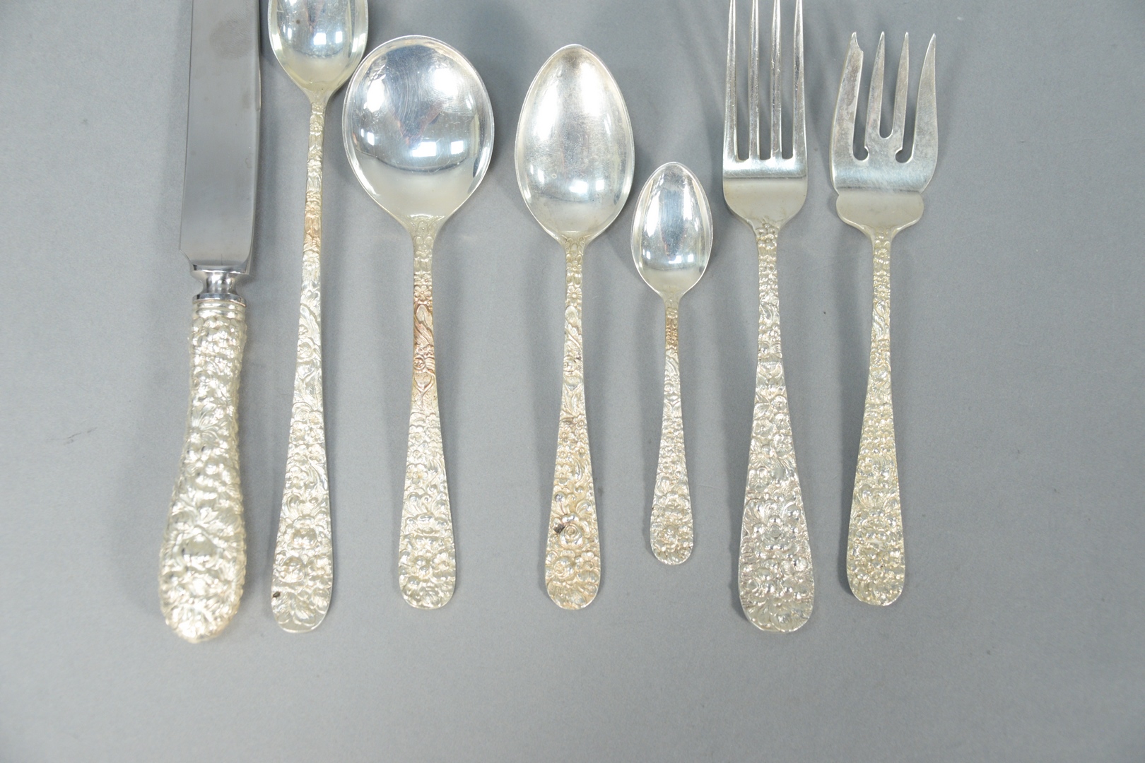 108 Piece Stieff Sterling Silver Repousse Flatware Set