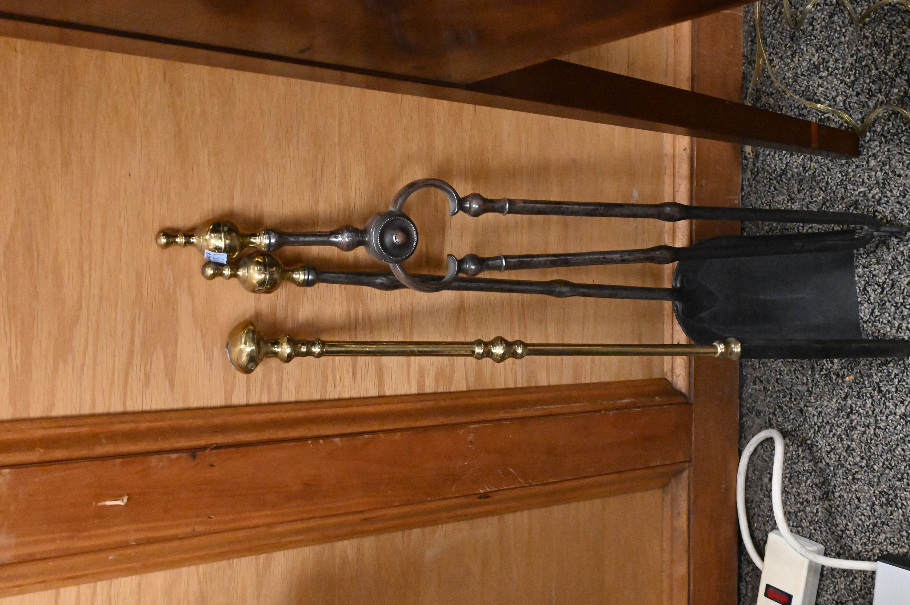 Lot 264: Brass Serpentine Fire Fender and Fire Tools
