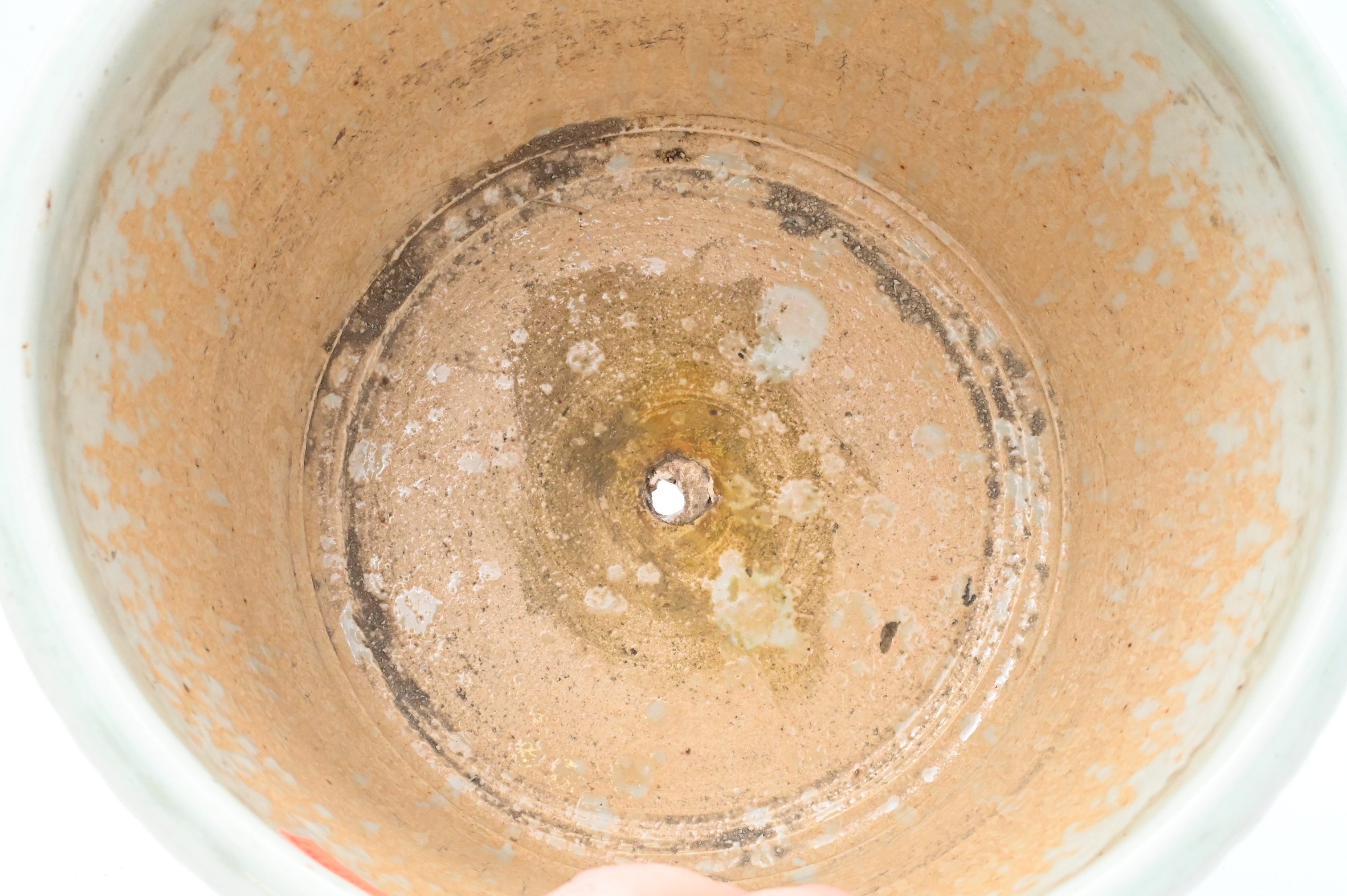 of slight tapering body with bamboo tree design with ribbon, drainage hole