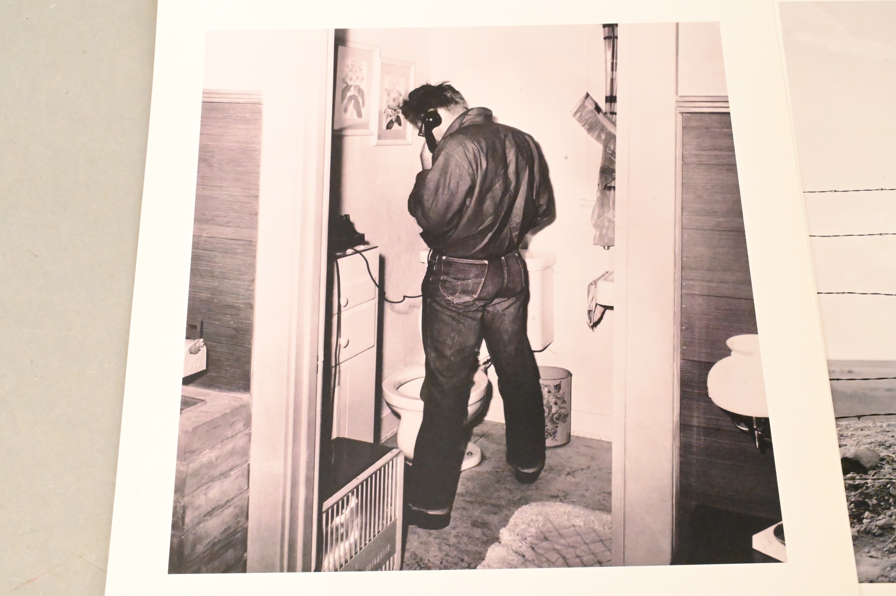 “James Dean Seated Behind Fence on Set of ‘Giant’ ” circa 1955