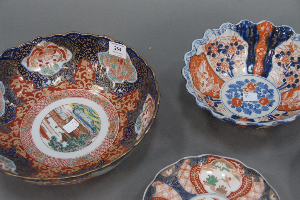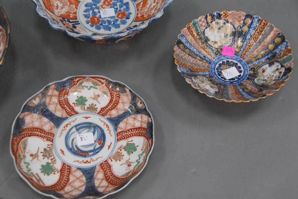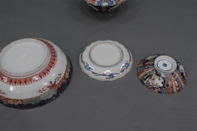 Four piece lot of Imari porcelain, three bowls and deep plate.