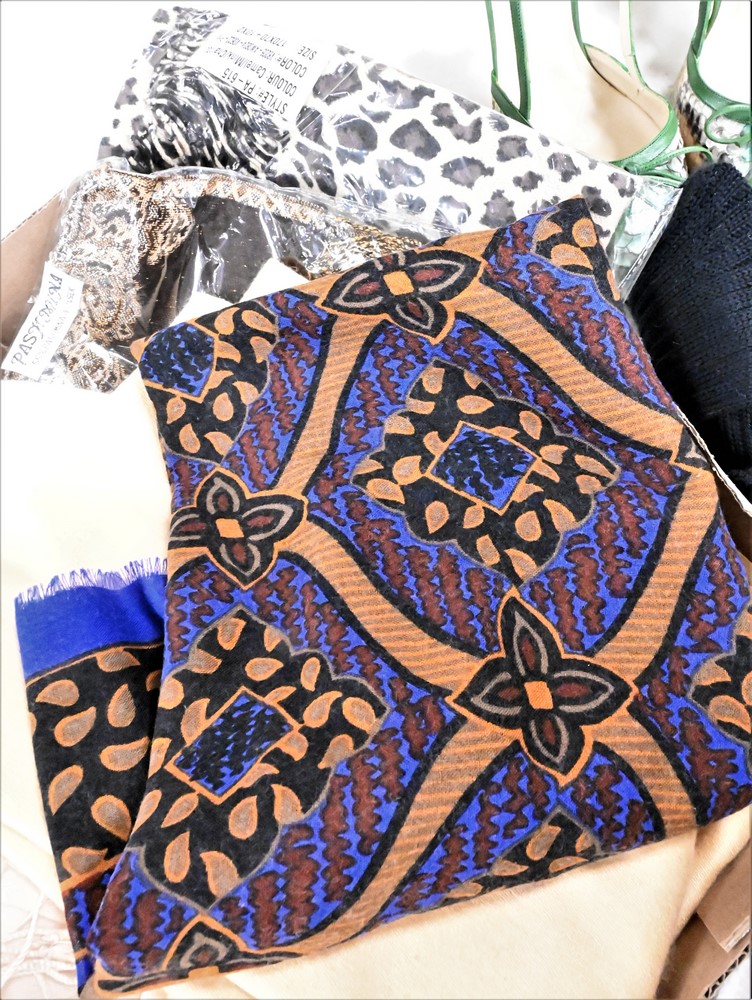 Lot 264: Group of Five Cashmere and Silk Wool Mix Scarves, to include new Pashmina, new Pure Collection, along with three others.