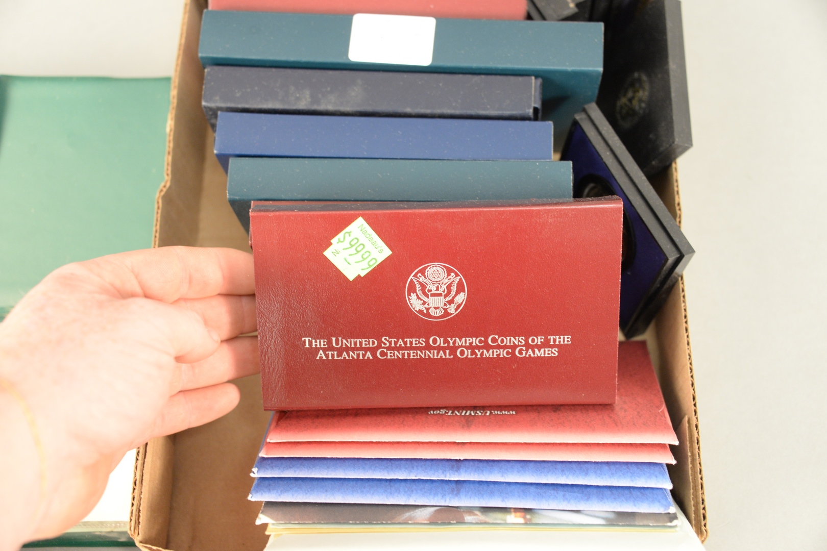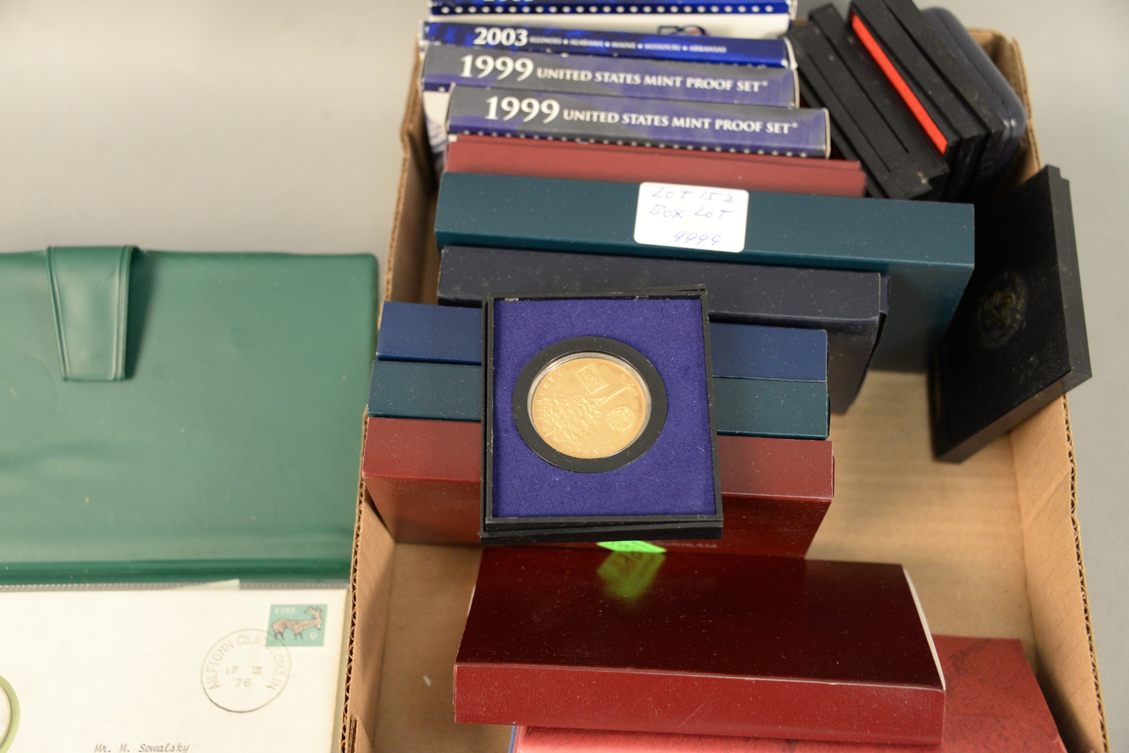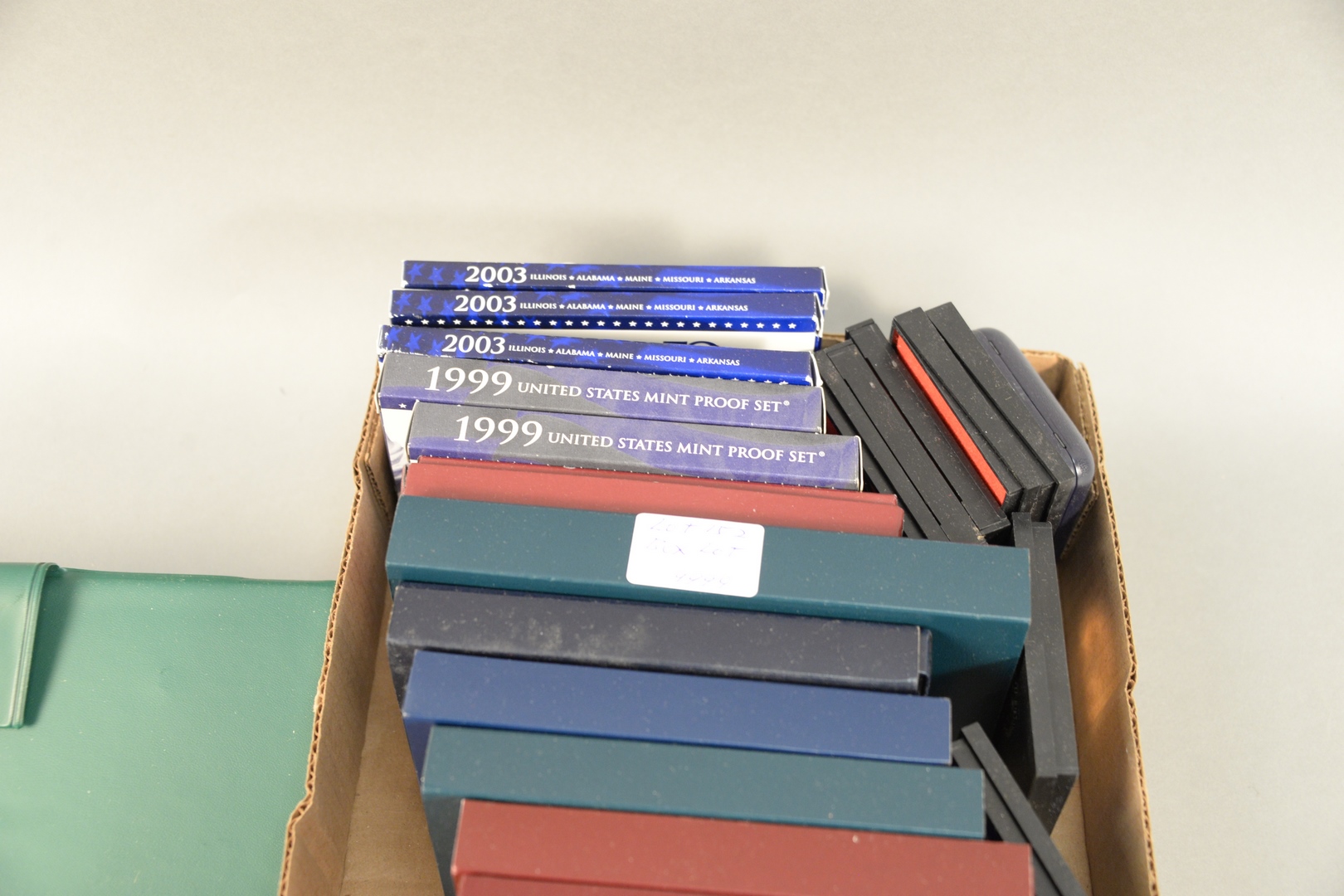 Lot 264: Large coin lot to include, 3 – 2003 proof mint quarters 2 – 1999 proof sets 1 – 1983 Olympic proof dollars 1 – 1994 three coin Li…