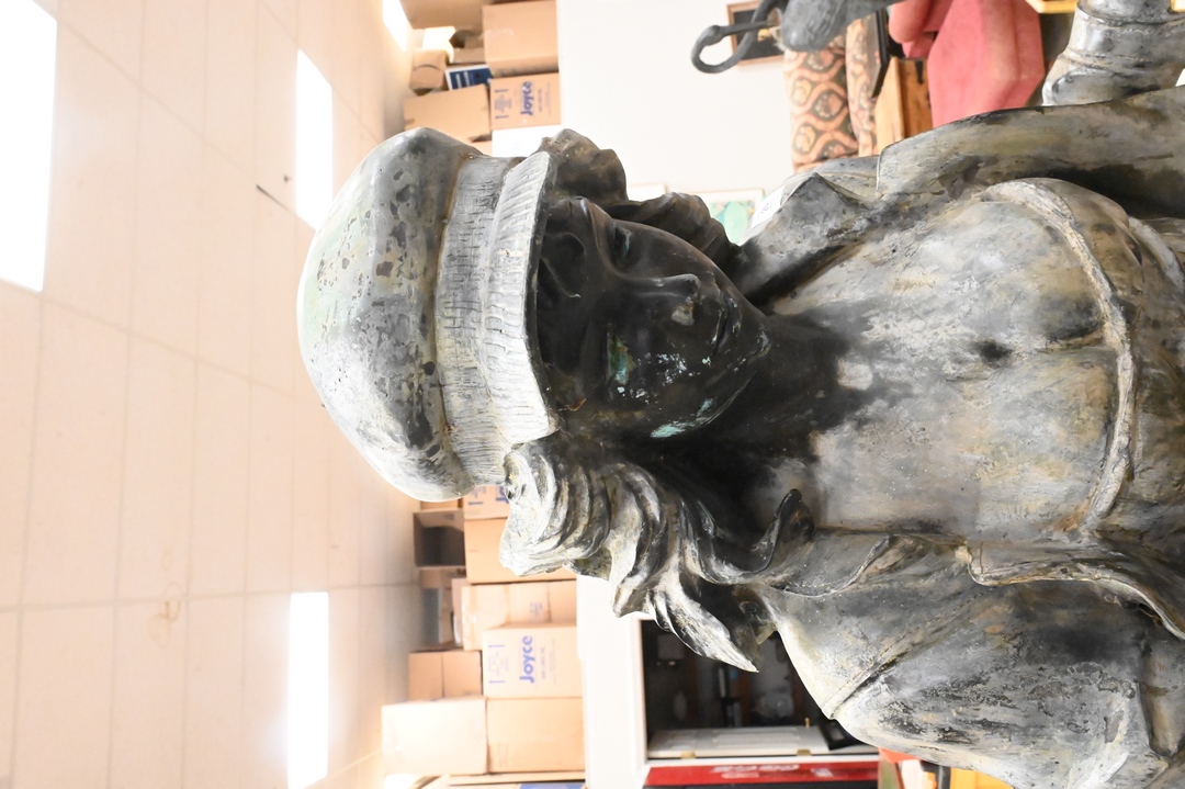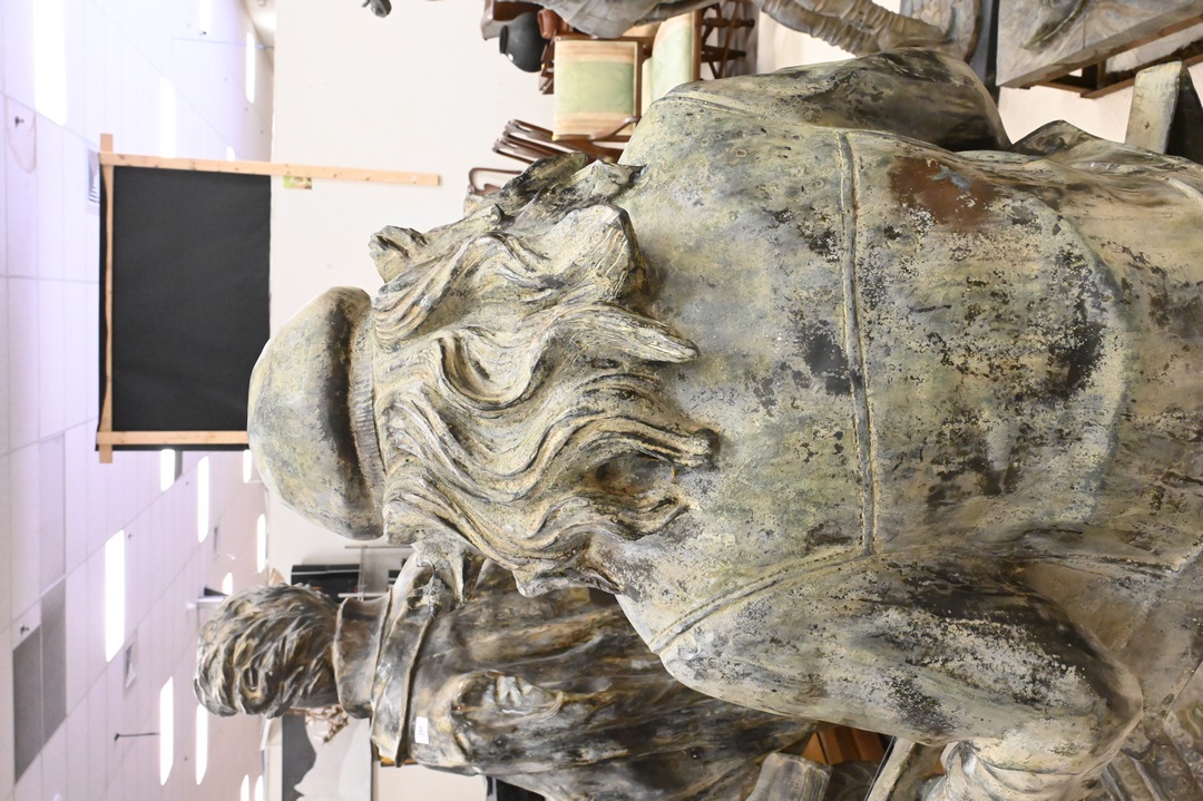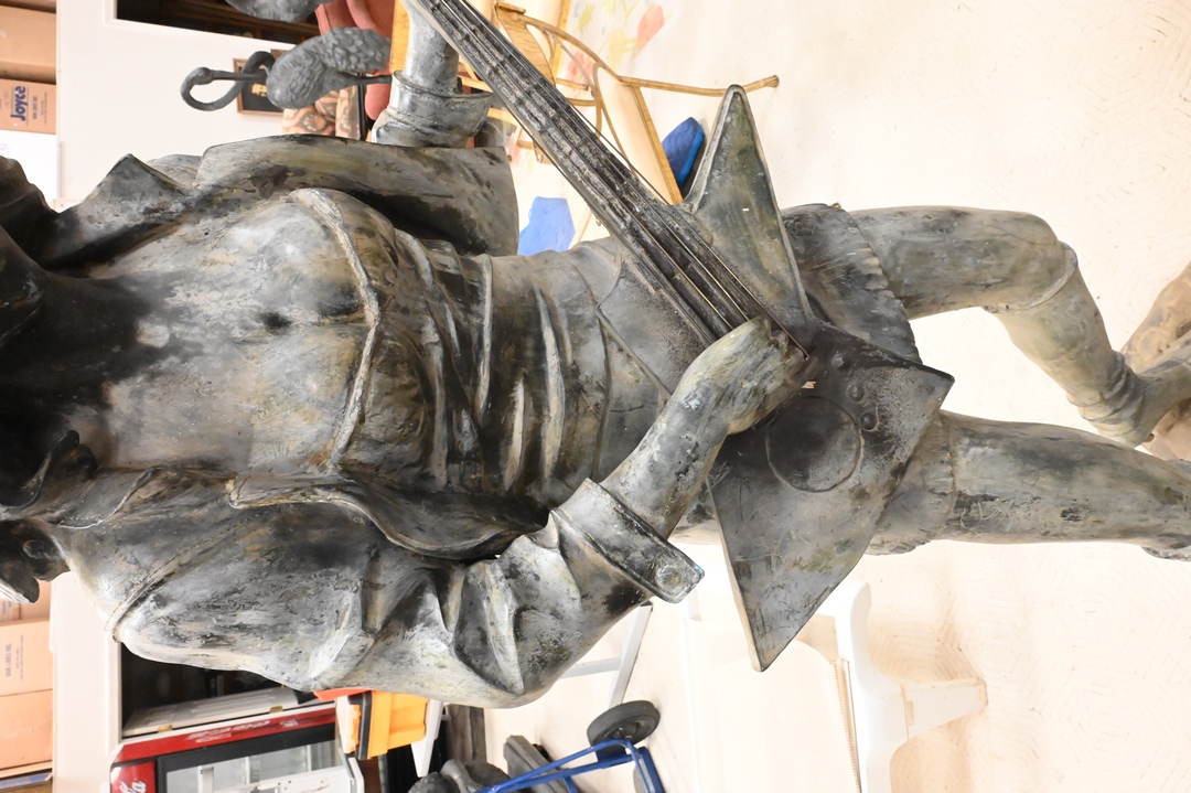 Large Lifesize Patinated Bronze Standing Band/Musician Figure, woman playing electric guitar, height 64 inches.